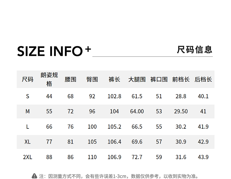 Outseam (cm) 99 cm 101.5 cm 104 cm 106.5 cm 109 cm