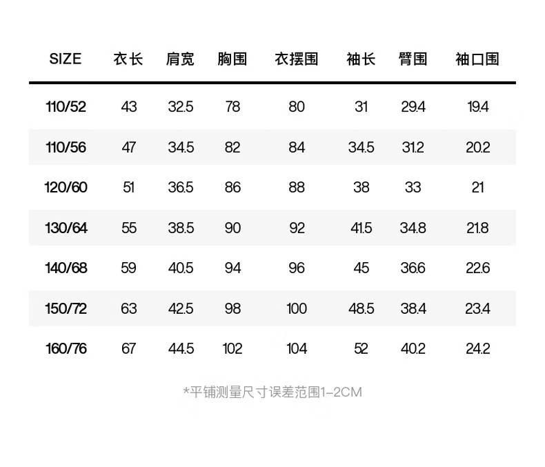 China (cm) 160-165/84-86 165-170 / 88-90 167-172 / 92-96 168-173 / 98-102 170-176 / 106-110