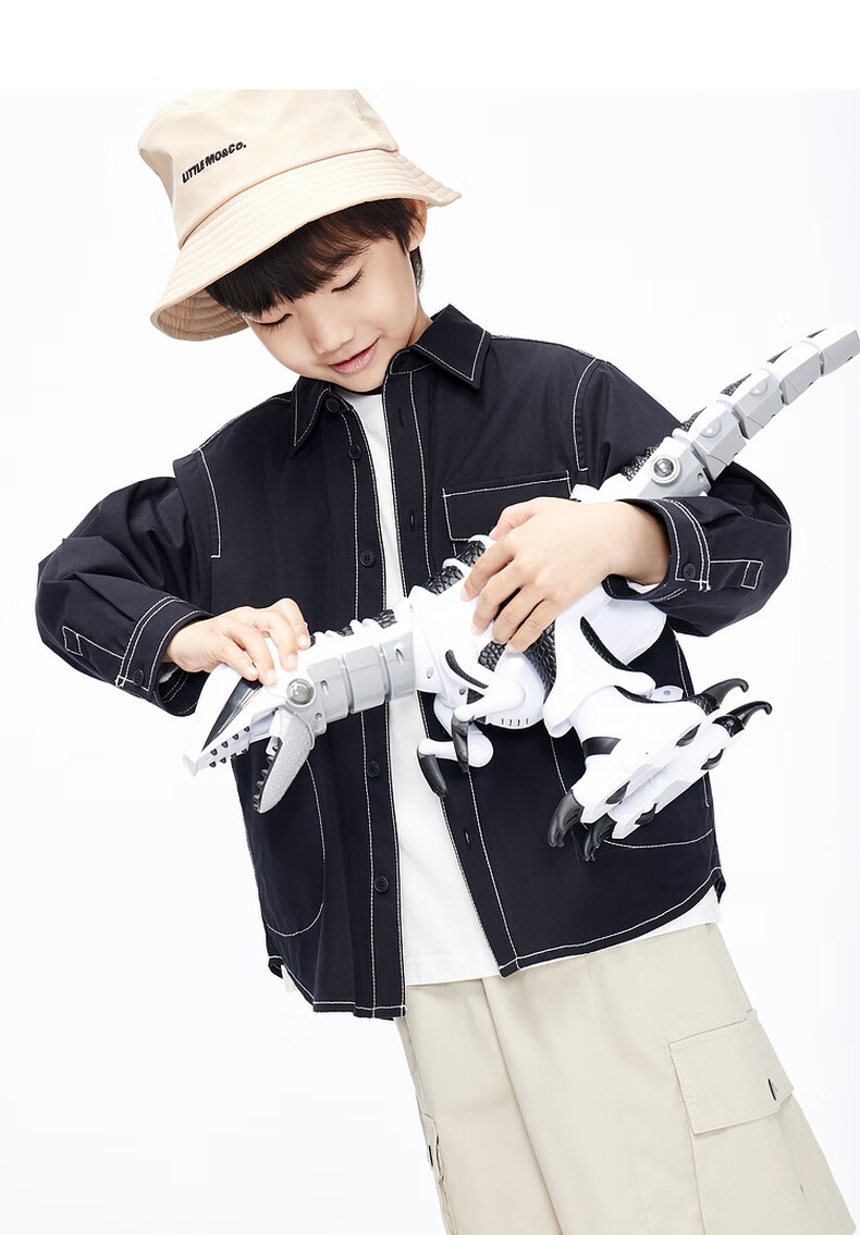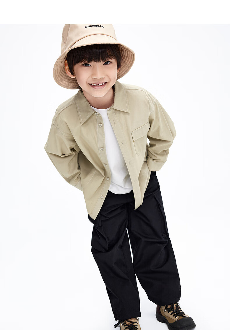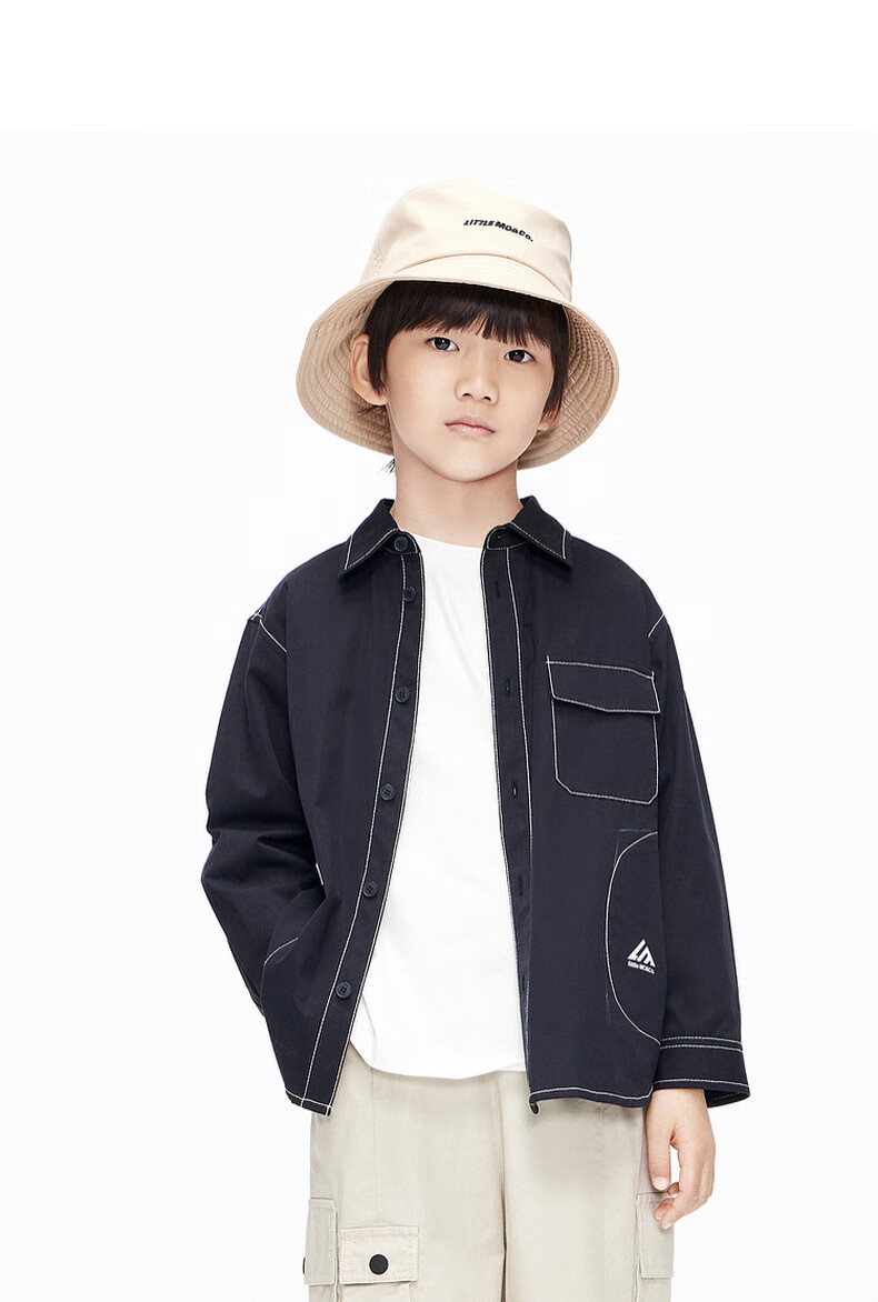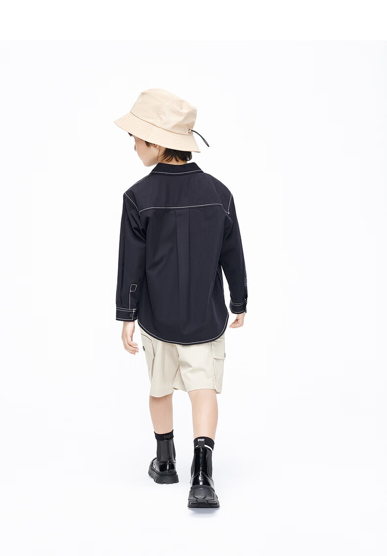 Little MO&Co. Children's clothing spring and autumn boys' pure cotton long-sleeved shirt crisp jacket children's shirt medium and large children black 120 120/60
