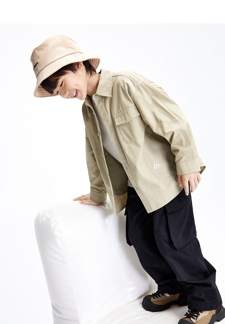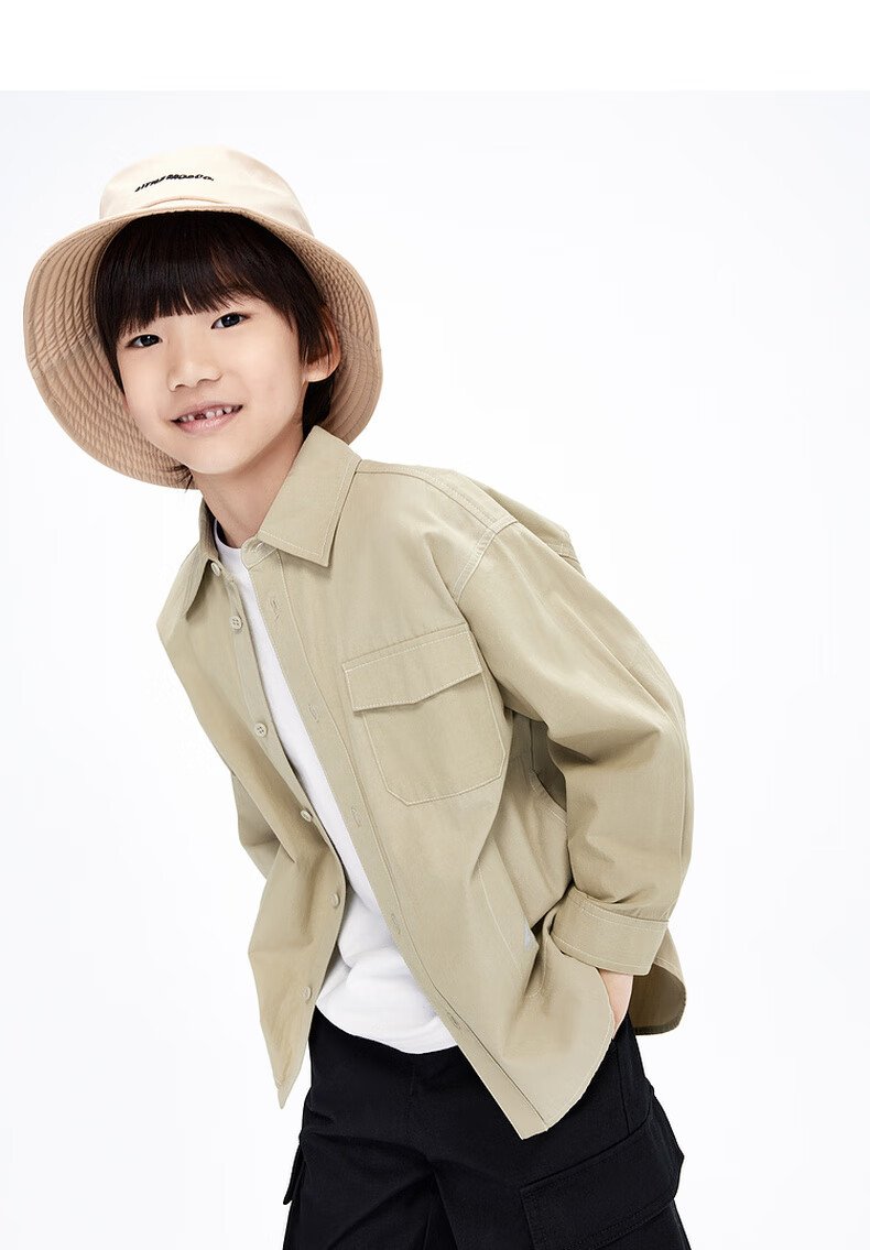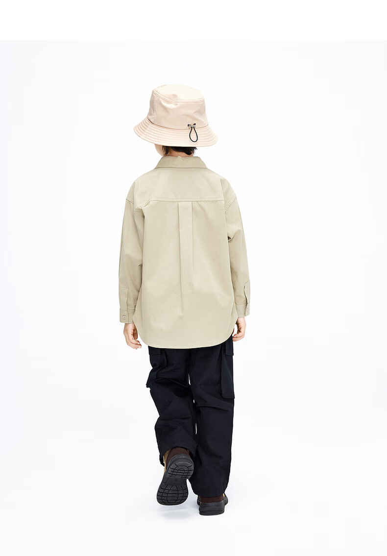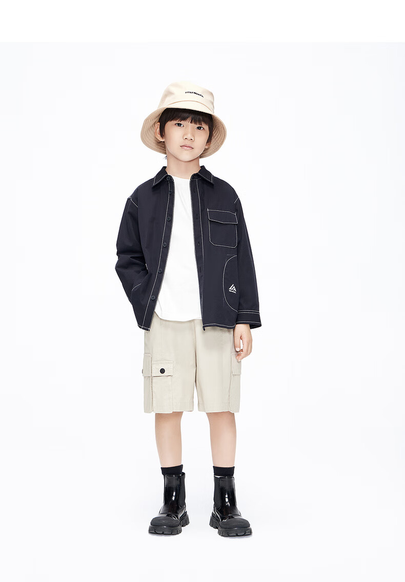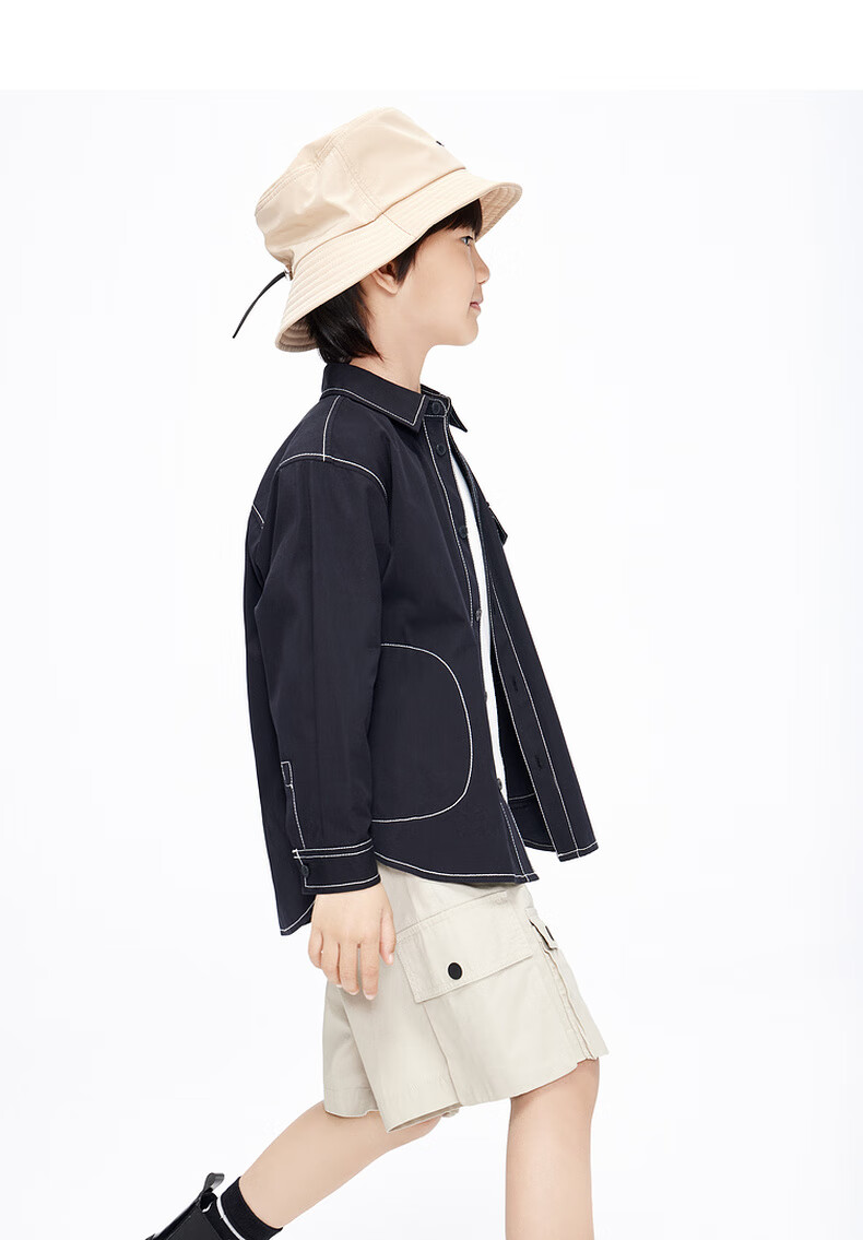 Little MO&Co. Children's clothing spring and autumn boys' pure cotton long-sleeved shirt crisp jacket children's shirt medium and large children black 120 120/60