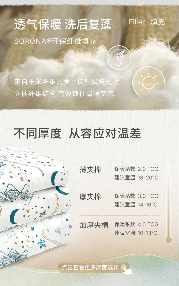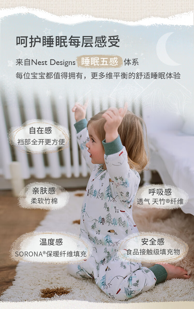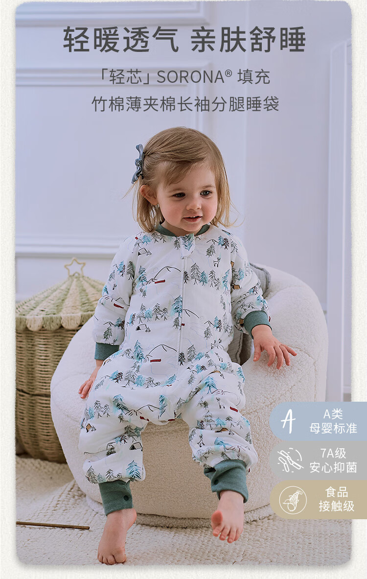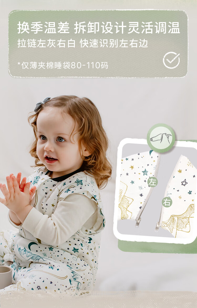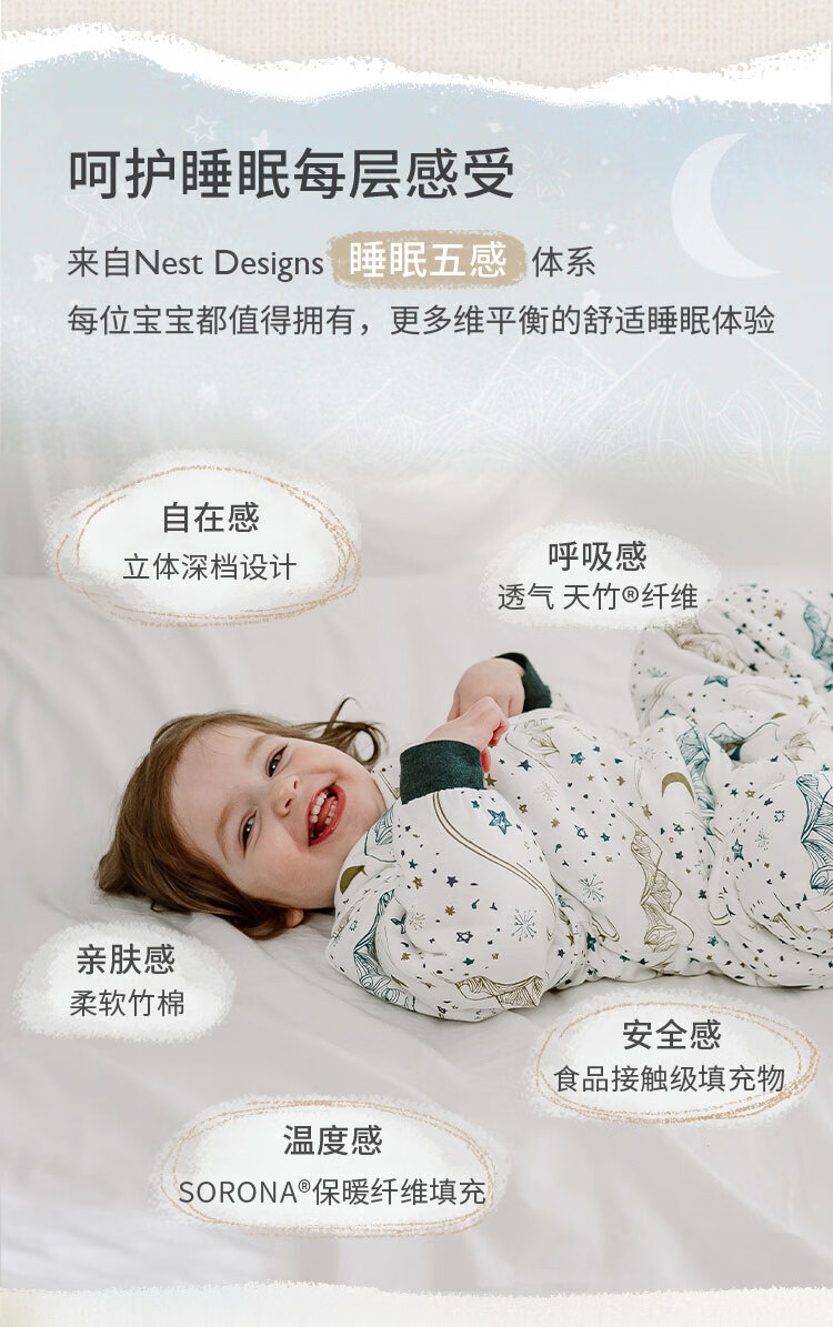 Nest designs baby sleeping bags for infants and toddlers light core thin quilting thick quilting children split leg boys and girls autumn and winter baby anti-kicking quilt Chuxue - thin quilting (recommended room temperature 18-20 degrees) 90 yards (recommended height 80-90cm)