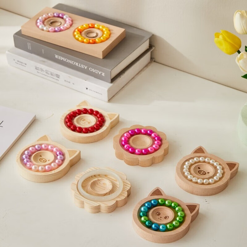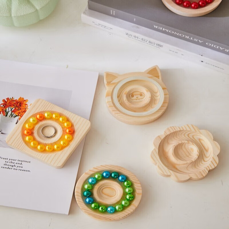 Pei Nanwei jewelry bracelet storage display plate text play stall live broadcast bracelet display bracelet jewelry tray shooting props round display plate pine wood
