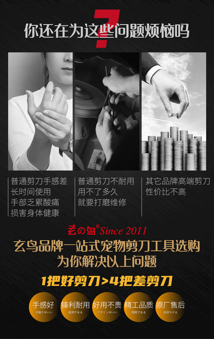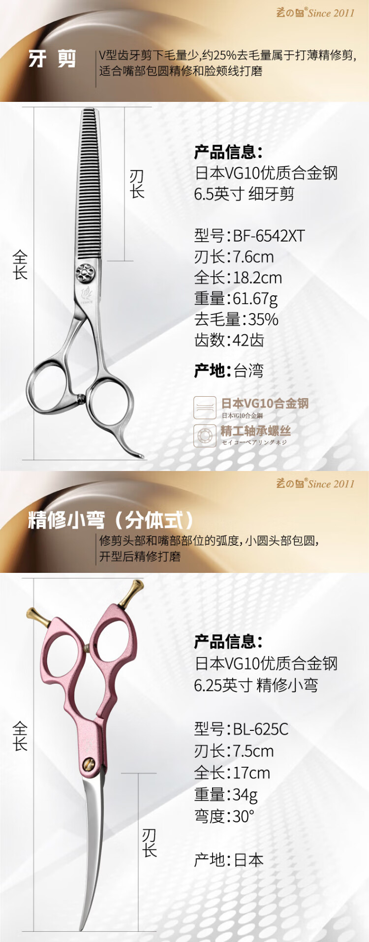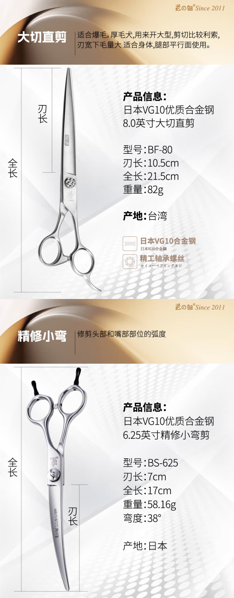 Black Bird Master Pet Scissors Professional Pet Grooming Scissors Set Straight Curved Scissors Fish Bone Scissors Dental Scissors Beautician Shop Tools BF 7.5 Inch Comprehensive Straight Scissors