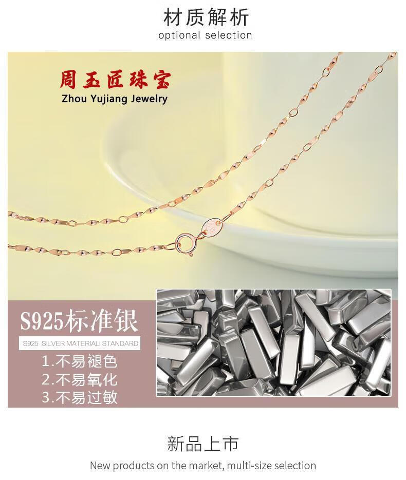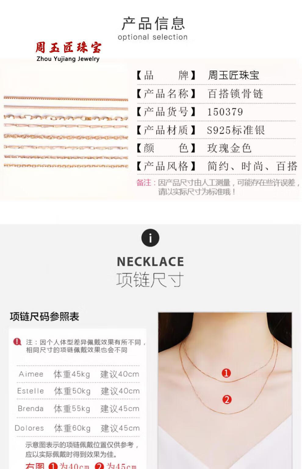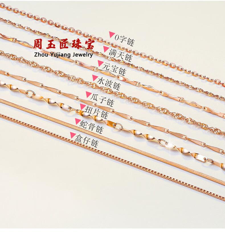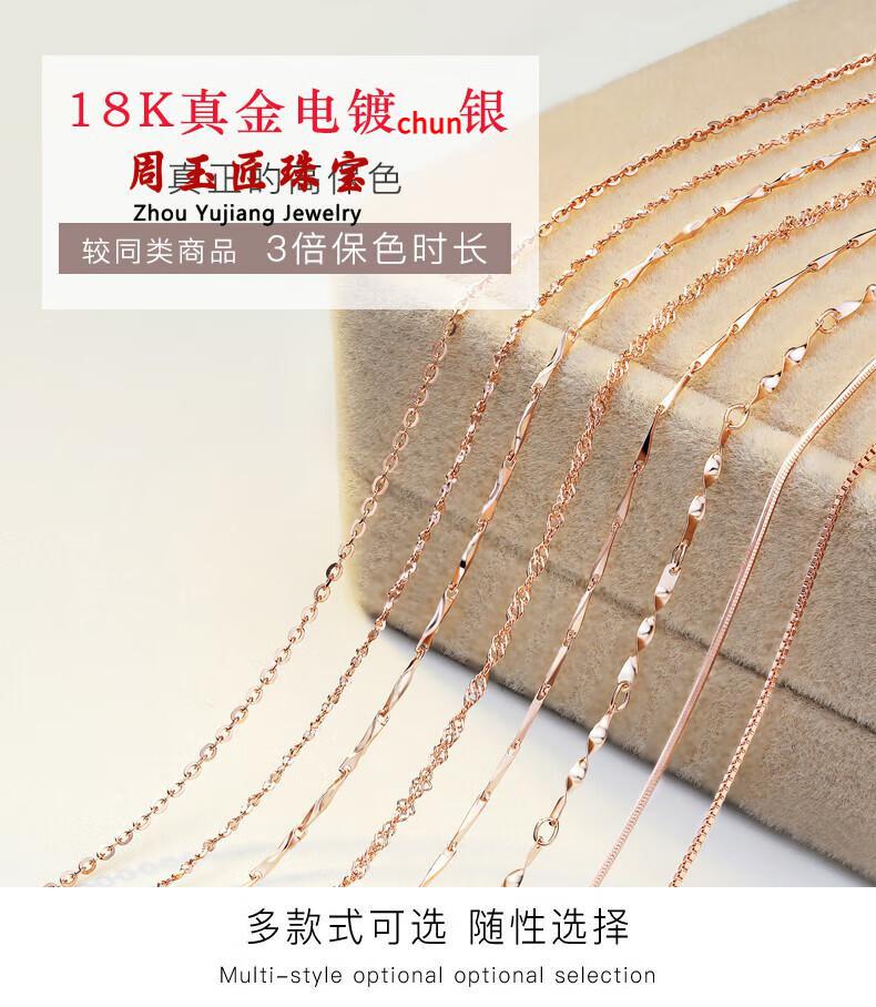 Necklace plain chain colored gold for women 925 rose gold plated 18K gold naked chain without pendant clavicle chain fine chain length 55cm (please note the chain style you need to photograph)