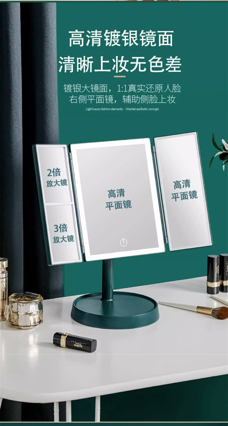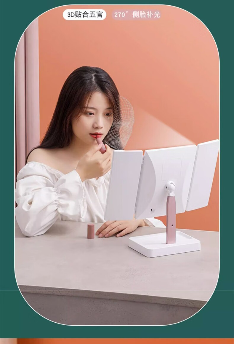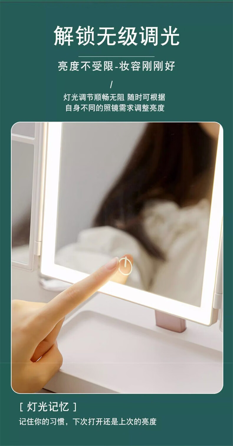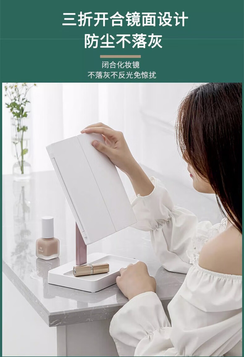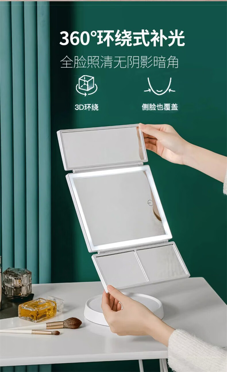 柏菲登卧室镜子高清充电智能化妆镜带灯led梳妆镜 桌面台式梳妆台补妆镜 美容化妆镜美容器镜子 贝壳镜【360旋转+三色光】珍珠白