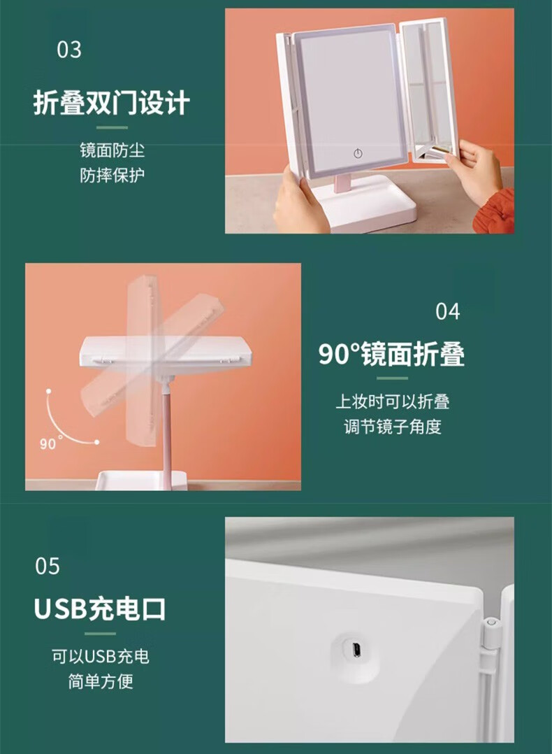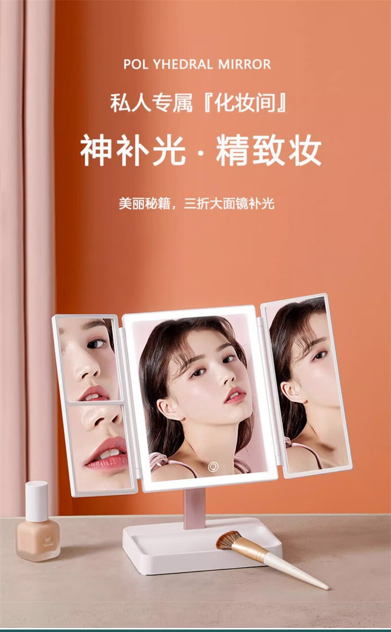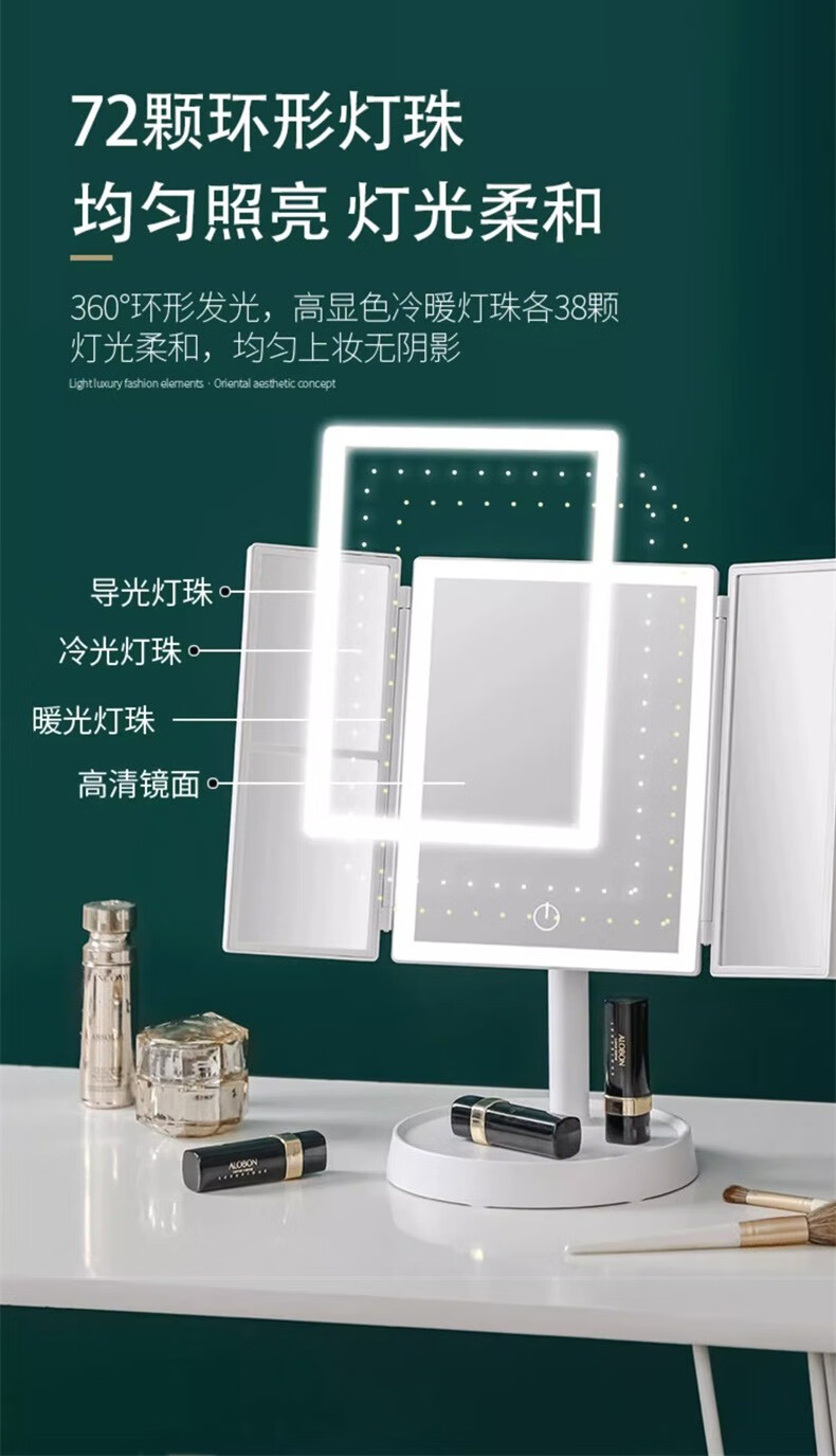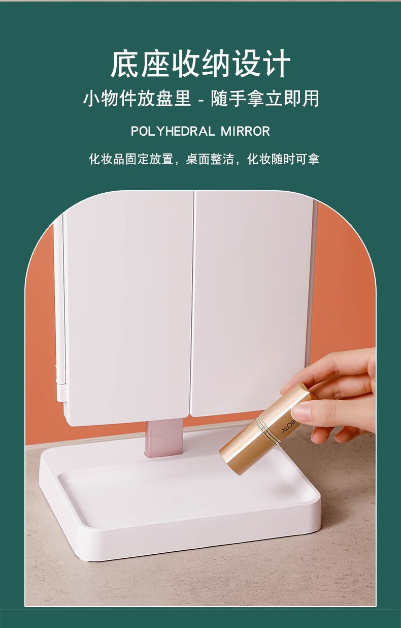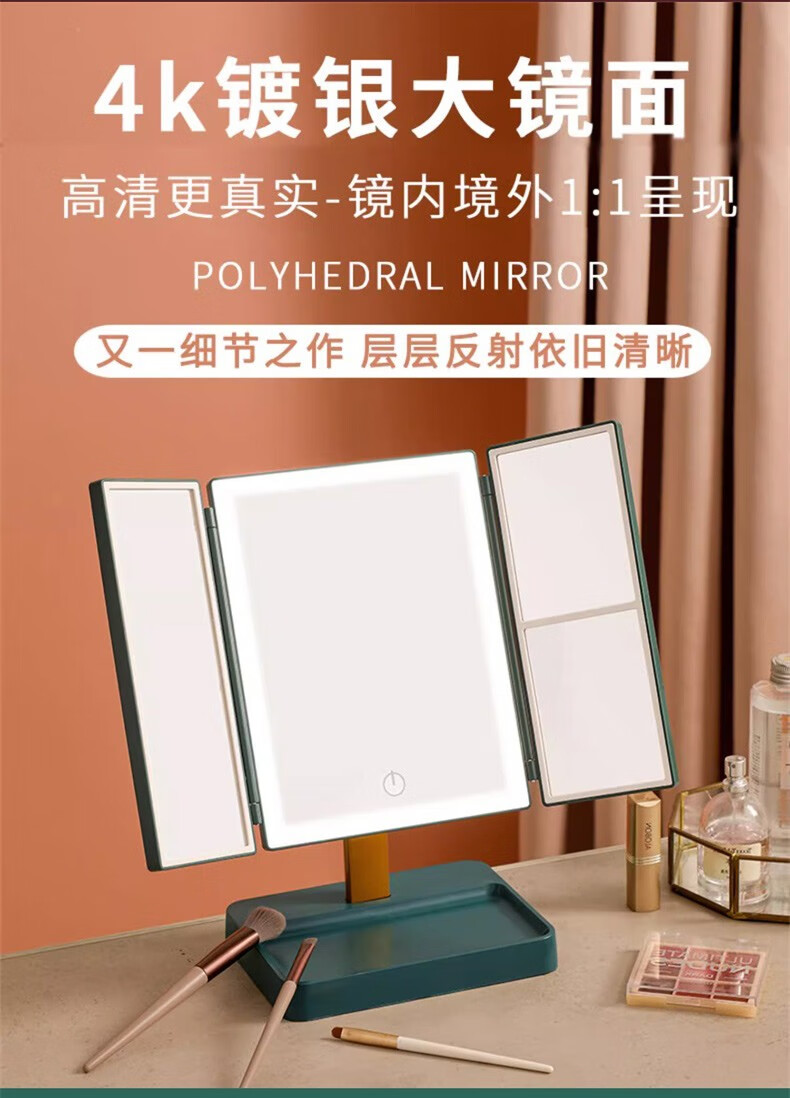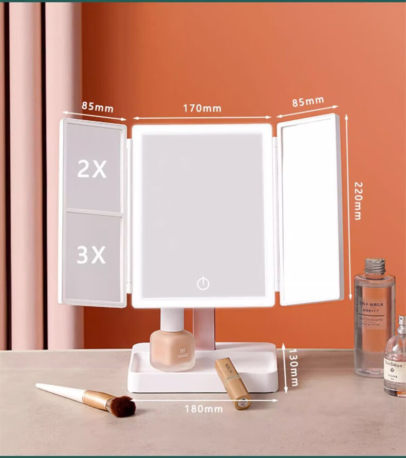 柏菲登卧室镜子高清充电智能化妆镜带灯led梳妆镜 桌面台式梳妆台补妆镜 美容化妆镜美容器镜子 贝壳镜【360旋转+三色光】珍珠白