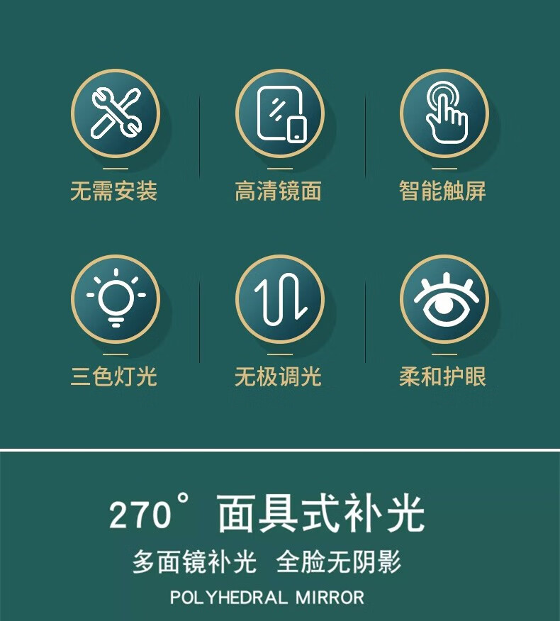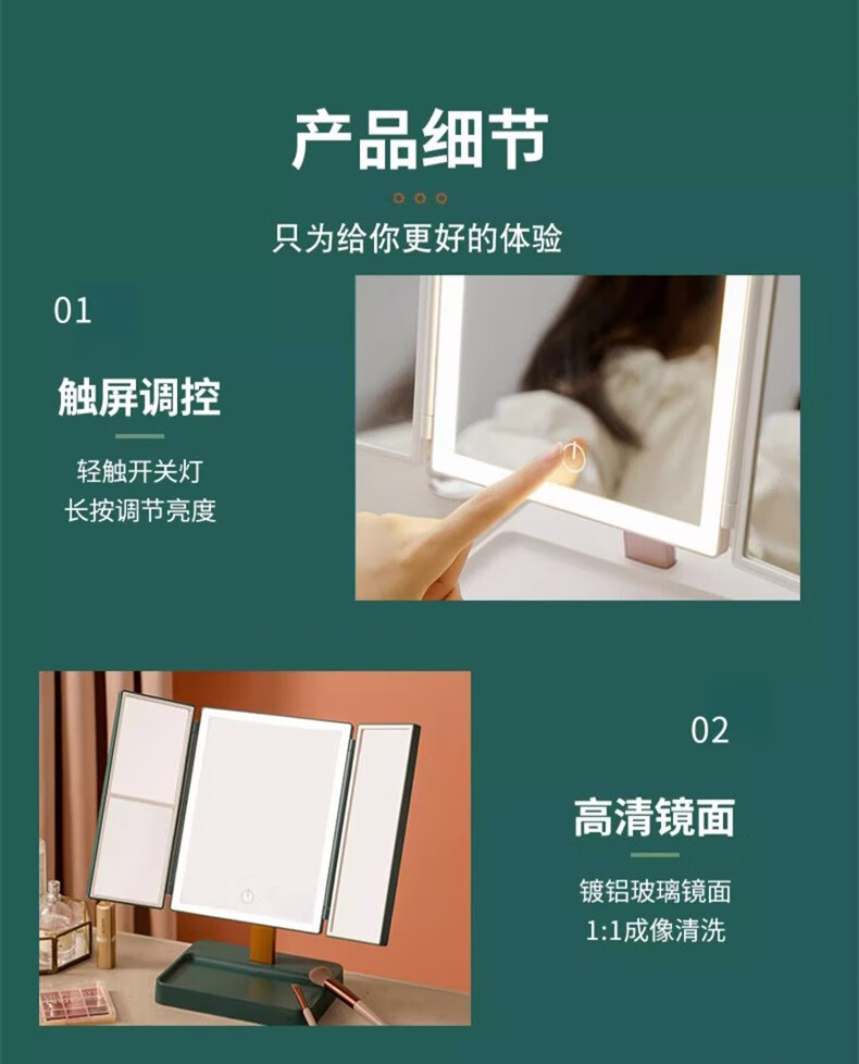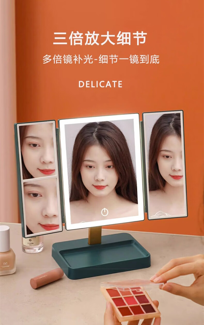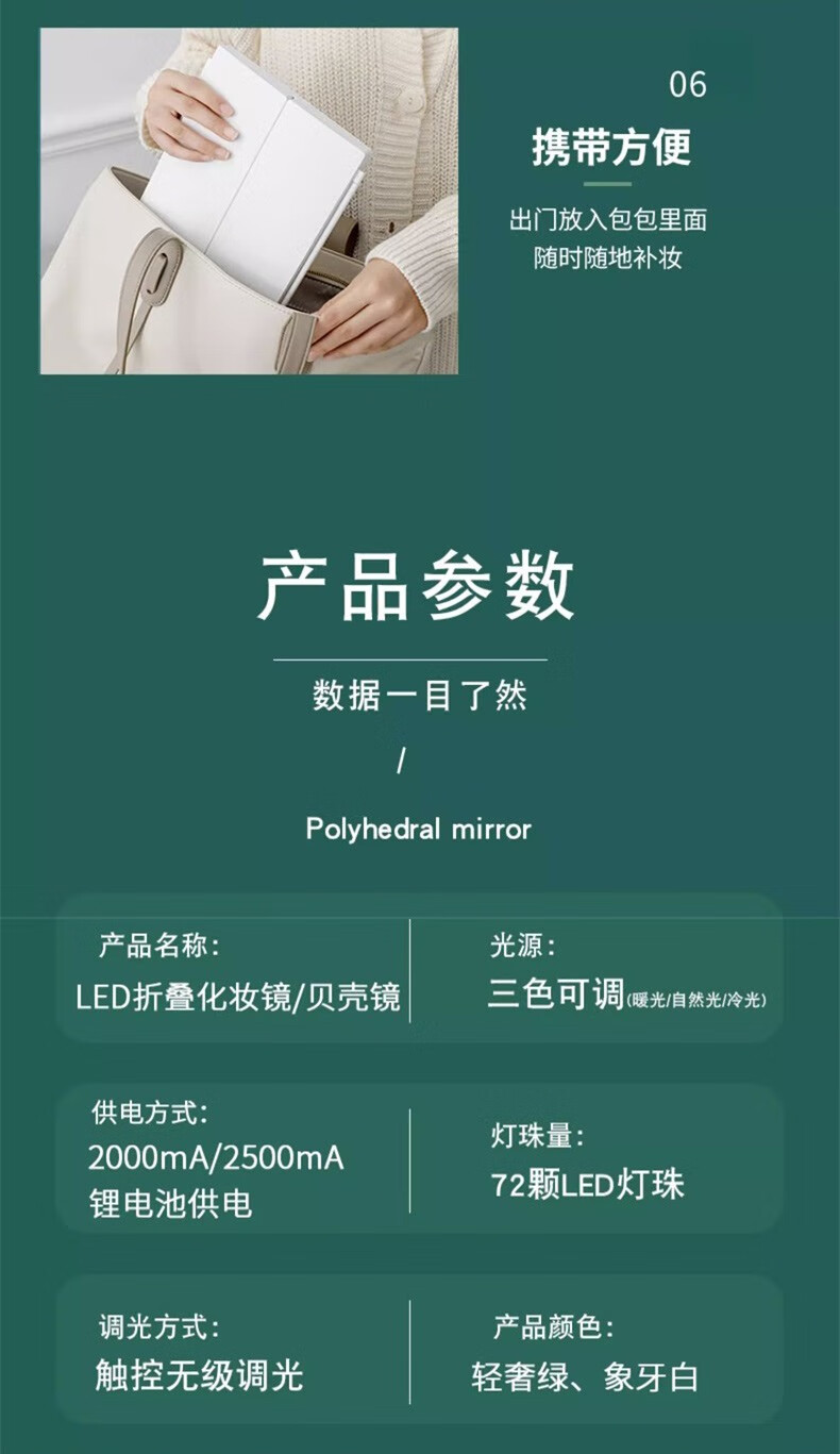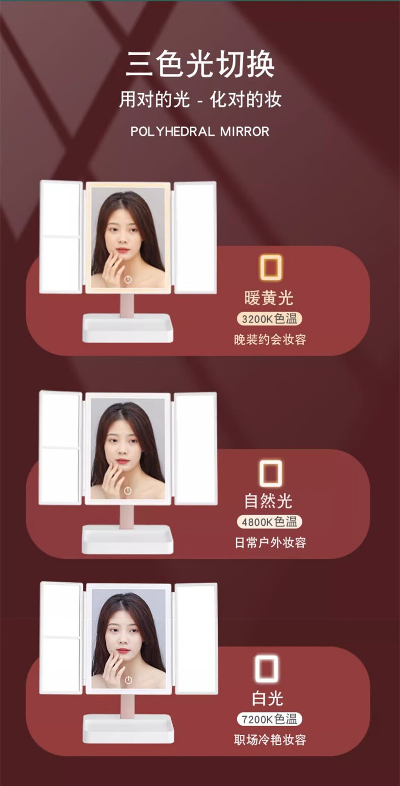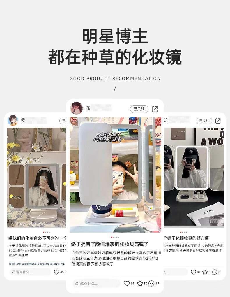 柏菲登卧室镜子高清充电智能化妆镜带灯led梳妆镜 桌面台式梳妆台补妆镜 美容化妆镜美容器镜子 贝壳镜【360旋转+三色光】珍珠白