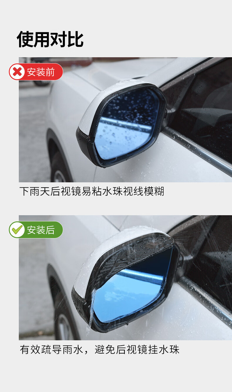 Aolin car rearview mirror rain brow waterproof strip reversing mirror rain shield reflector anti-rain shield double-sided tape universal style Rearview mirror rain brow丨carbon fiber pattern丨two pieces