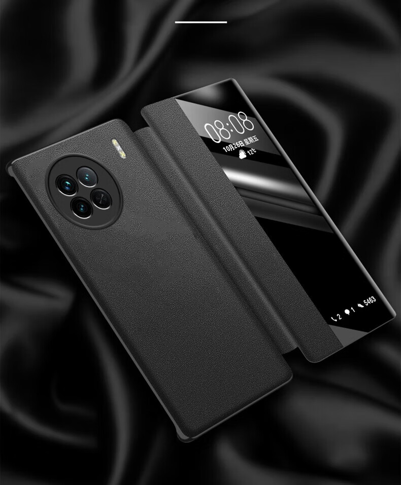Omega is suitable for OnePlus ace2Pro mobile phone case, new flip smart sleep case oneplusace2/Pro plain leather leather case, all-inclusive and anti-fall, cool black-smart sleep plain leather, OnePlus ace2