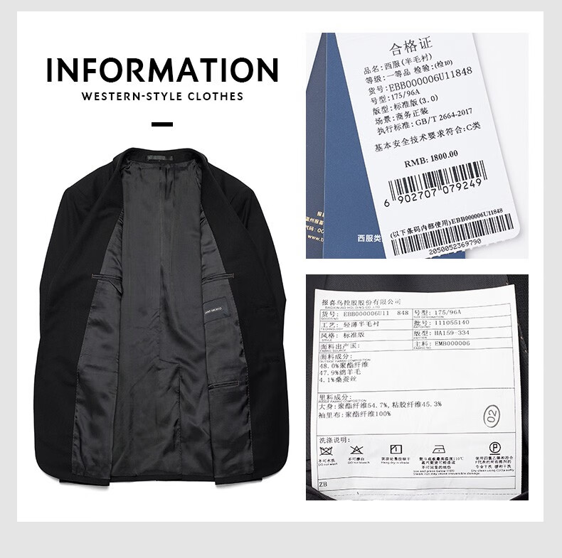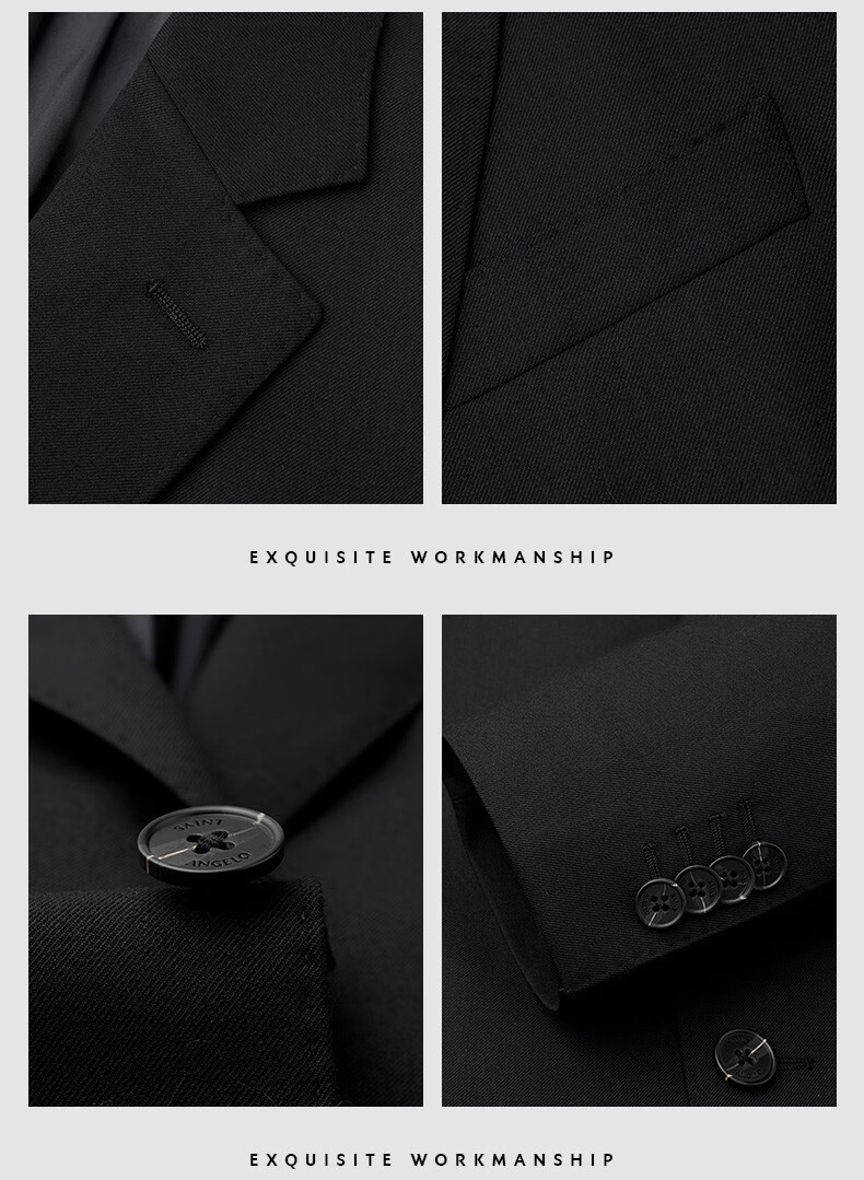 Angel Bird Suit Men's Autumn New Men's Business Casual Suit with Mulberry Silk Suit and Trousers Two-button Suit Suit Black Serge 44 A(165/88) /Please note waist or trousers