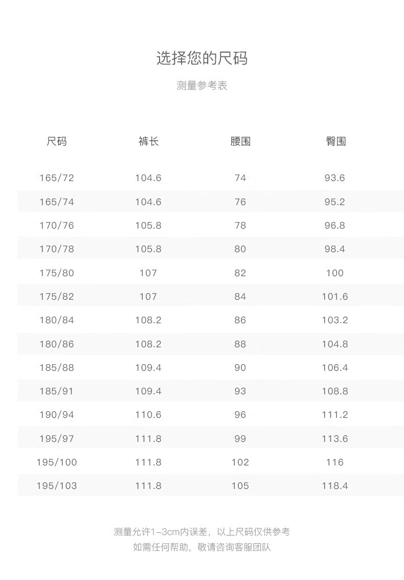 Outseam (cm) 99 cm 101.5 cm 104 cm 106.5 cm 109 cm