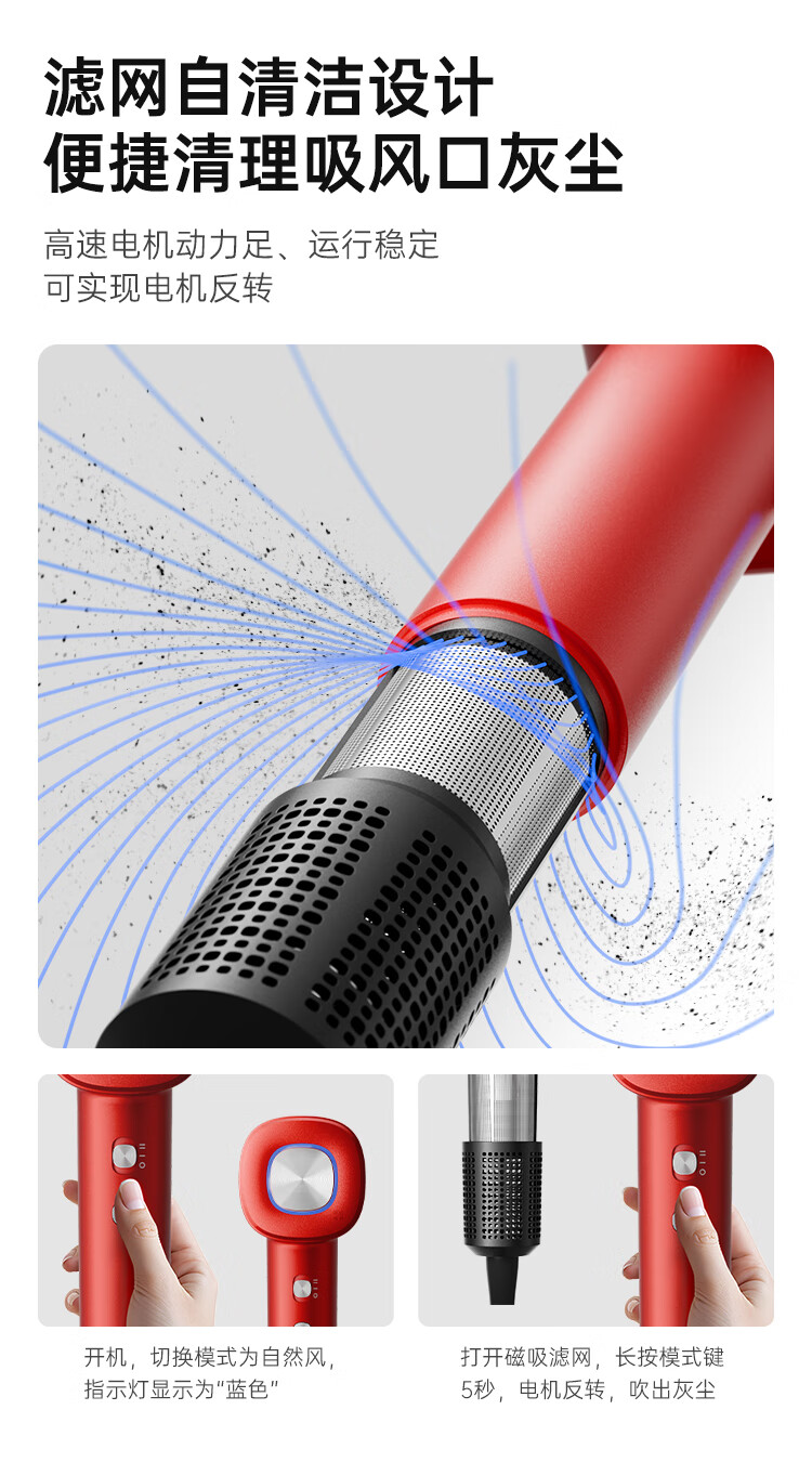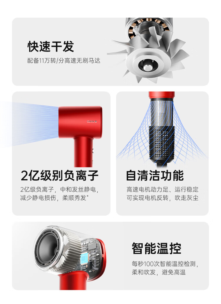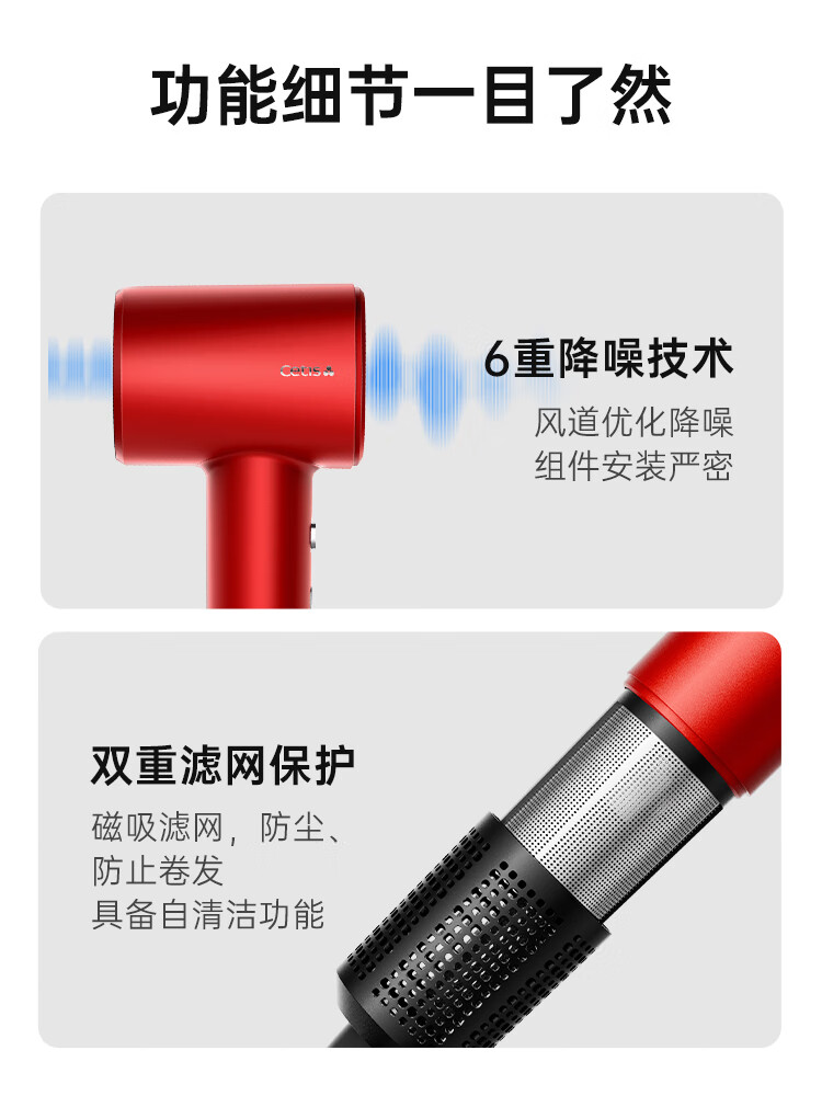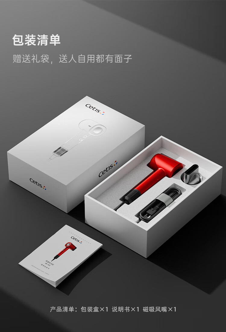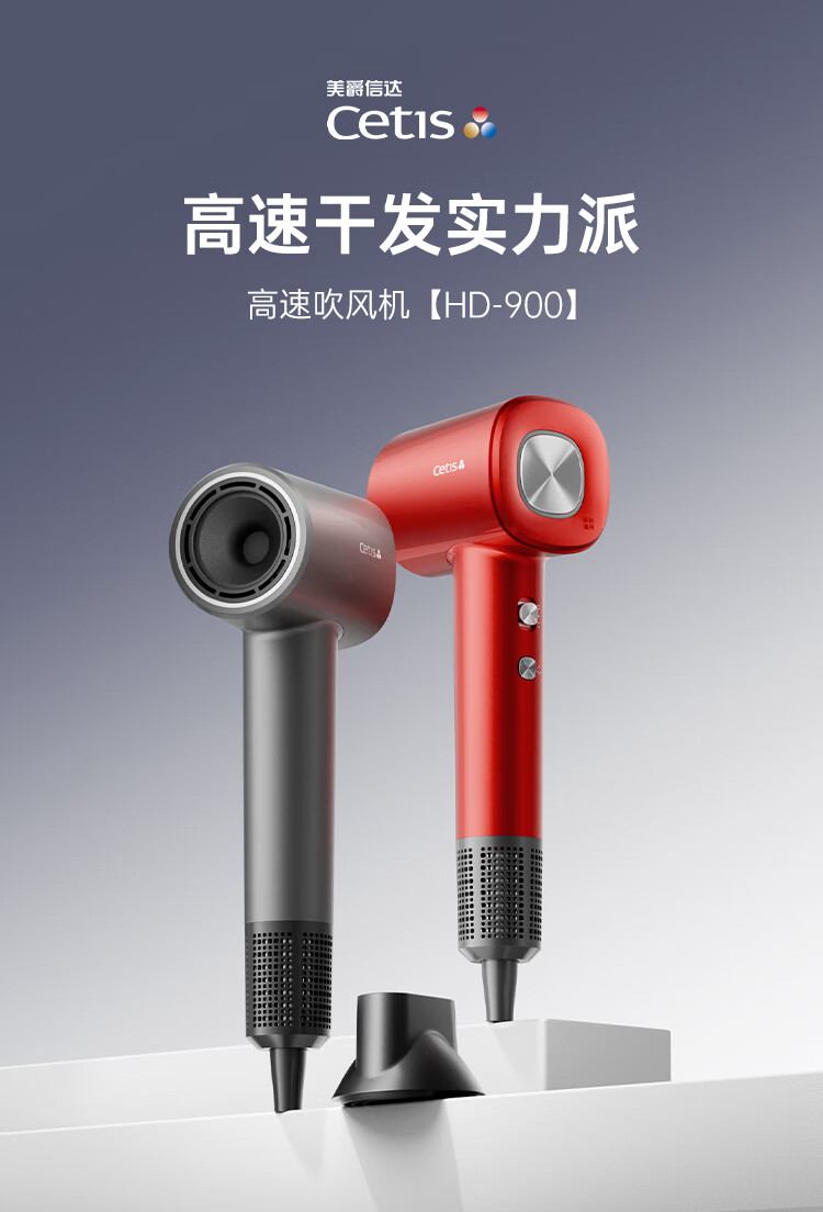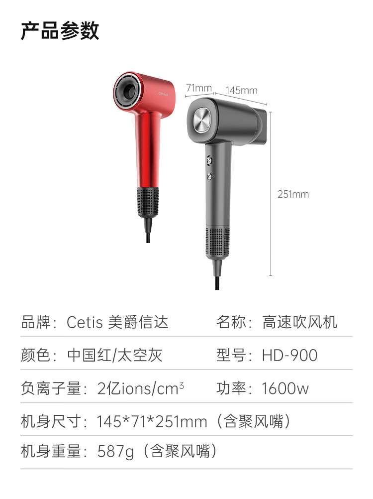 CETIS Mercure Xinda hair dryer household low-noise 100 million-level negative ion 1600w high-power high-speed hair dryer five-star hotel with the same type of constant temperature hair dryer HD-900 as a gift Chinese red | Good choice for gifts | Follow and be gifted