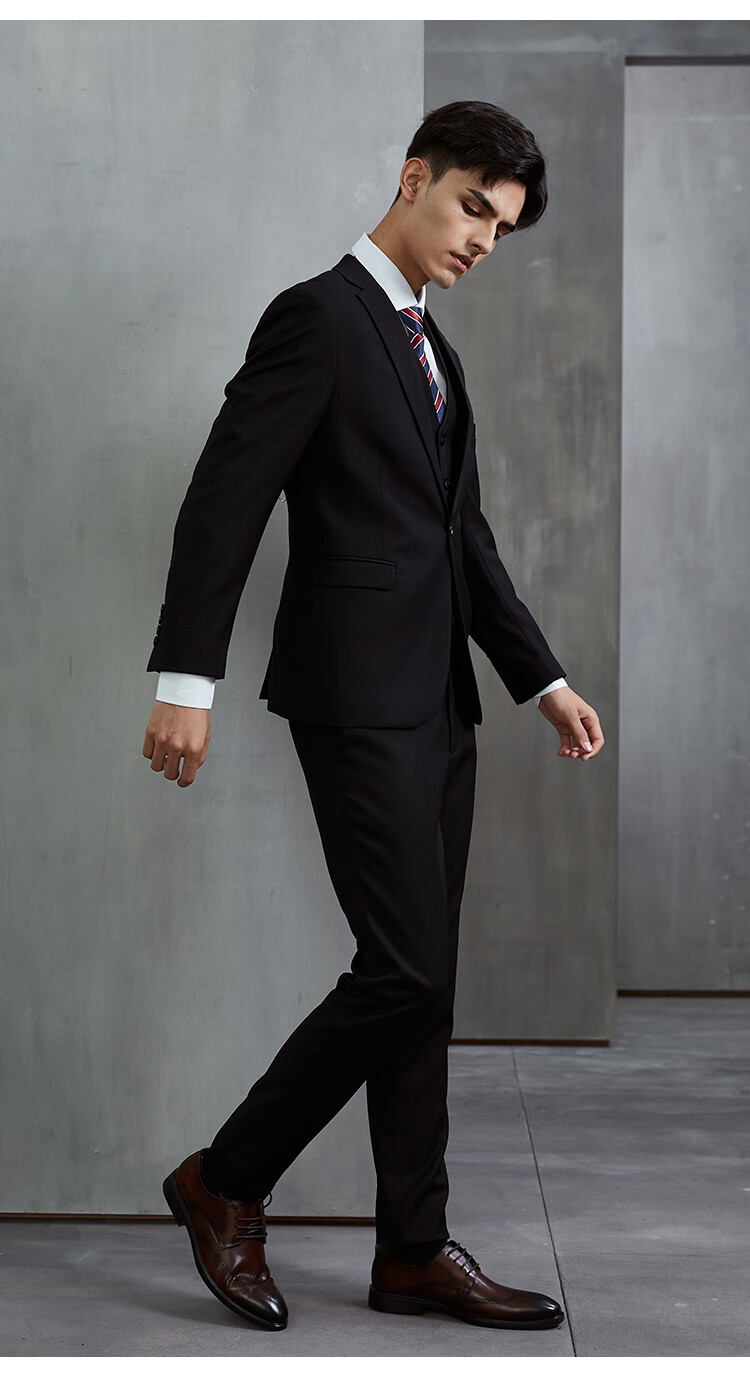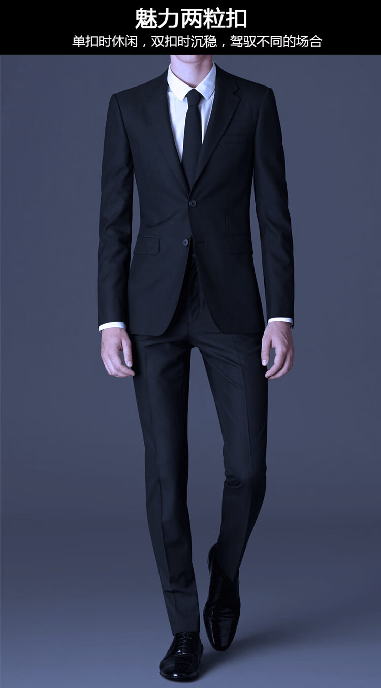 Shanshan British suit men's suit slim small suit business professional formal attire accompanying groom wedding dress casual suit black double button suit + trousers L recommended 125Jin Jin equal to within 0.5 kg
