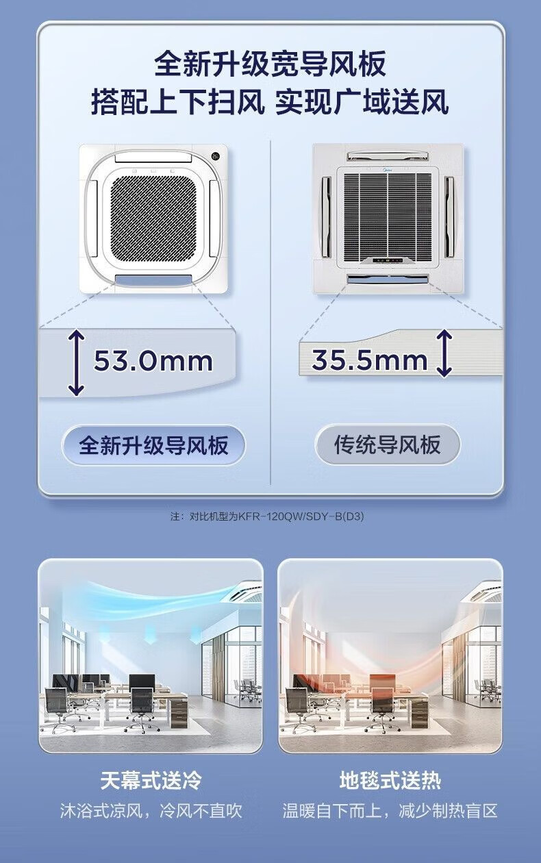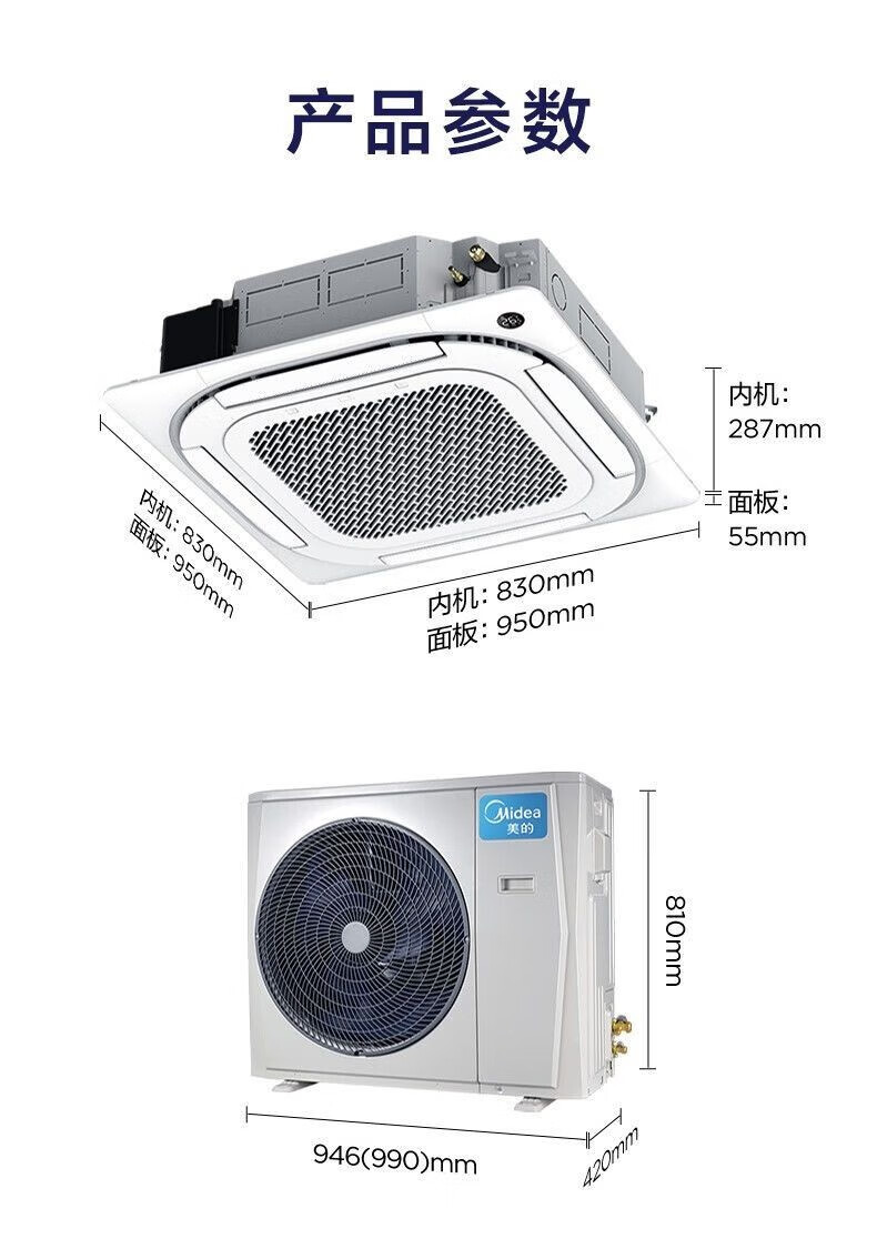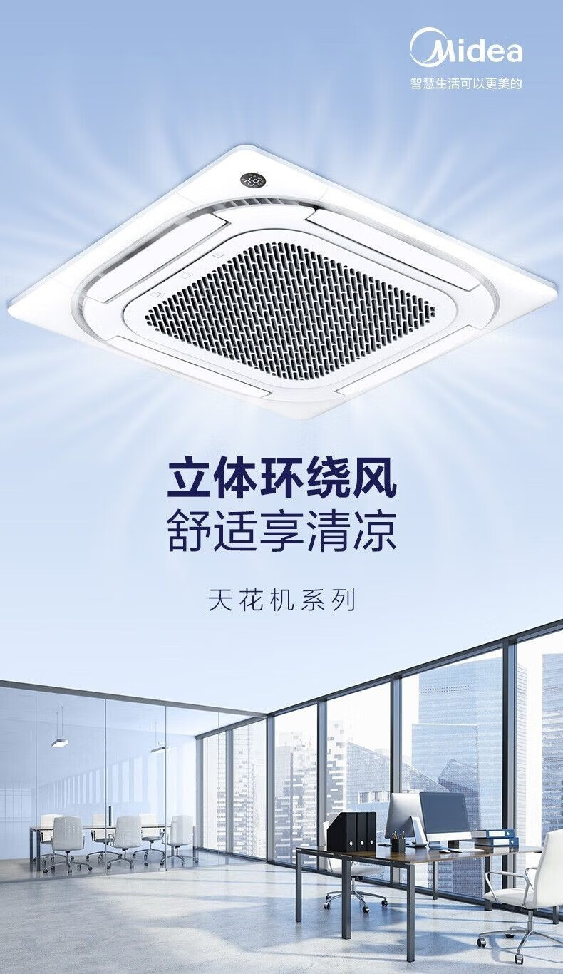 Midea central air conditioner 2 hp 3p/5 hp heating and cooling second-hand 90% new ceiling unit commercial shop office factory embedded patio unit ceiling suction air outlet from all sides Midea three-horse fixed frequency heating and cooling ceiling unit-220V