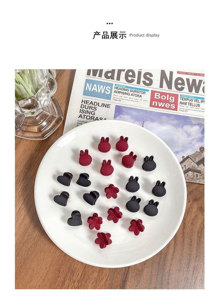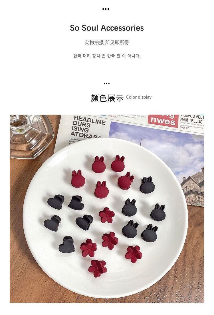 Princess Xiang Mini Clip Headdress Side Hairpin Princess Hair Side Clip Small Clip with Bangs Shredded Black Hairpin Frosted Clip Black and Red Mixed Pack 2O Pack