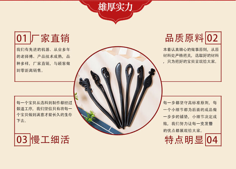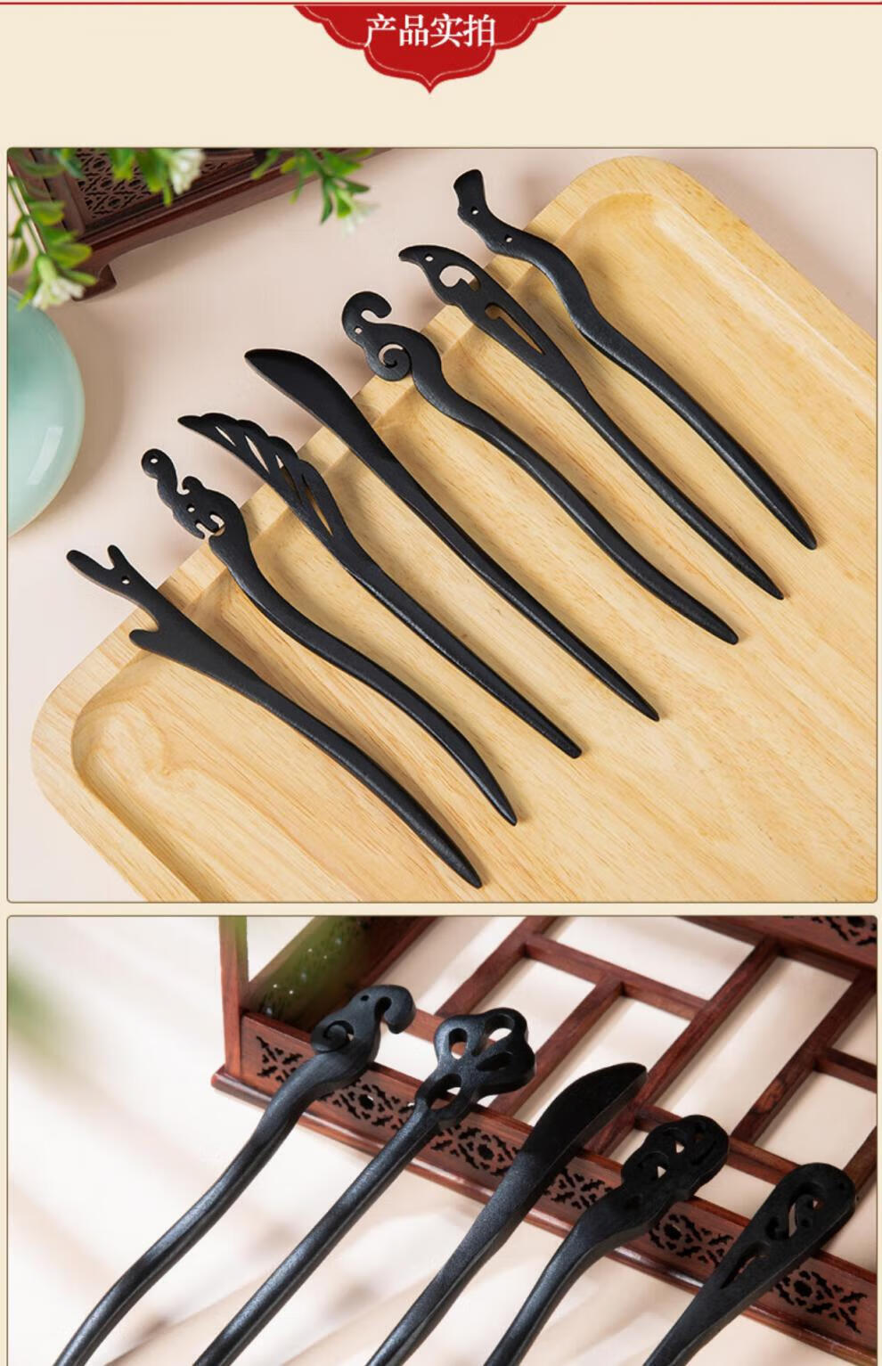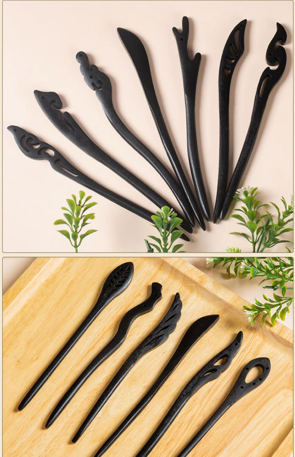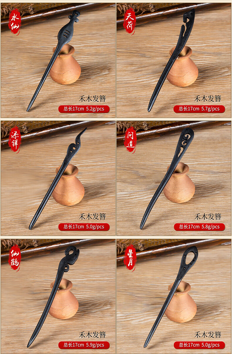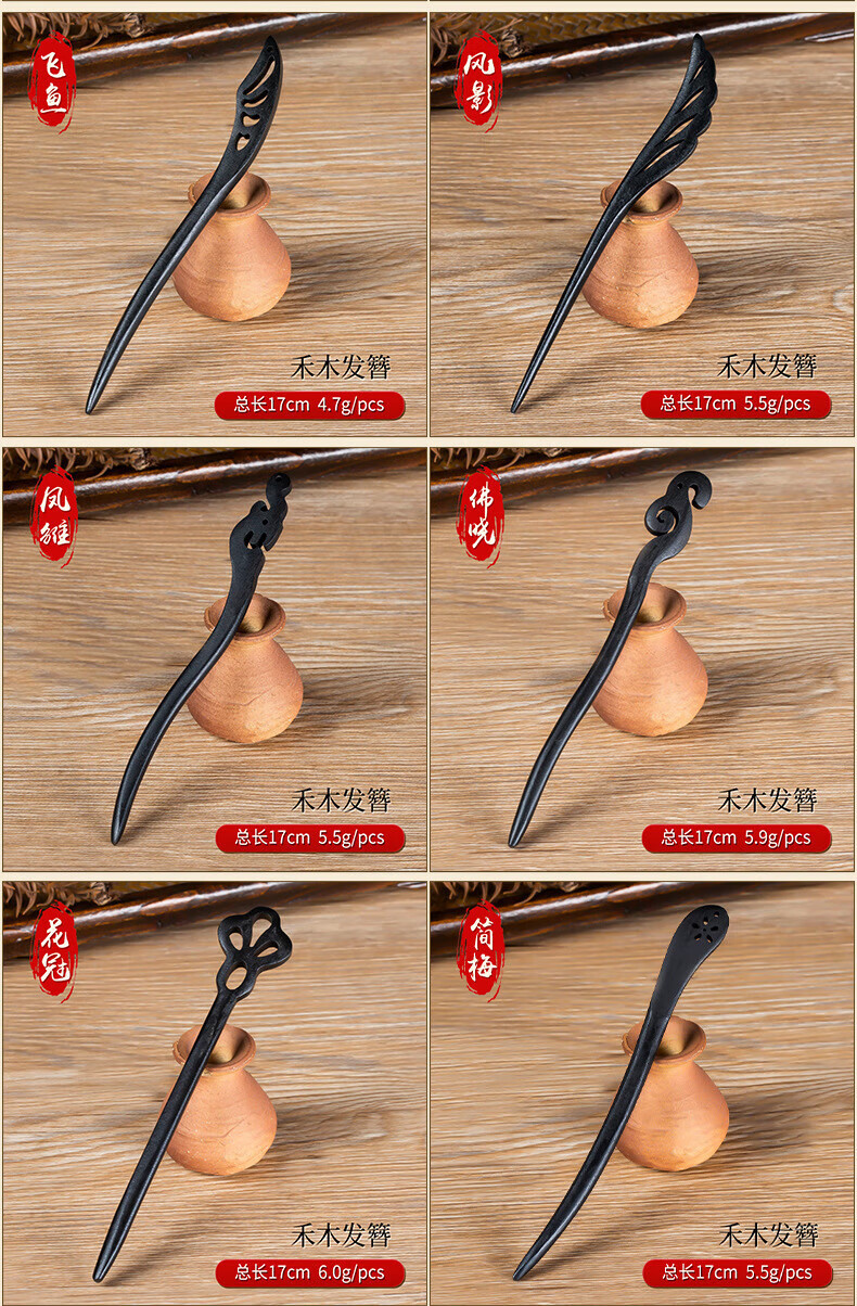 Princess Xiang hairpin ancient style simple modern Chinese style daily wooden hairpin wooden hairpin one-word hairpin temperament hairpin black hairpin 10-piece set