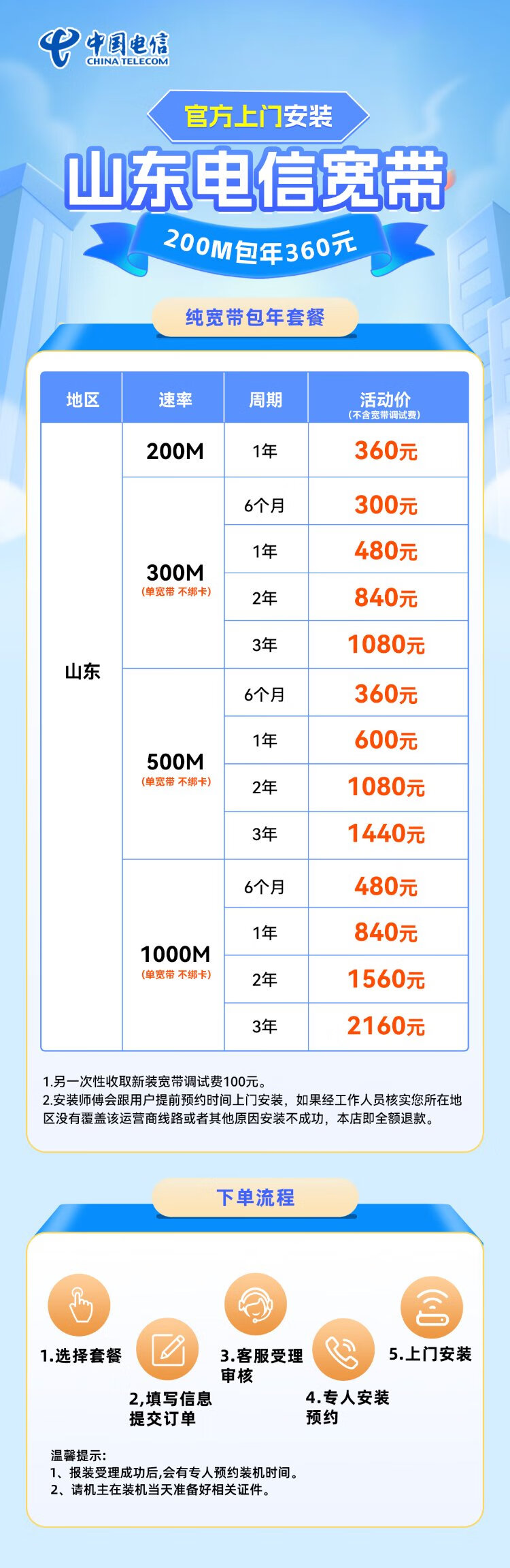 China Telecom, Shandong Telecom, Qingdao, Jinan, China Unicom, low-cost home broadband, quick door-to-door installation of broadband, Shandong Telecom 300M package for 3 years, 1080 yuan, equivalent to 360 yuan a year