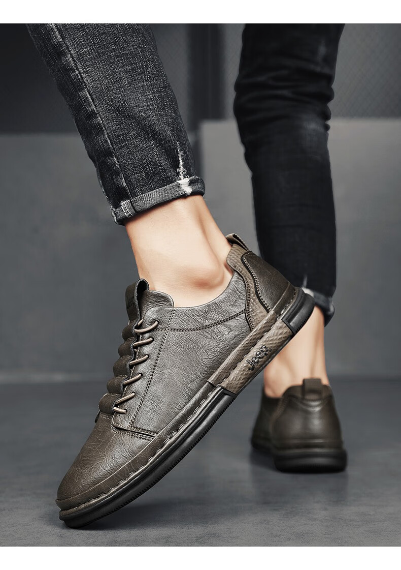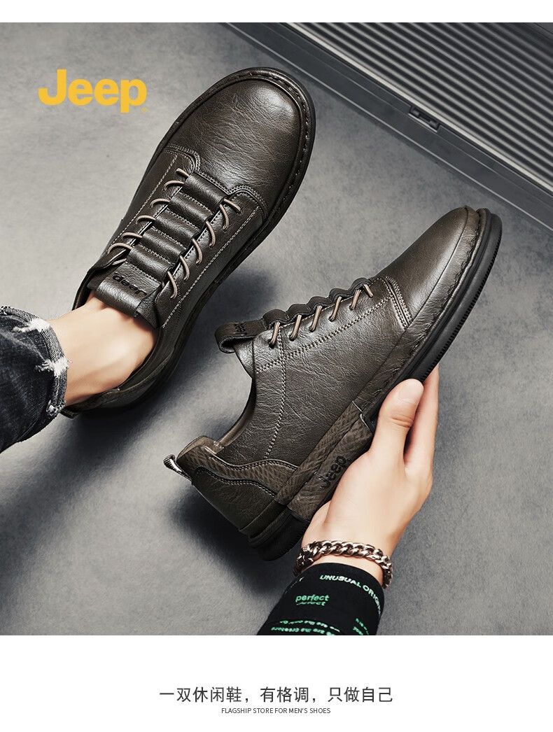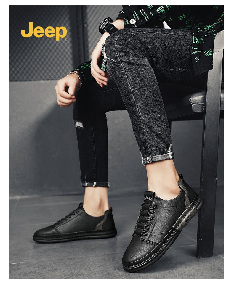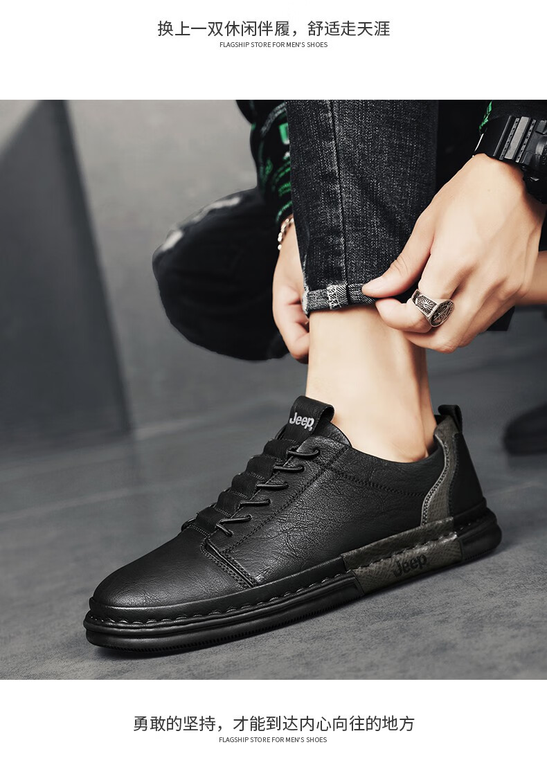 Jeep men's shoes British breathable business casual leather shoes men's lightweight versatile men's formal shoes soft sole shoes men black (leather shoe size) 42