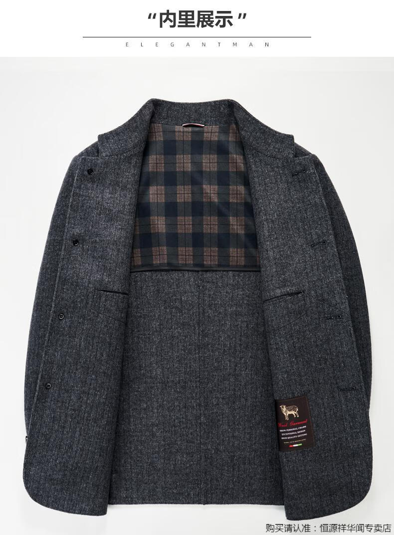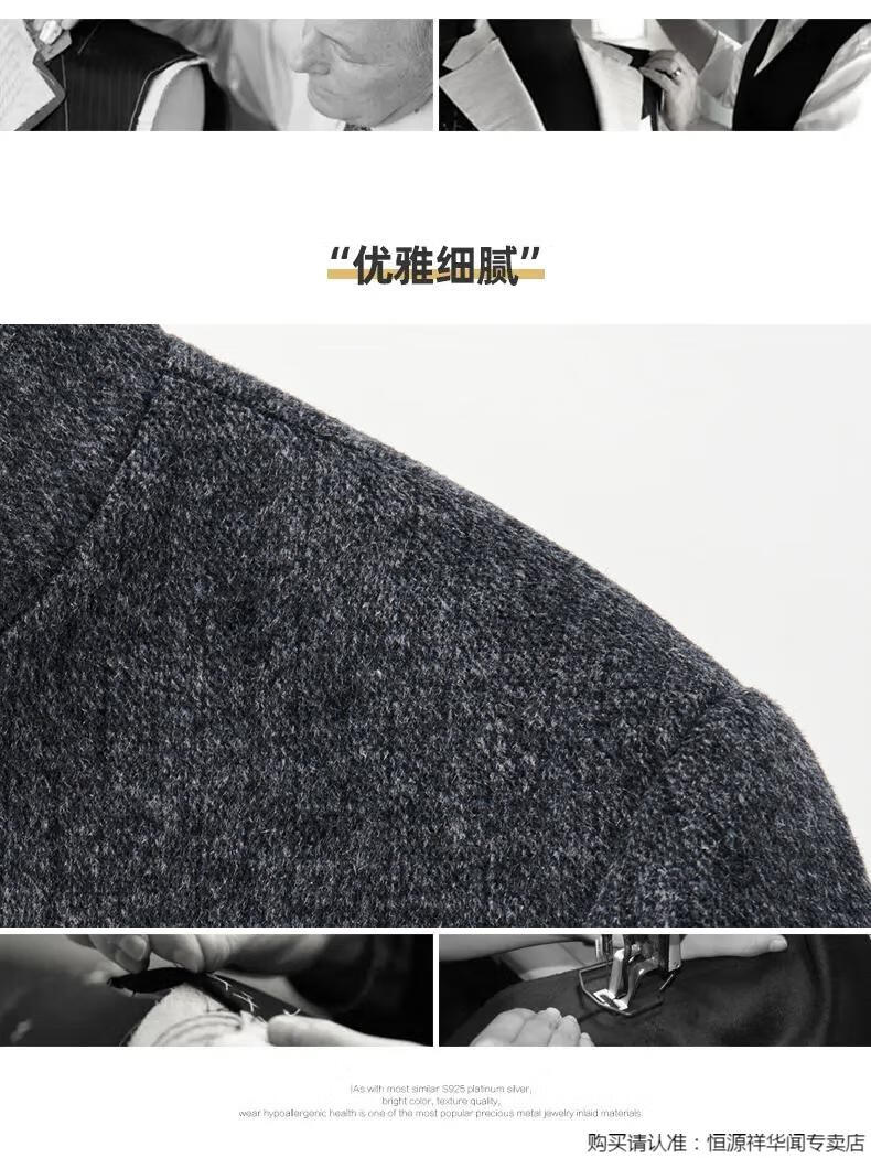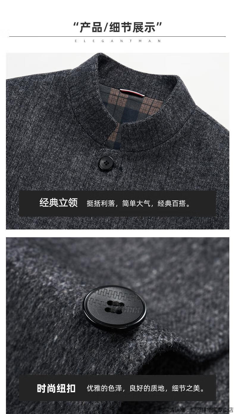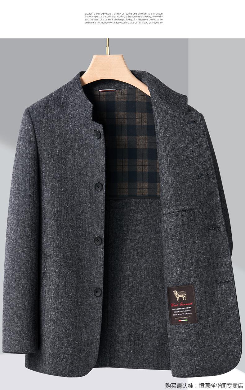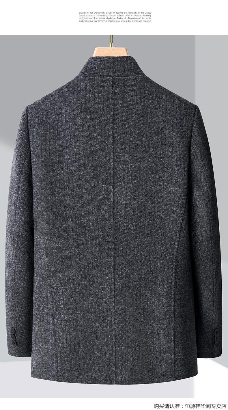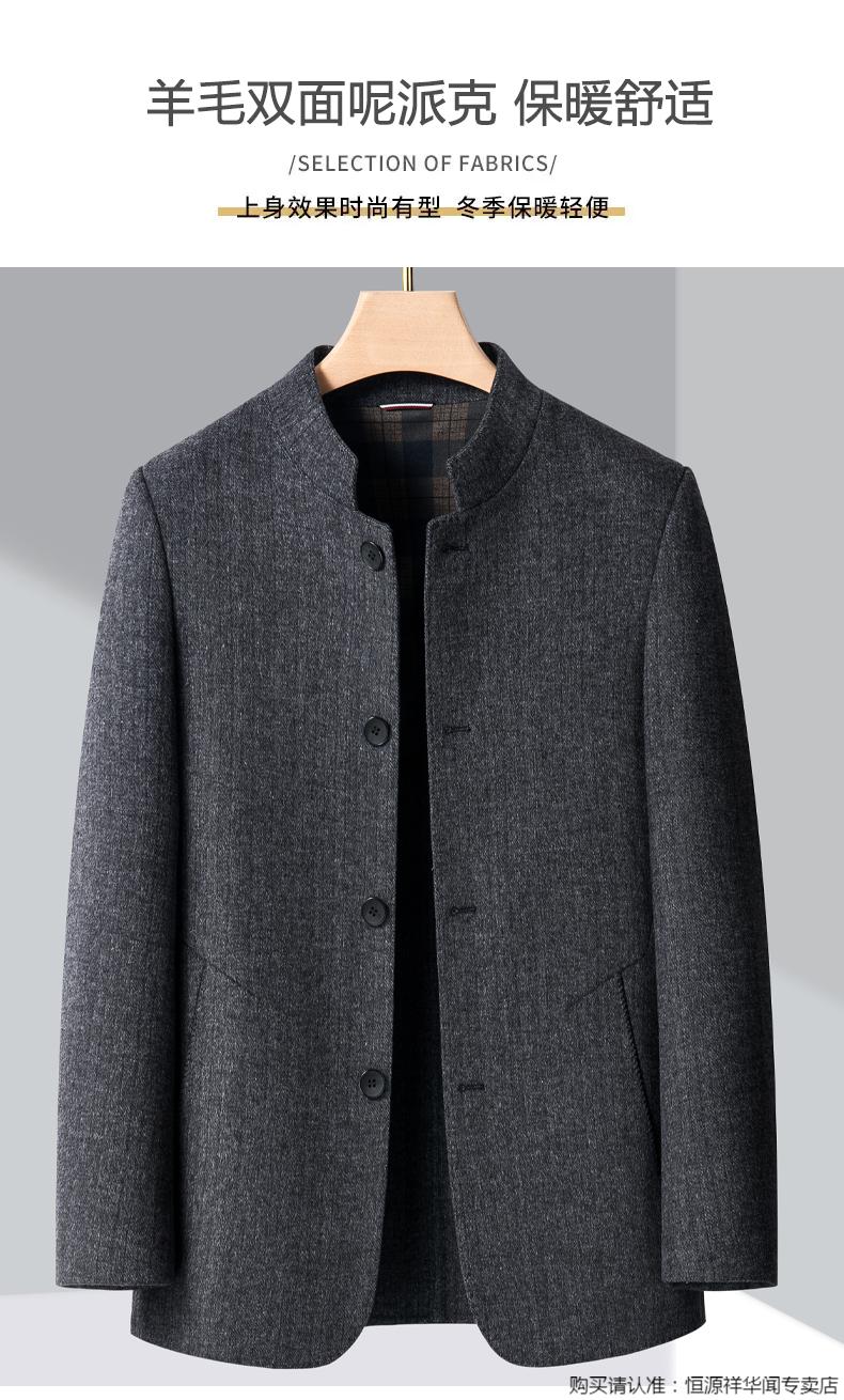 Hengyuanxiang middle-aged men's woolen woolen jacket double-sided woolen coat autumn and winter new tunic suit stand collar dad jacket gray 180/XL