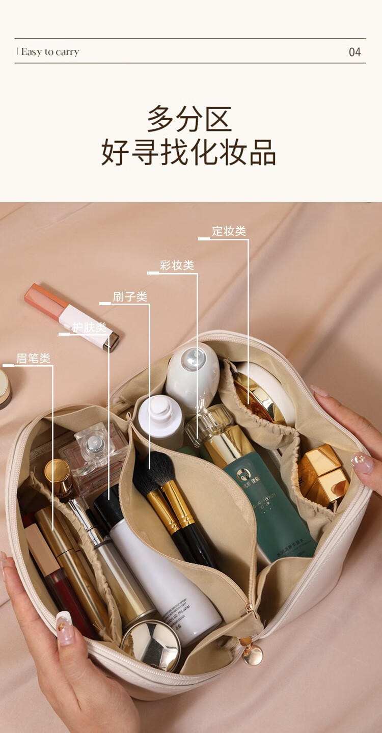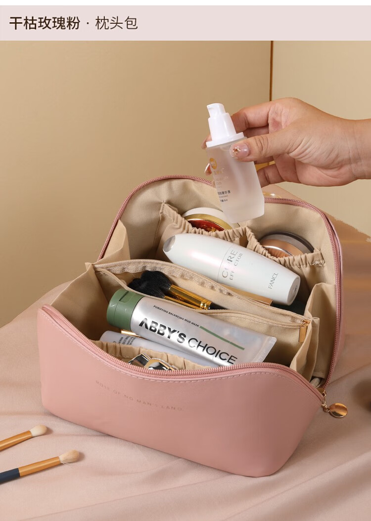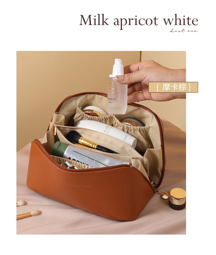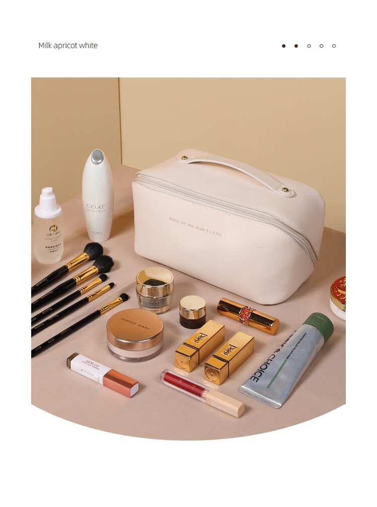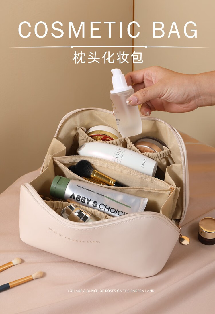MAIWEINI cosmetic bag ins large capacity travel portable toiletry bag skin care product pillow business trip cosmetics portable storage bag milky apricot white anti-fouling and stain-resistant cream texture