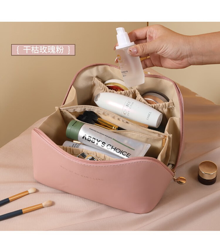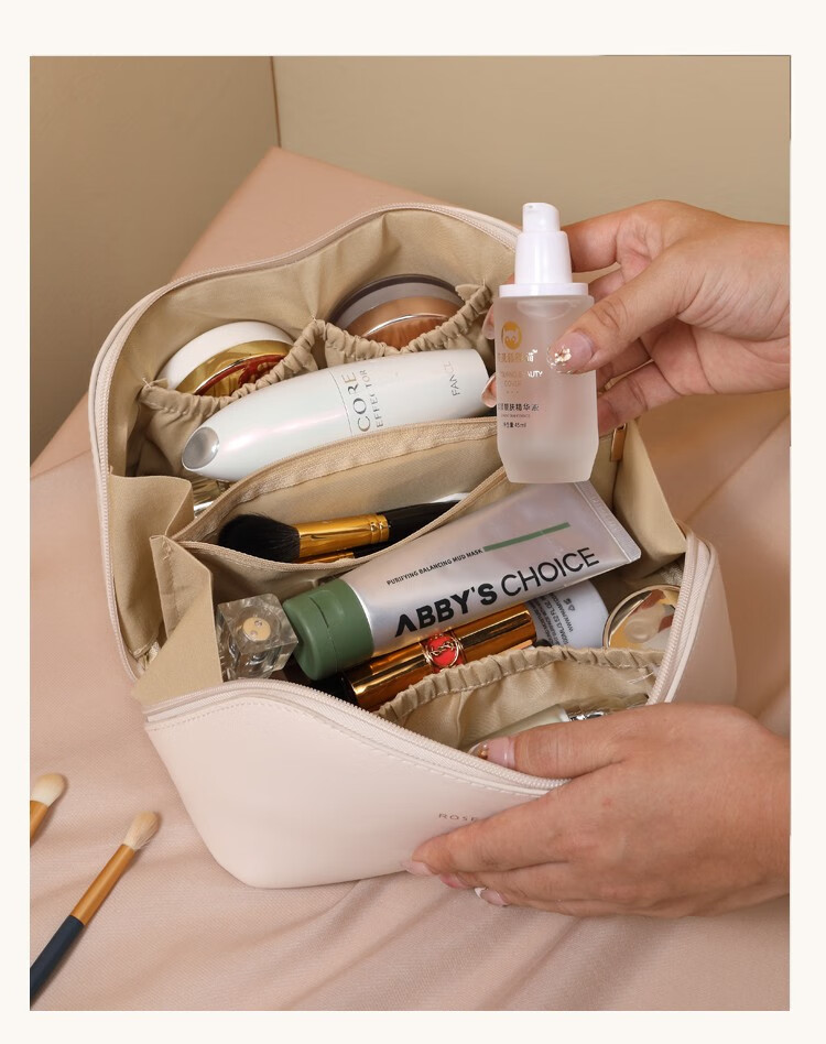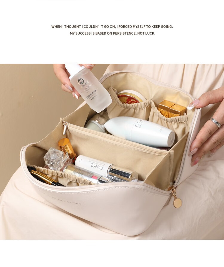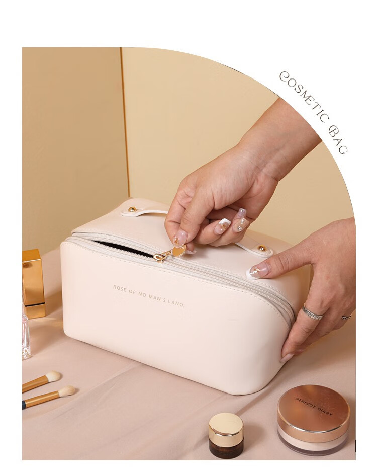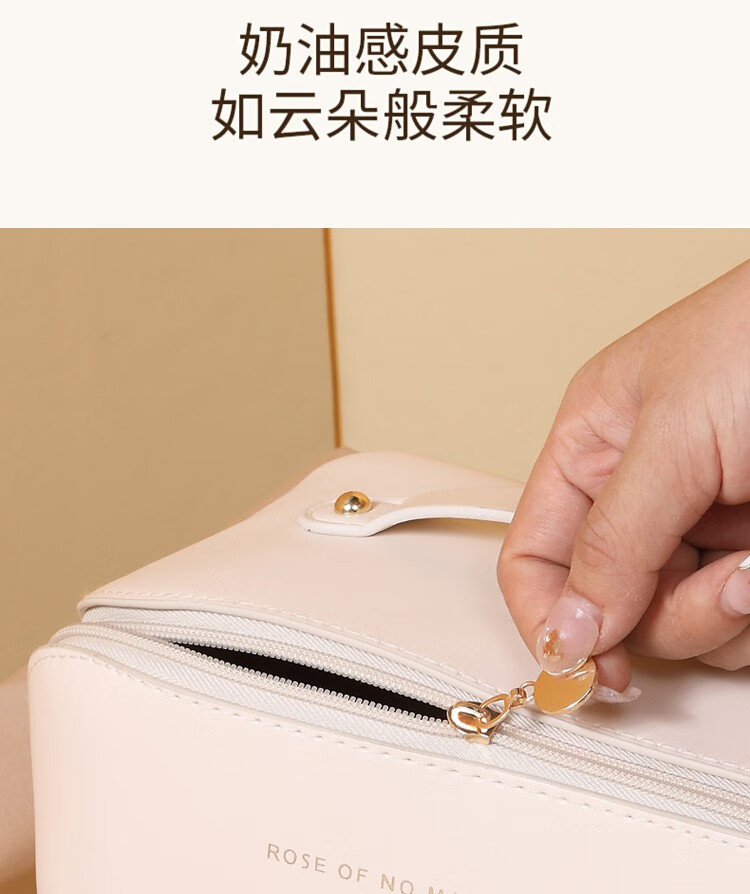 MAIWEINI cosmetic bag ins large capacity travel portable toiletry bag skin care product pillow business trip cosmetics portable storage bag milky apricot white anti-fouling and stain-resistant cream texture