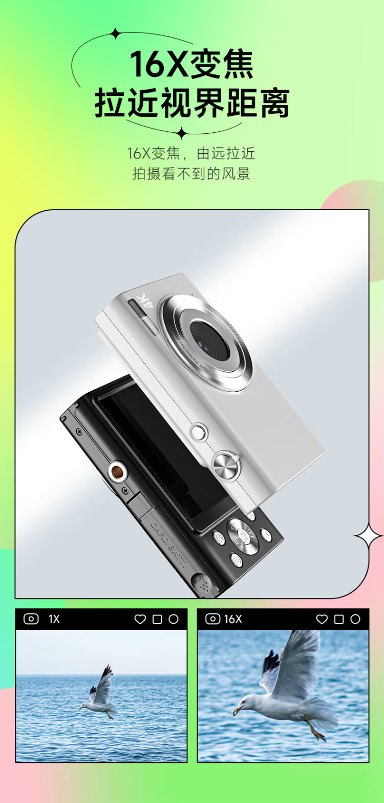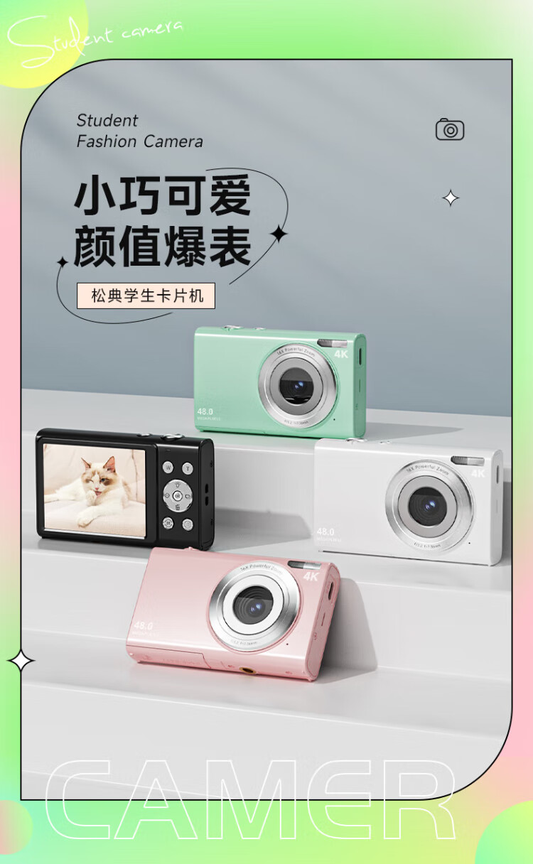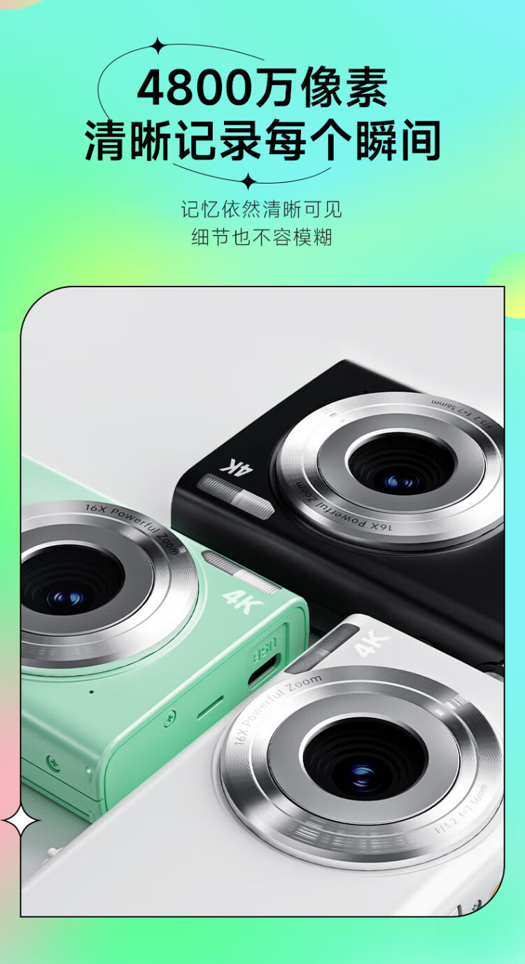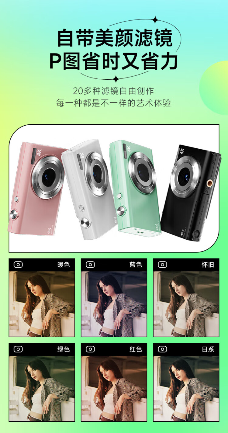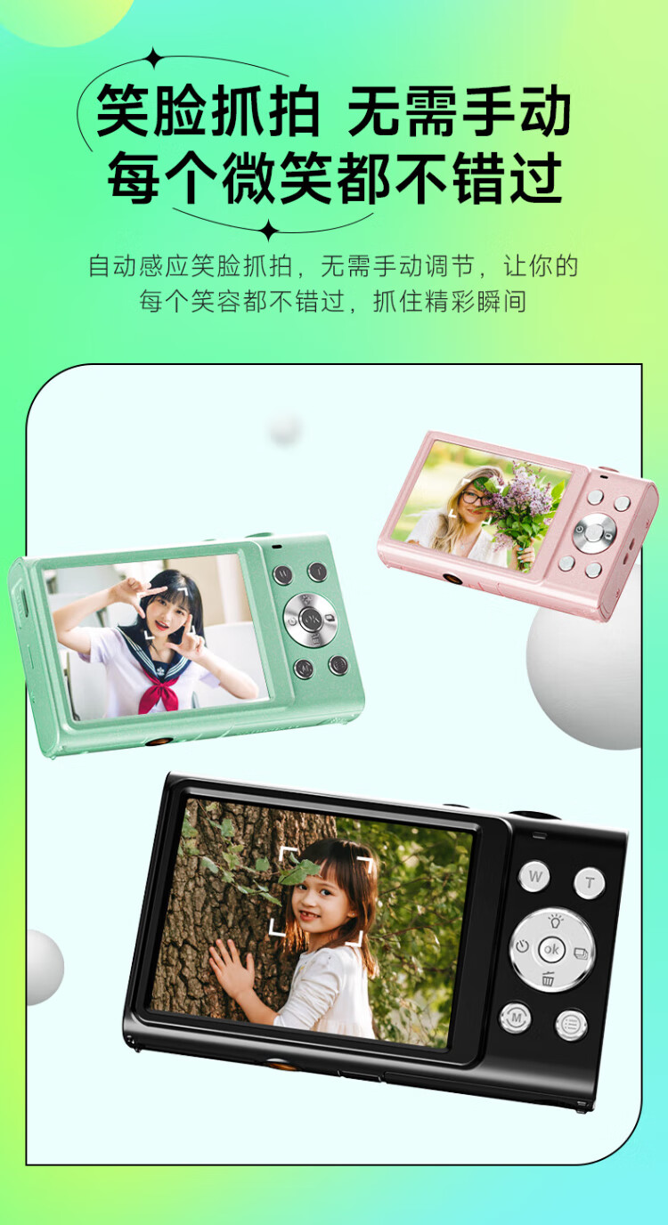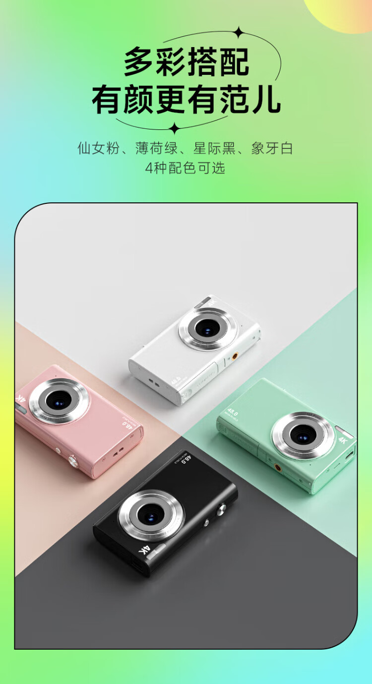 SONGDIAN digital camera for high school students, high-definition mirrorless camera, high-definition mirrorless replacement CCD campus camera, mint green, 32G memory card