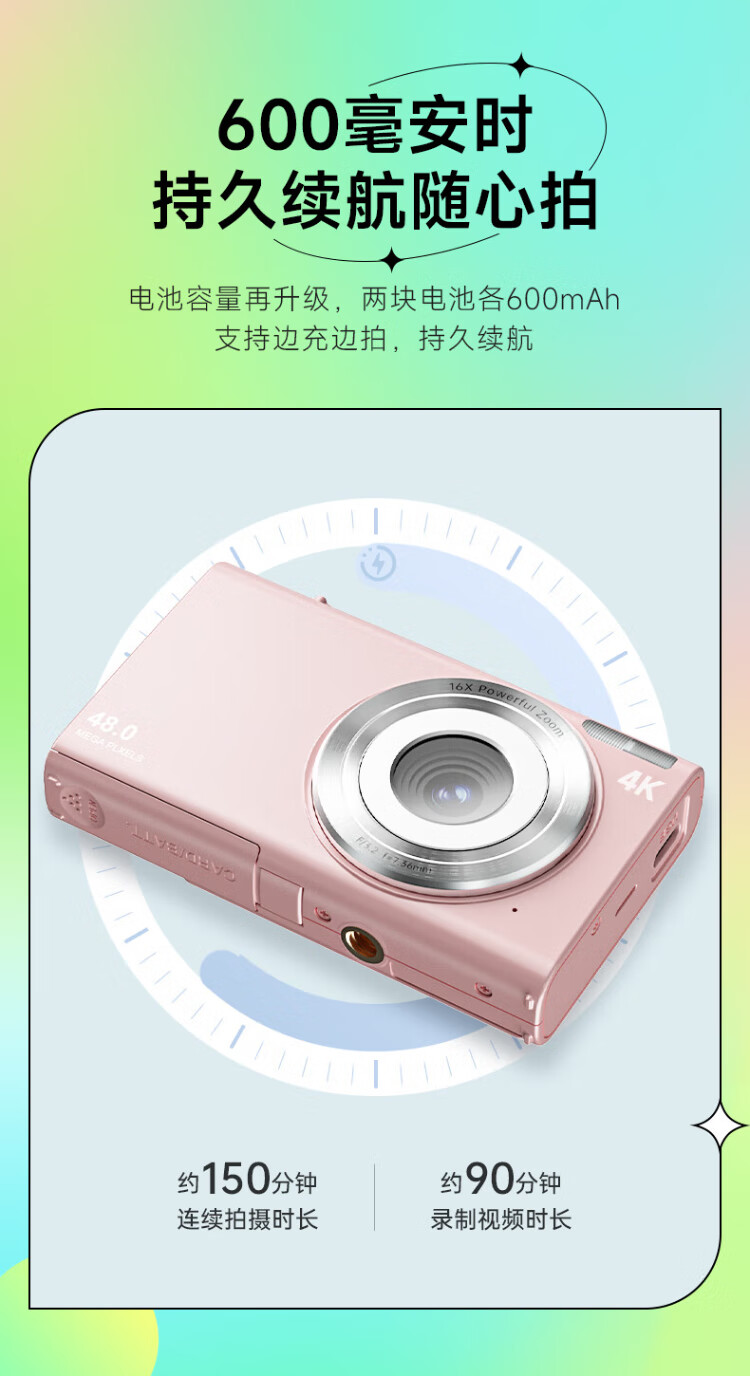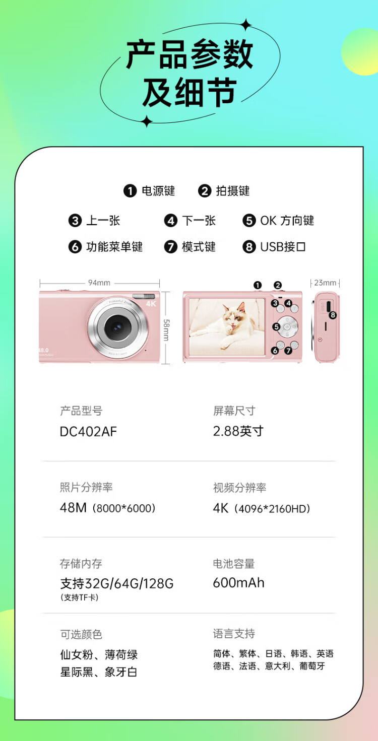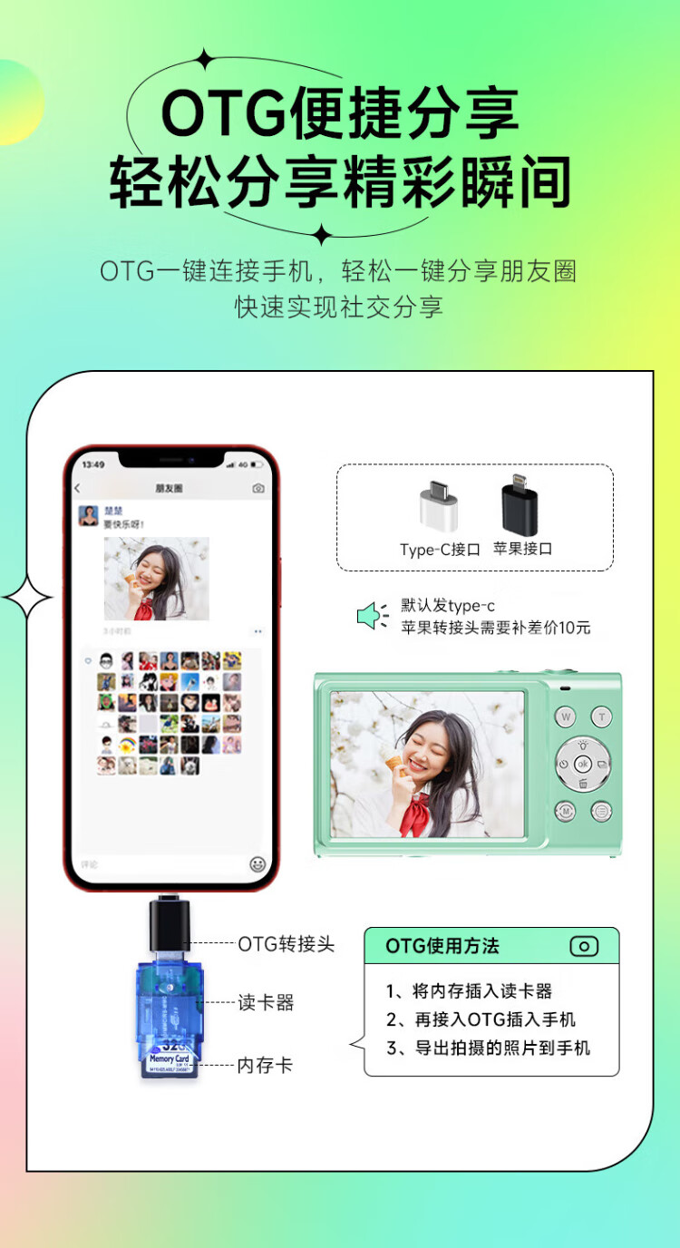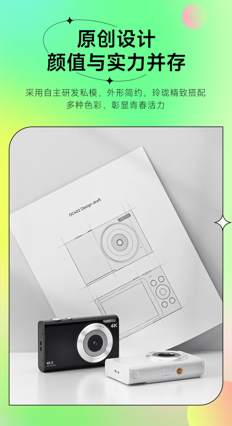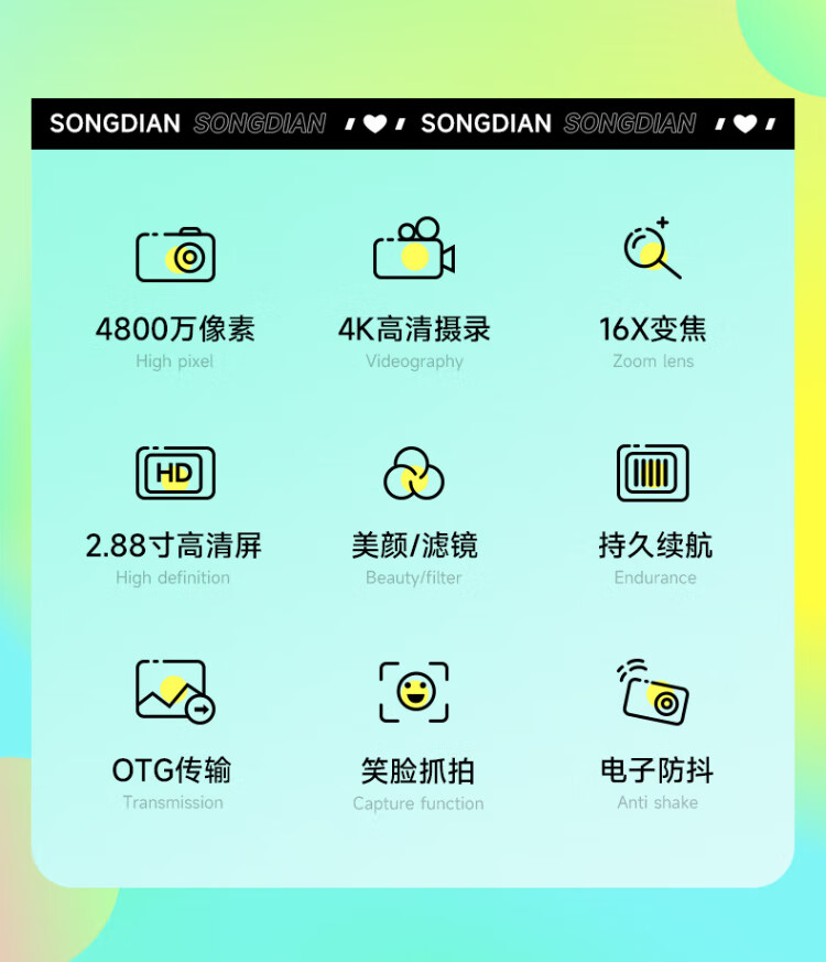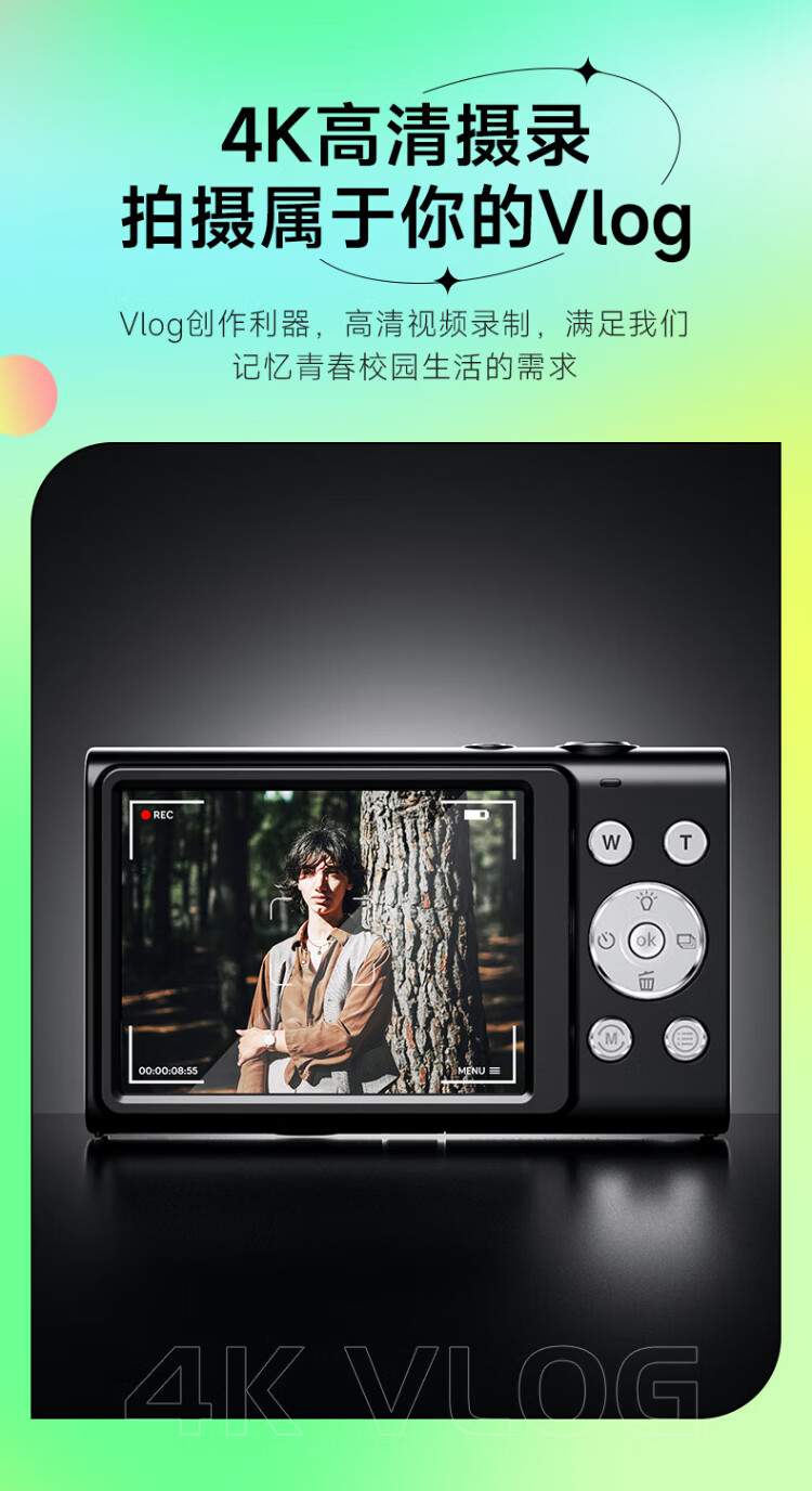 SONGDIAN digital camera for high school students, high-definition mirrorless camera, high-definition mirrorless replacement CCD campus camera, mint green, 32G memory card