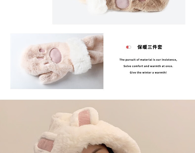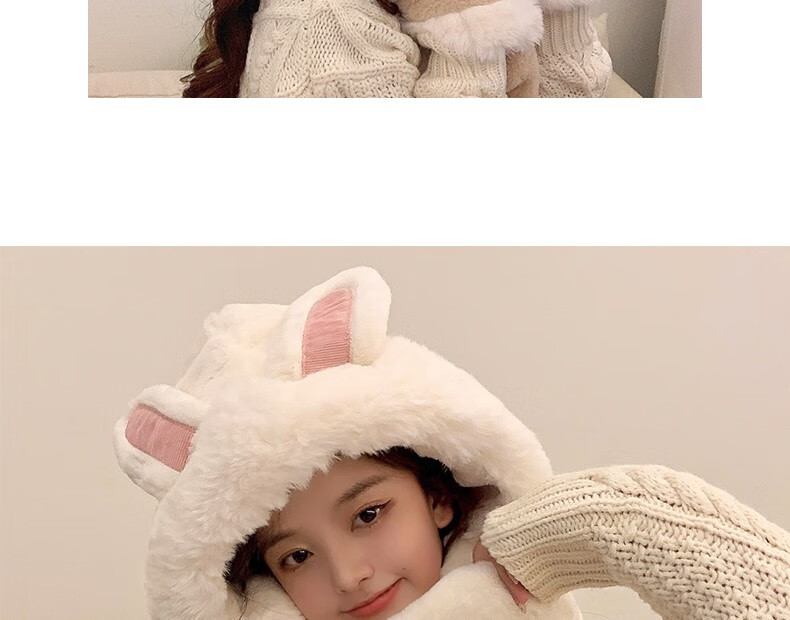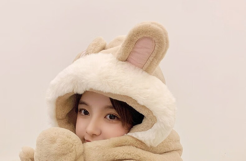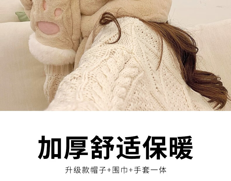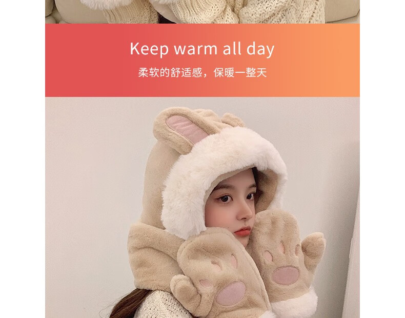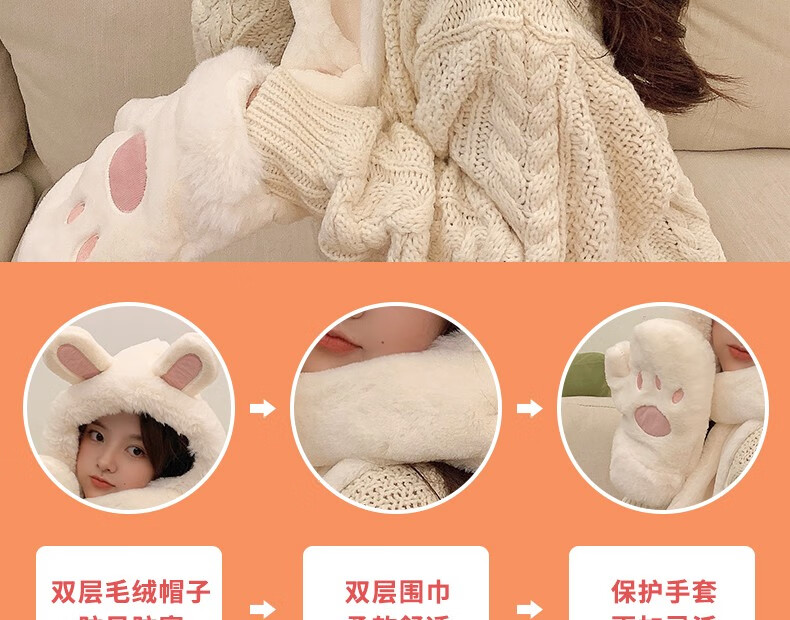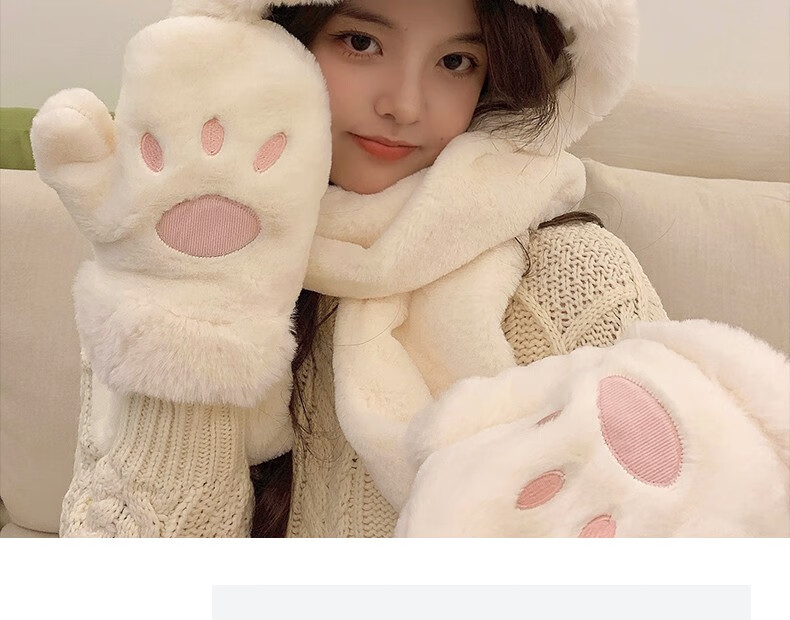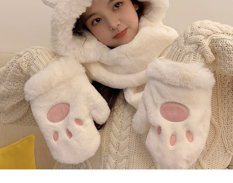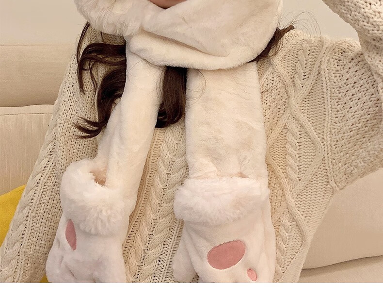 Charm Kendo hat and scarf for women all-in-one suit winter scarf and gloves for women to keep warm New Year's birthday gift for girls, practical gift for girlfriend and wife, white