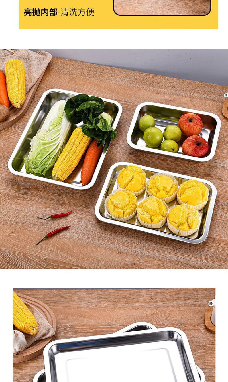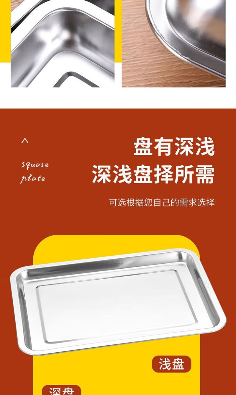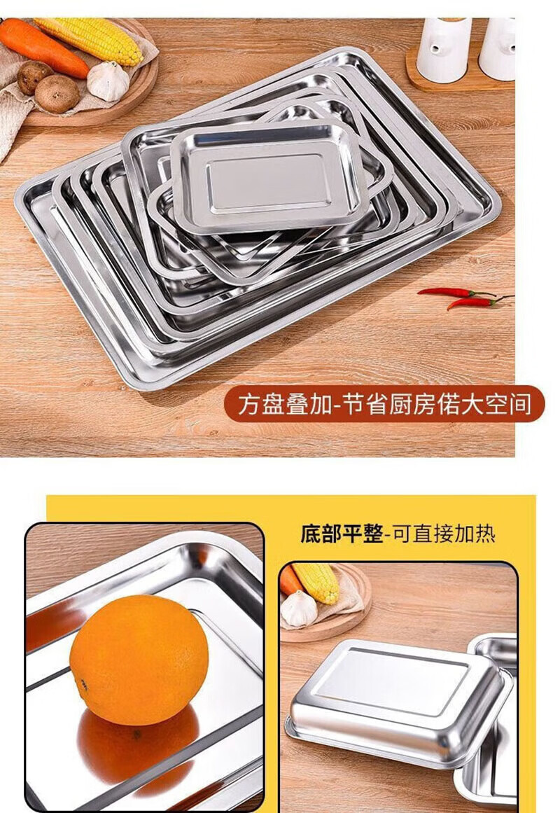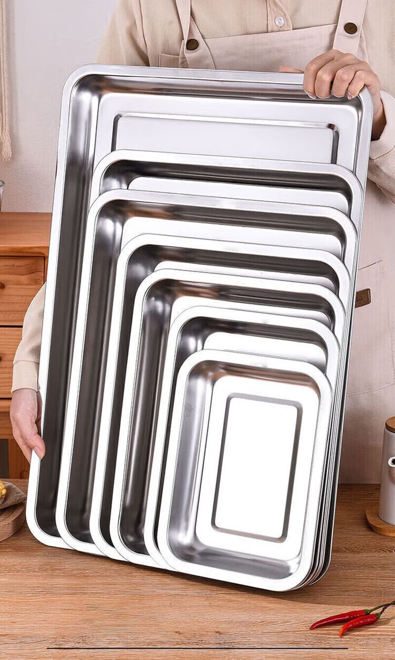 Shuyi Bird Extra Thick Stainless Steel Square Plate Rectangular Plate Steamed Rice Plate Stainless Steel Tray Dumpling Plate BBQ Plate 40*30*4.8 Deep Plate 2 Pack 40cm