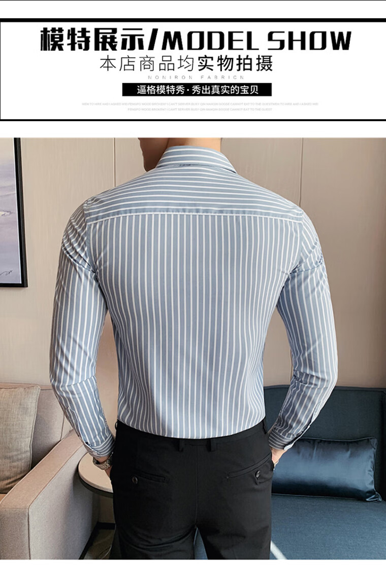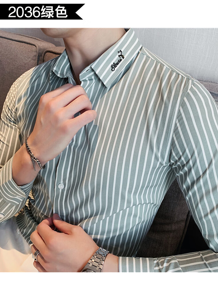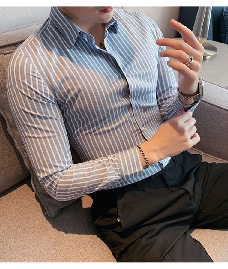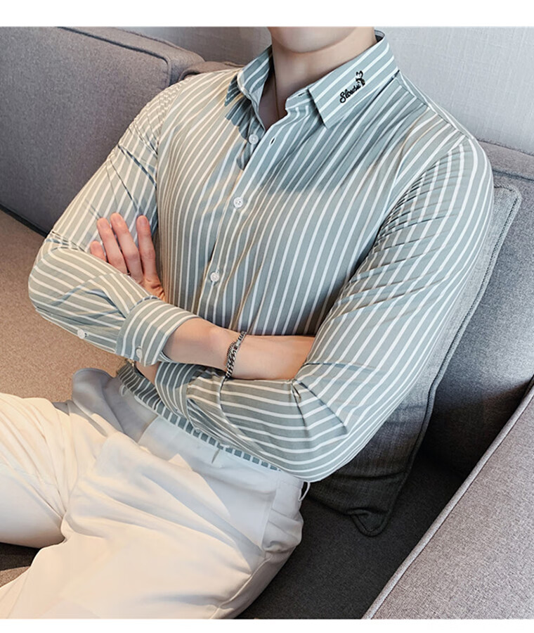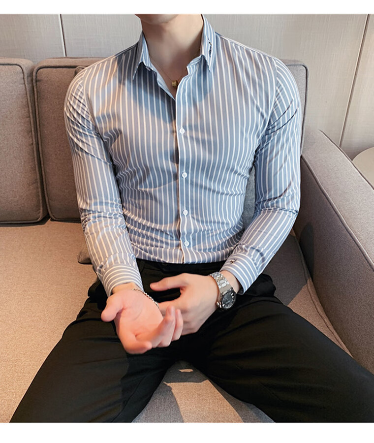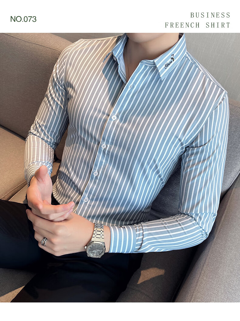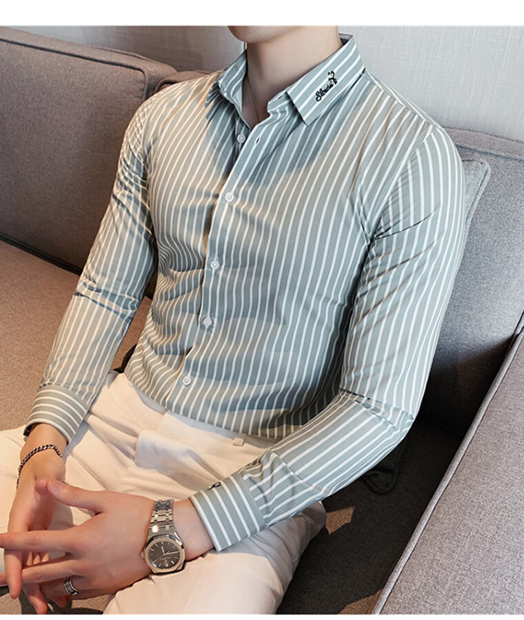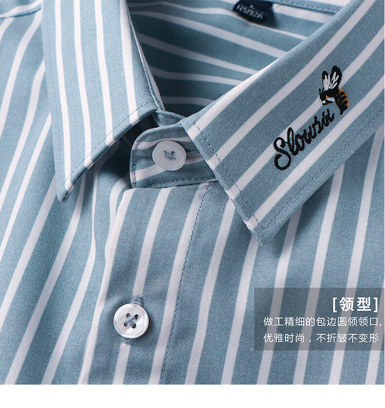 ROMON shirt men's striped easy-care inch embroidery spring and autumn long-sleeved business advanced sense slim casual shirt men's C2036 blue (striped style) XL