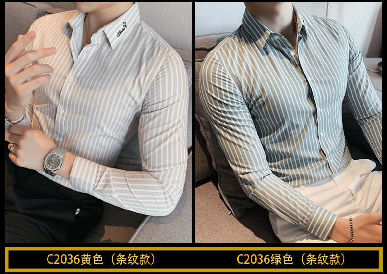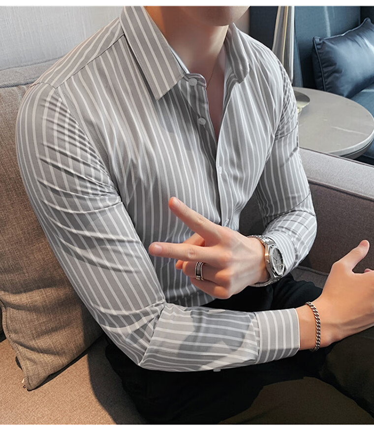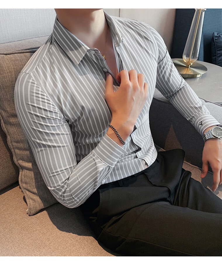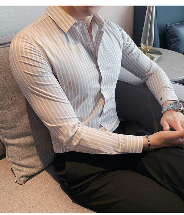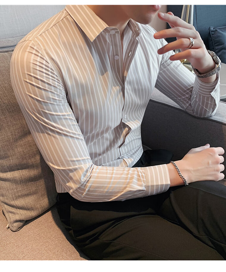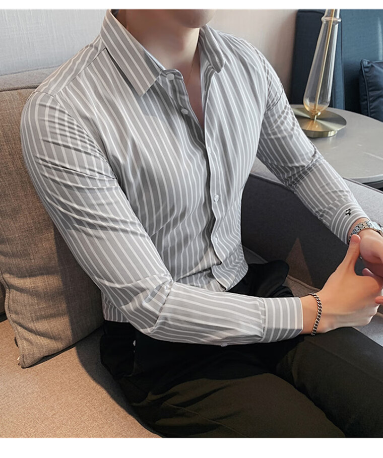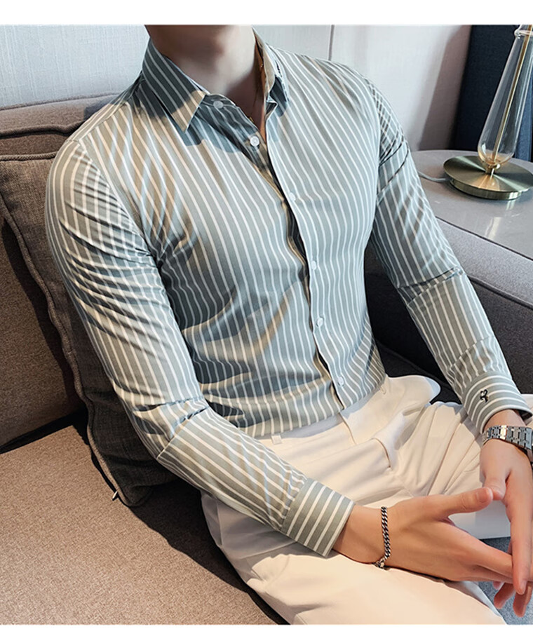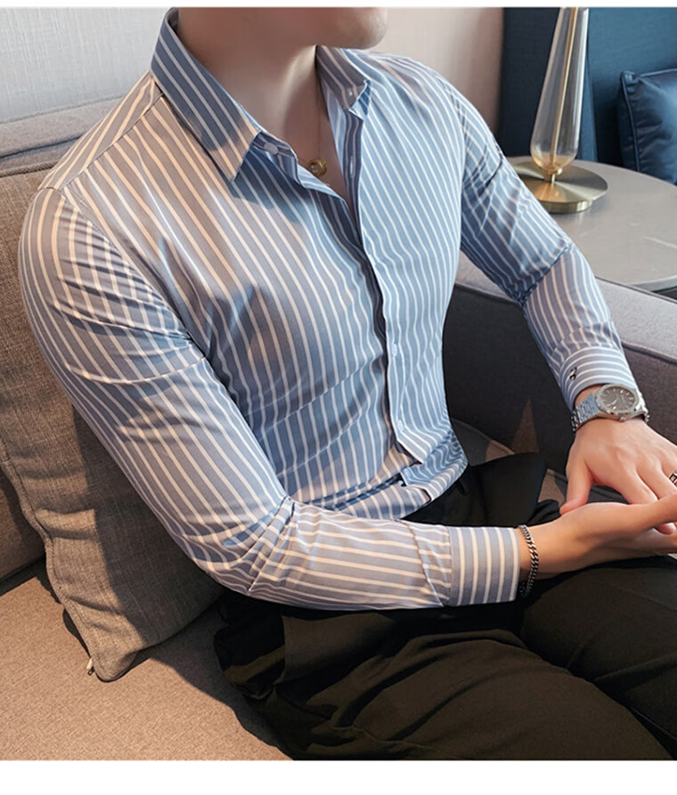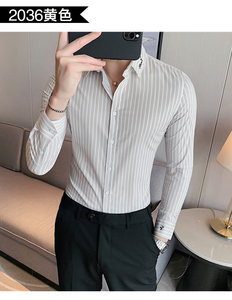ROMON shirt men's striped easy-care inch embroidery spring and autumn long-sleeved business advanced sense slim casual shirt men's C2036 blue (striped style) XL