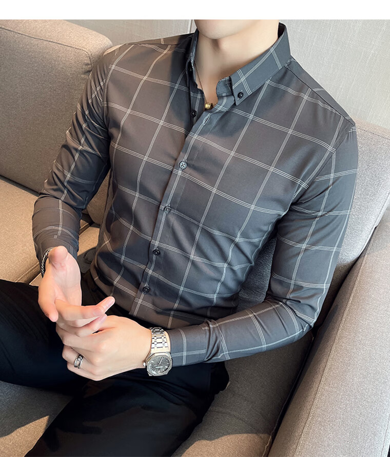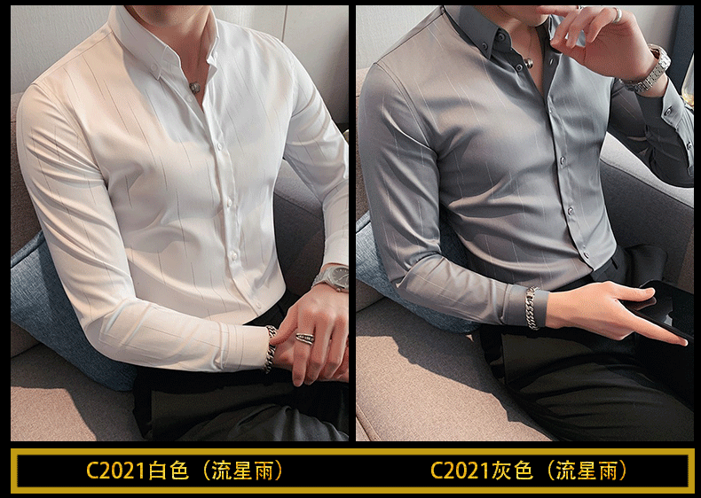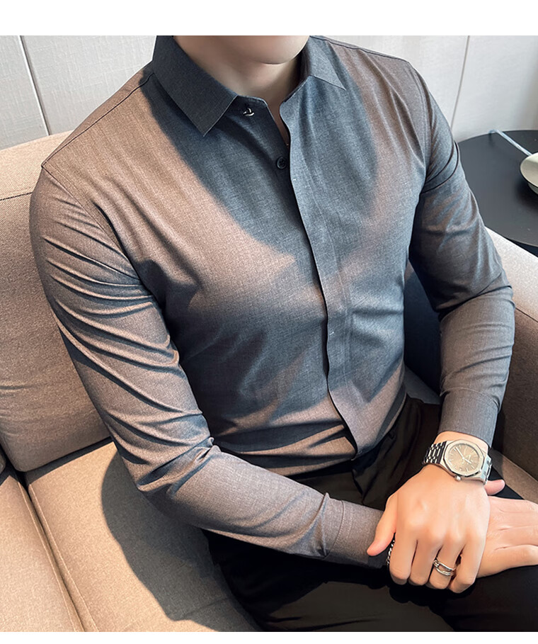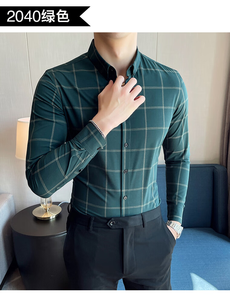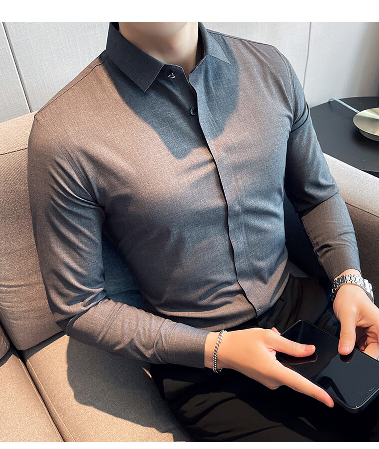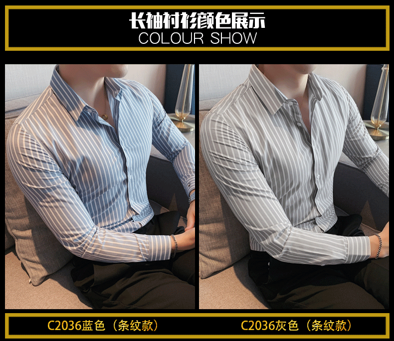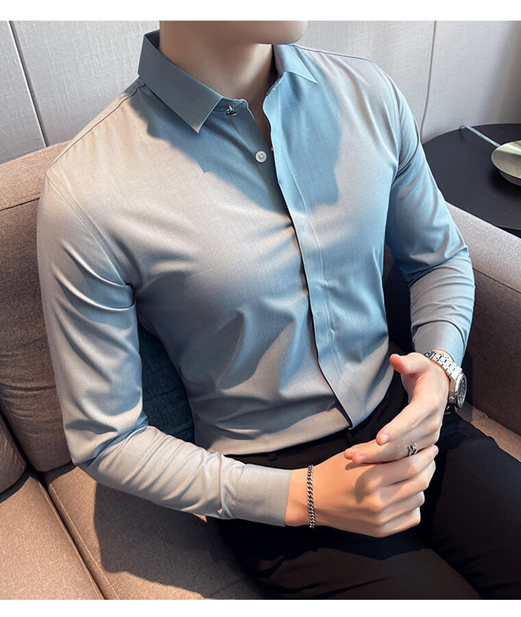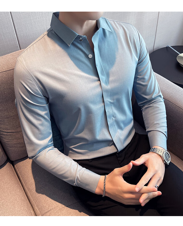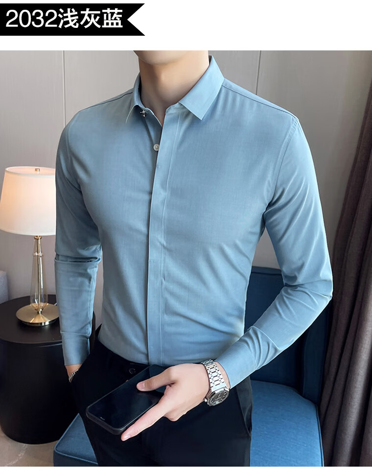 ROMON shirt men's striped easy-care inch embroidery spring and autumn long-sleeved business advanced sense slim casual shirt men's C2036 blue (striped style) XL