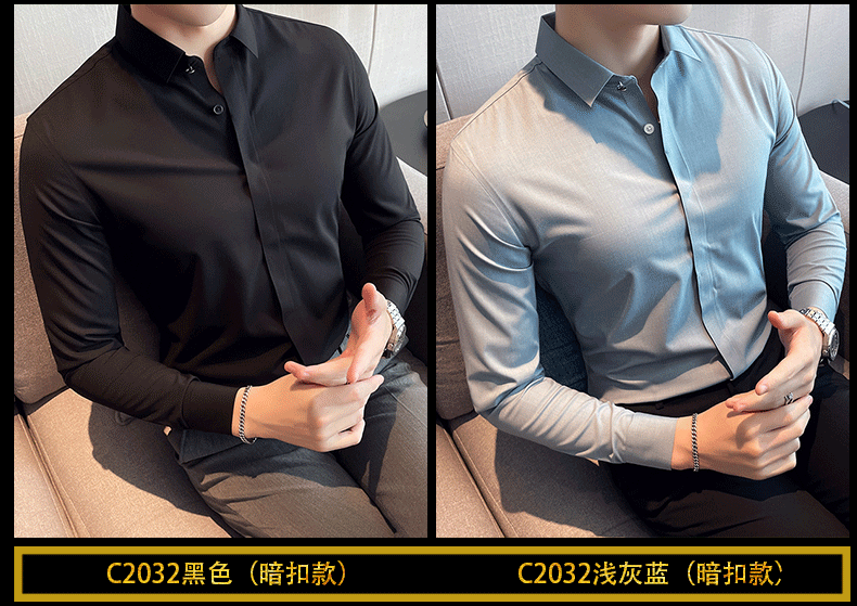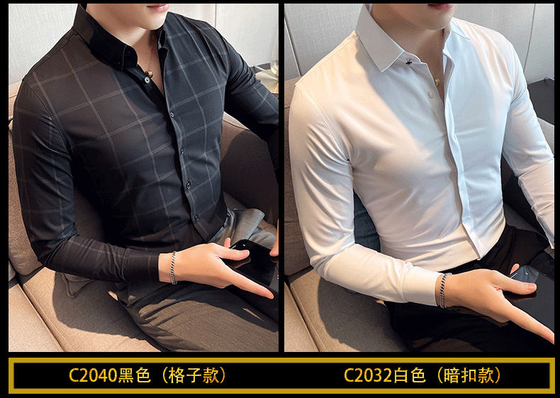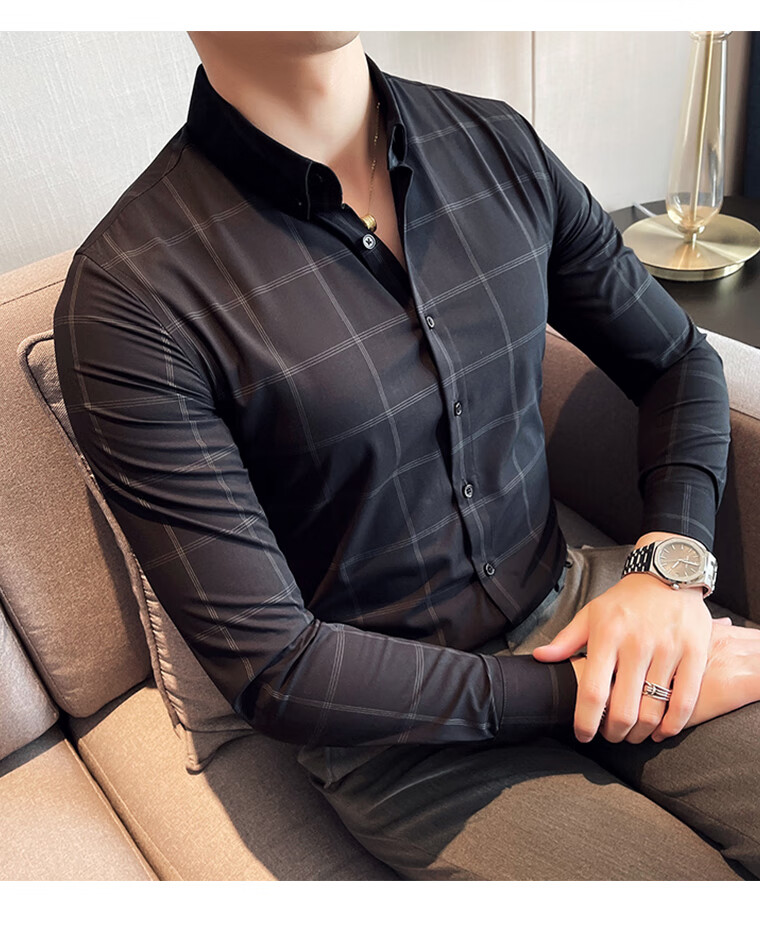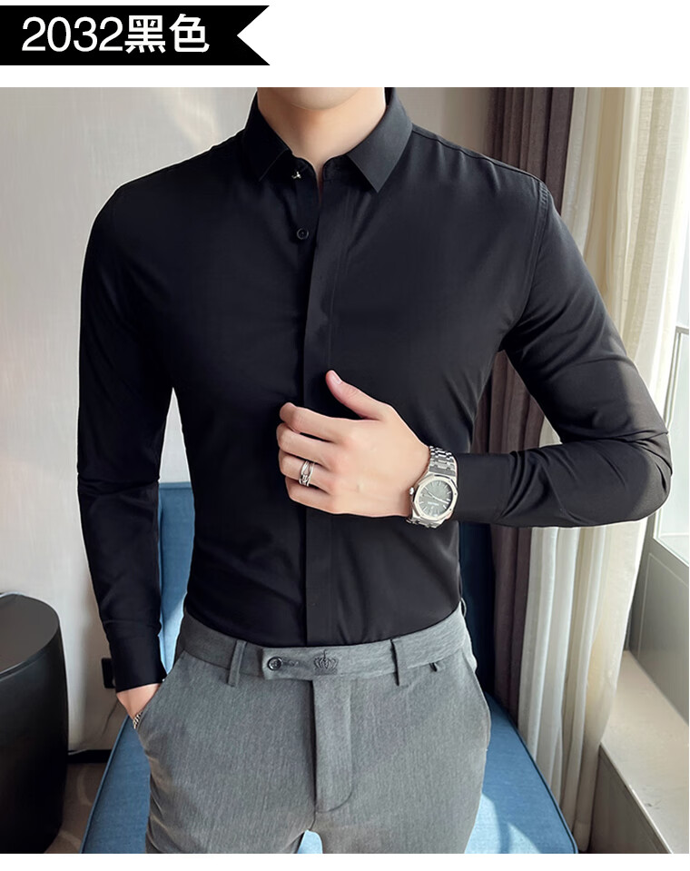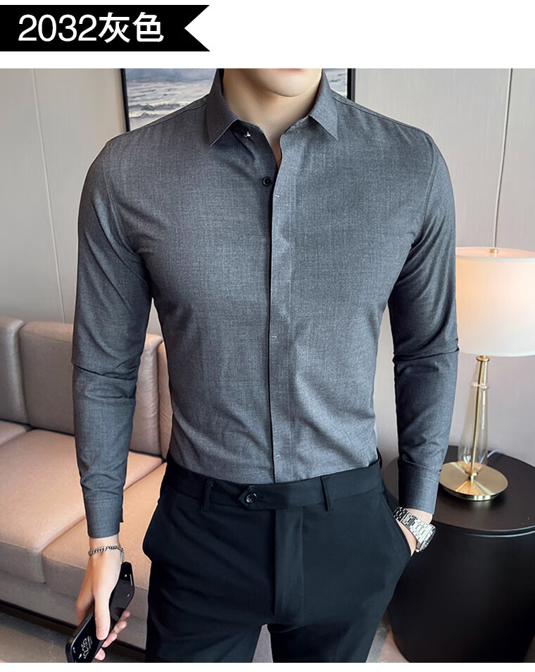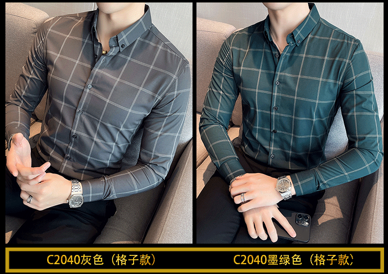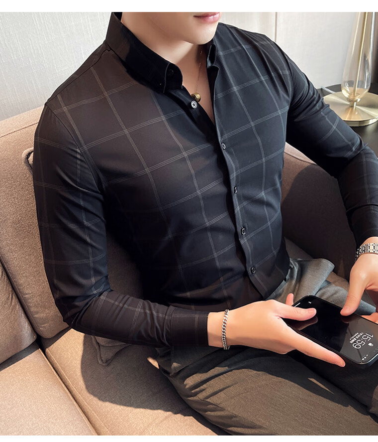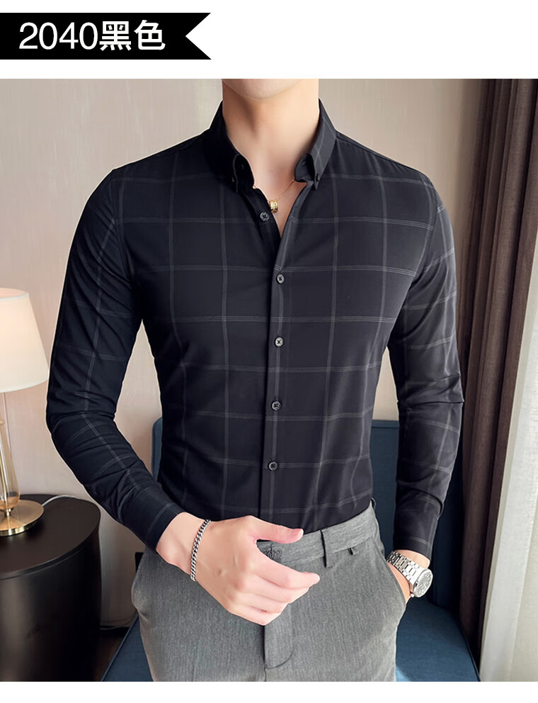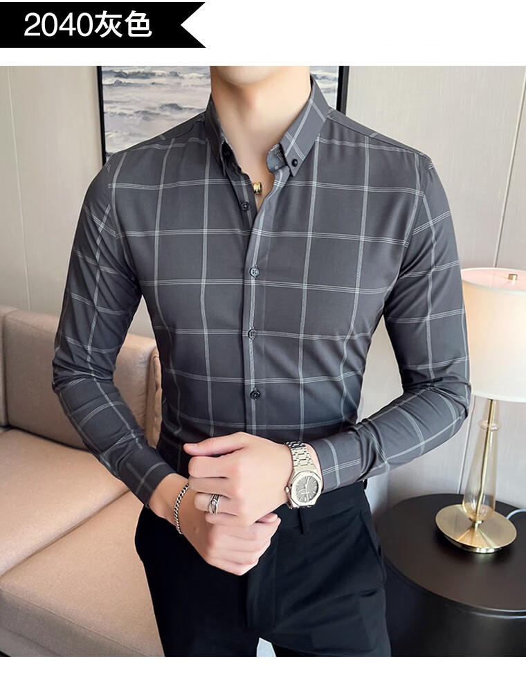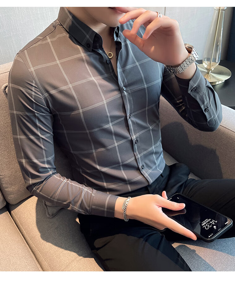 ROMON shirt men's striped easy-care inch embroidery spring and autumn long-sleeved business advanced sense slim casual shirt men's C2036 blue (striped style) XL