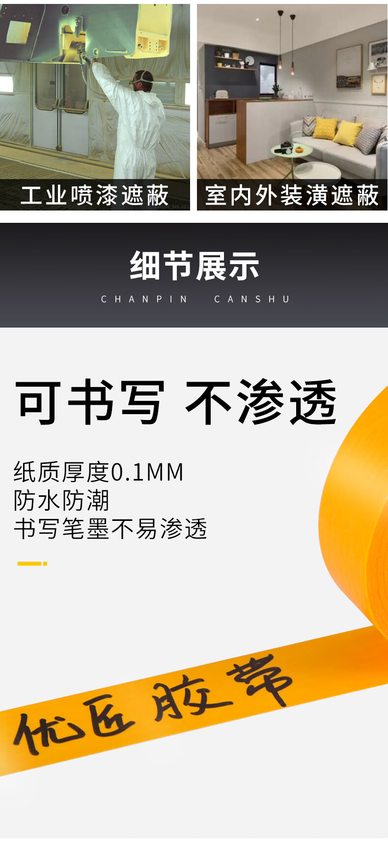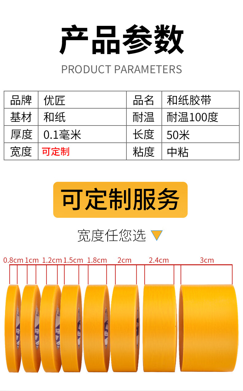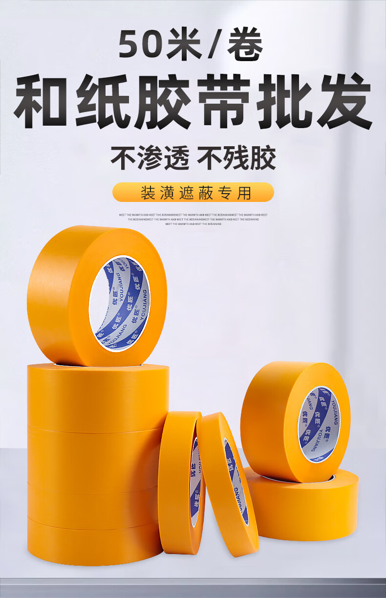 Whole box wholesale of masking tape without leaving any glue, yellow color separation paper and paper wall stickers, decoration spray paint, masking protective film, ceramic tile seam stickers, high-viscosity masking tape, 4 cm wide, 50 m/roll, 3 rolls