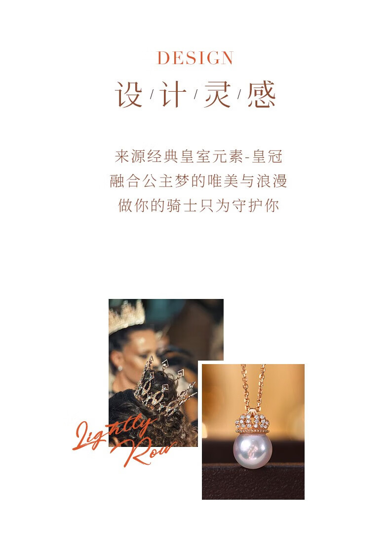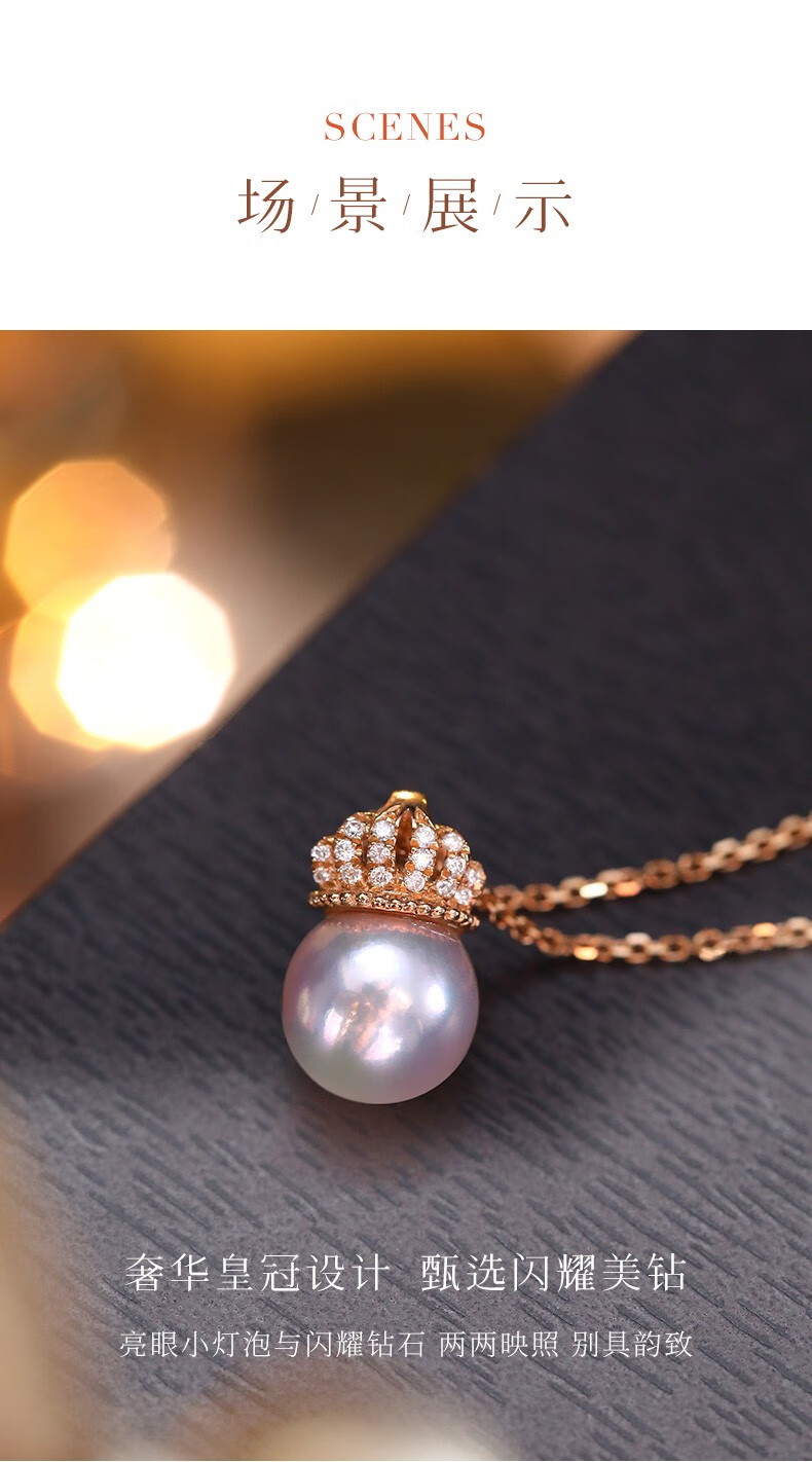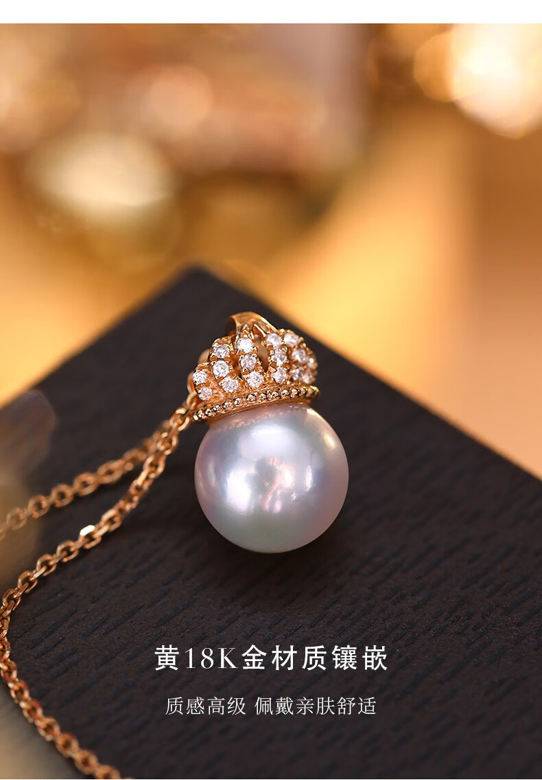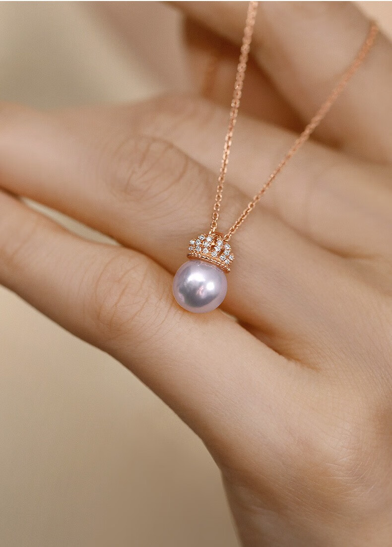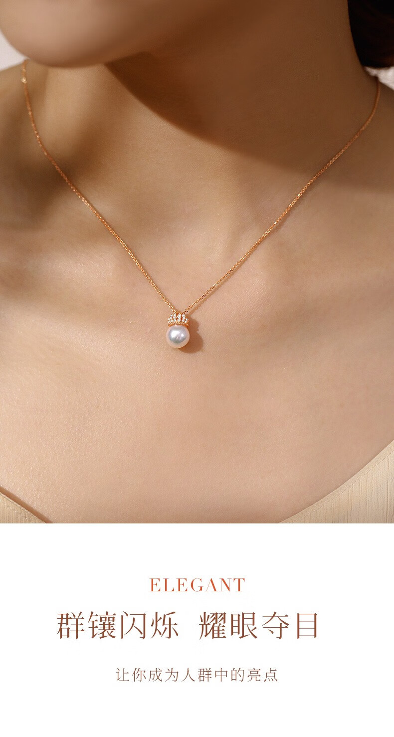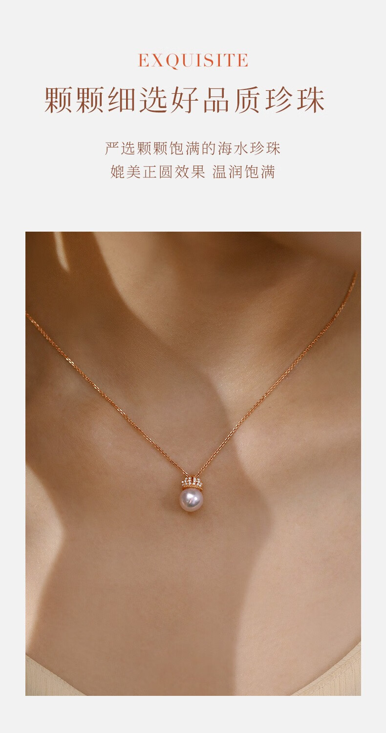 Hi Diamond Crown Pearl Diamond Pendant Female Red 18K Gold Akoya Perfect Round Seawater Pearl Necklace Elegant and Versatile Clavicle Chain 18K Gold Pearl 7.5-8mm + Diamond 4 Points