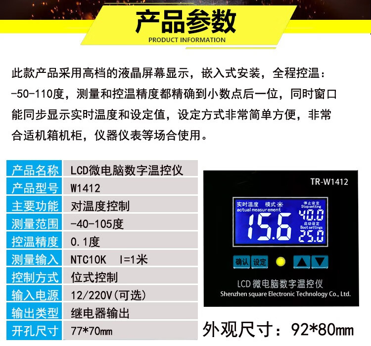XH-W1412 LCD intelligent incubation temperature control thermostat switch instrument digital display adjustable high-precision temperature control 220V