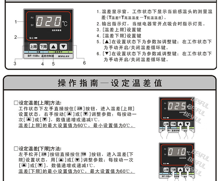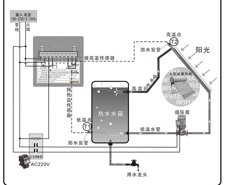 BF-15B+ solar temperature difference controller dual probe temperature difference circulation pump control switch thermostat BF-
