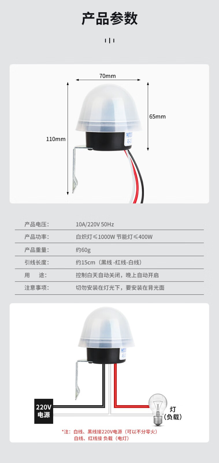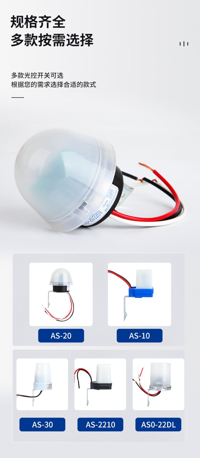 Abay light control switch 220V rainproof automatic night light sensor switch intelligent street light control controller AS-10 12V