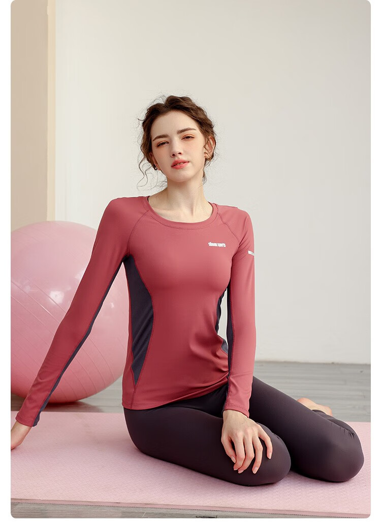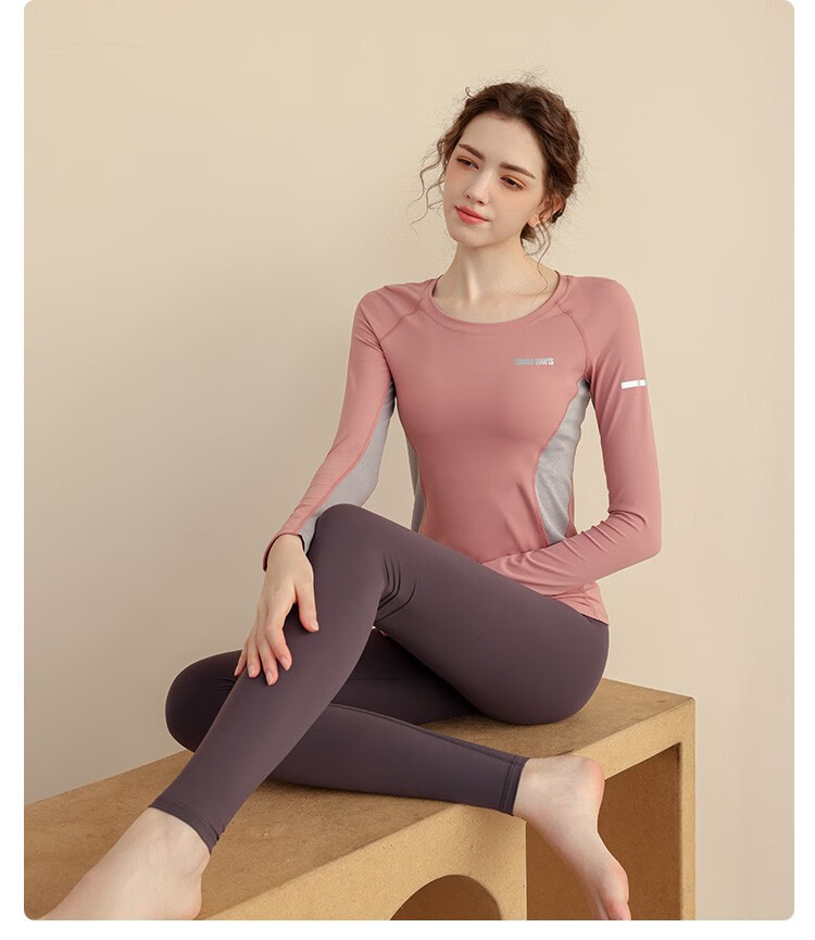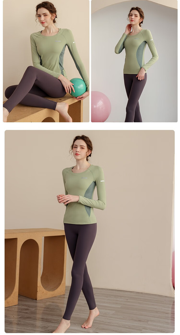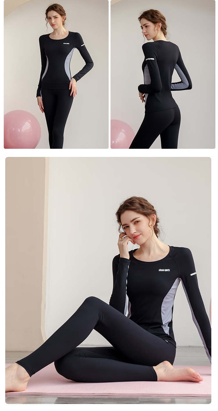 Sporn yoga clothing suit women's long-sleeved professional fitness Pilates training clothing slimming outer wear sports quick-drying clothing running clothing black top + black trousers L 100-120Jin Jin equals 0.5 kg