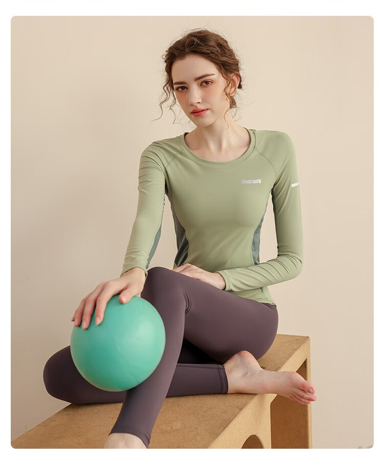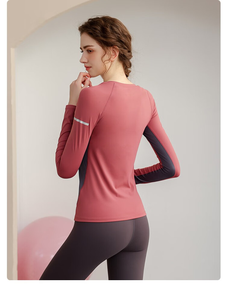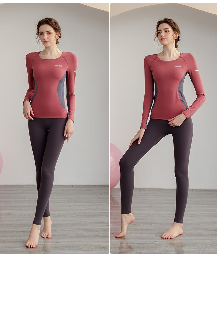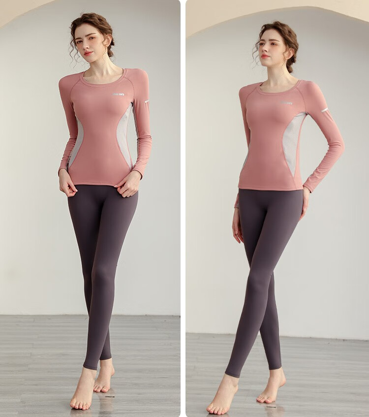 Sporn yoga clothing suit women's long-sleeved professional fitness Pilates training clothing slimming outer wear sports quick-drying clothing running clothing black top + black trousers L 100-120Jin Jin equals 0.5 kg