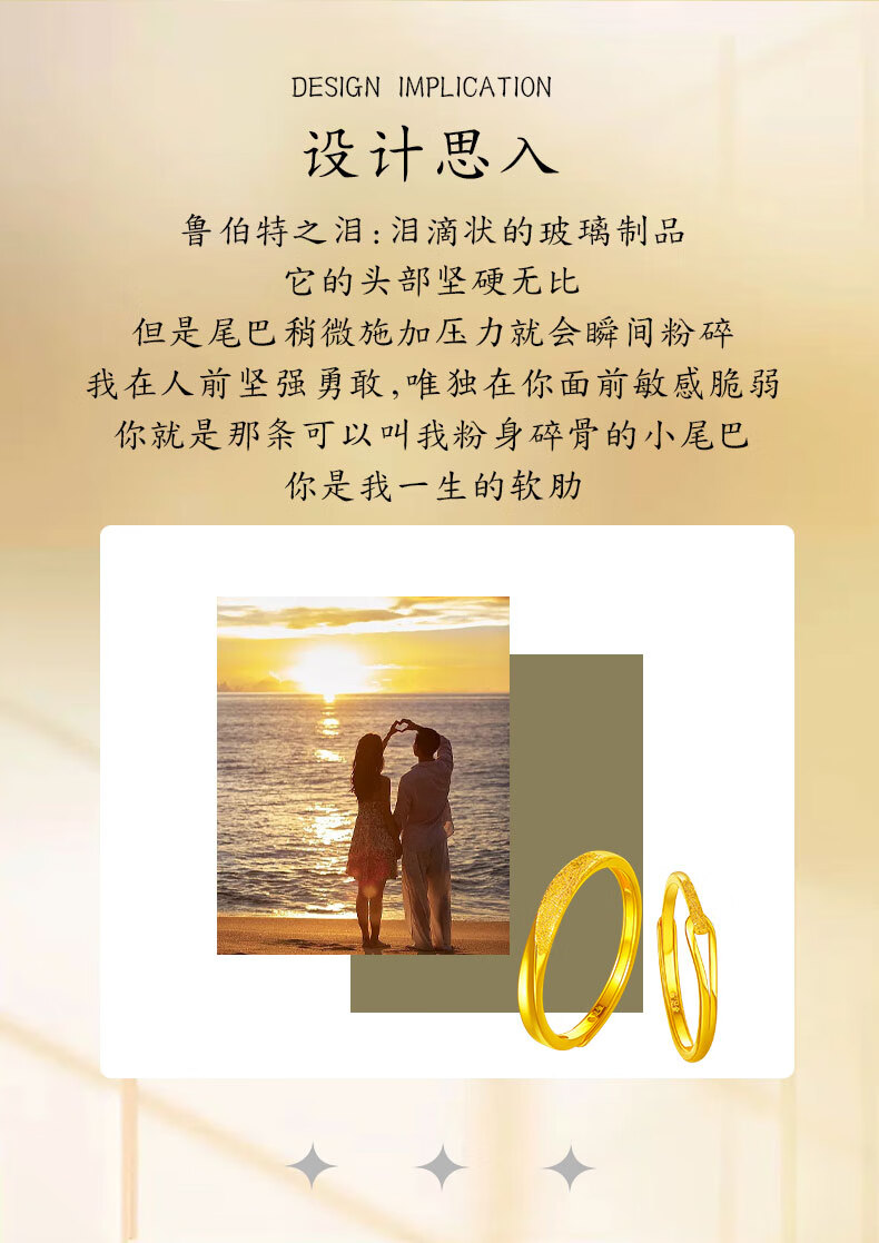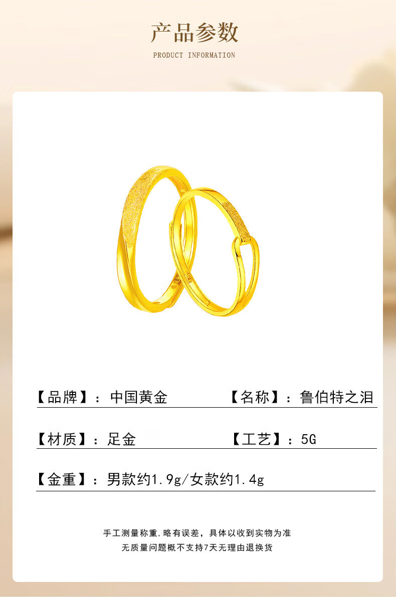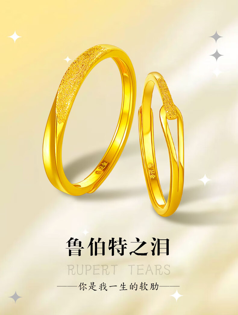 China Gold (CHINA GOLD) gold rings for men and women, a pair of 5G pure gold Rupert's Tears couples ring proposal wedding gift for girlfriend Rupert ring women's ring about 1.4g