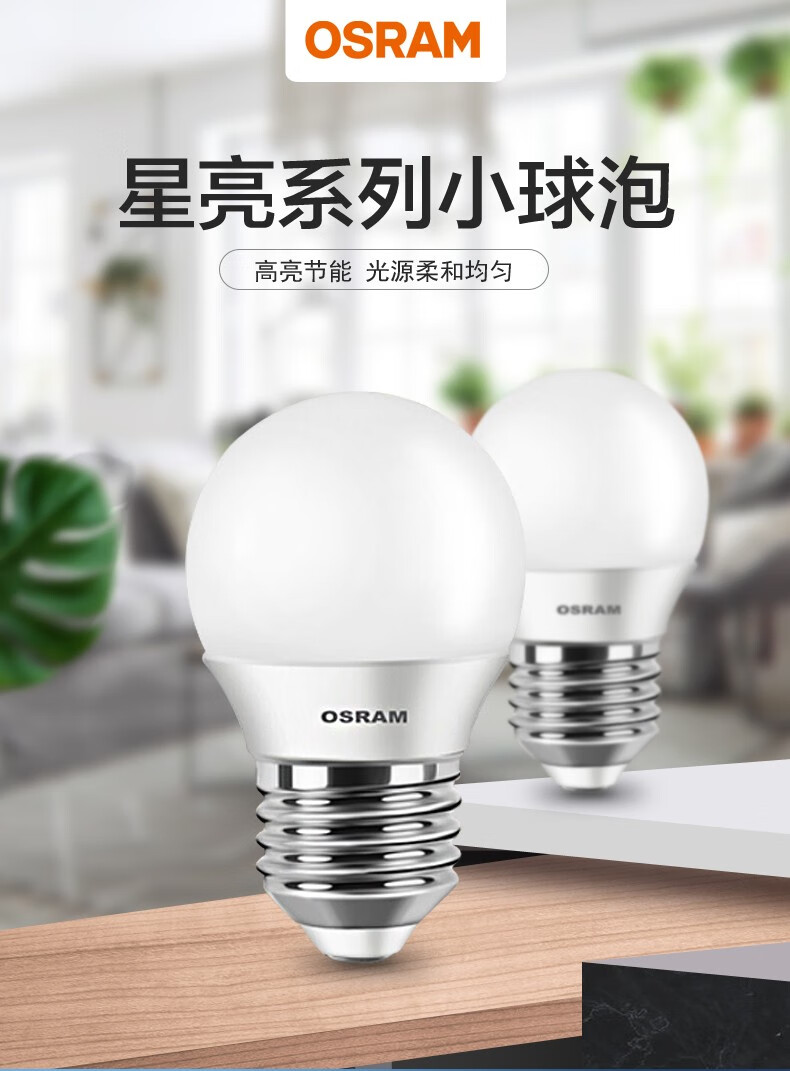 OSRAM LED light bulb Xingliang P-type small bulb E14 small screw household energy-saving light bulb high-bright energy-saving light bulb 4.9W/6500K white light frosted bulb
