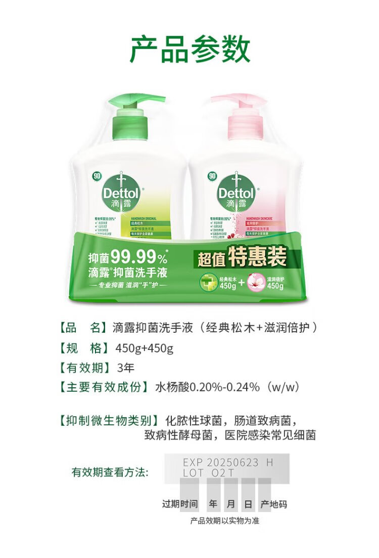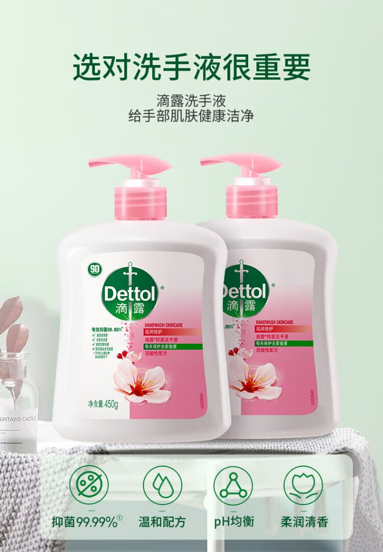 Dettol Healthy Antibacterial Hand Sanitizer Moisturizing and Protecting Children and Adults Universal Household Combination Cleaning Set Hand Sanitizer Moisturizing + Pine 450g*4