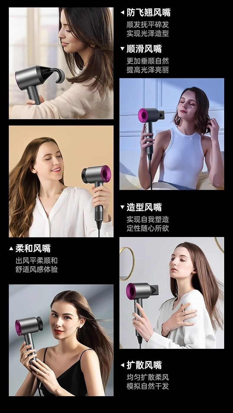 Dr. Flash Dong Yuhui recommends high-speed hair dryer for home use, silent negative ion high-power hair dryer, constant temperature, non-harming hair dryer, quick-drying hair care, super high power, minimalist gray gift box | including wall mount, single nozzle set