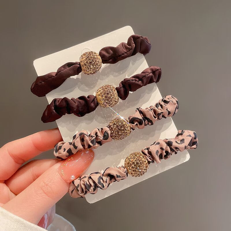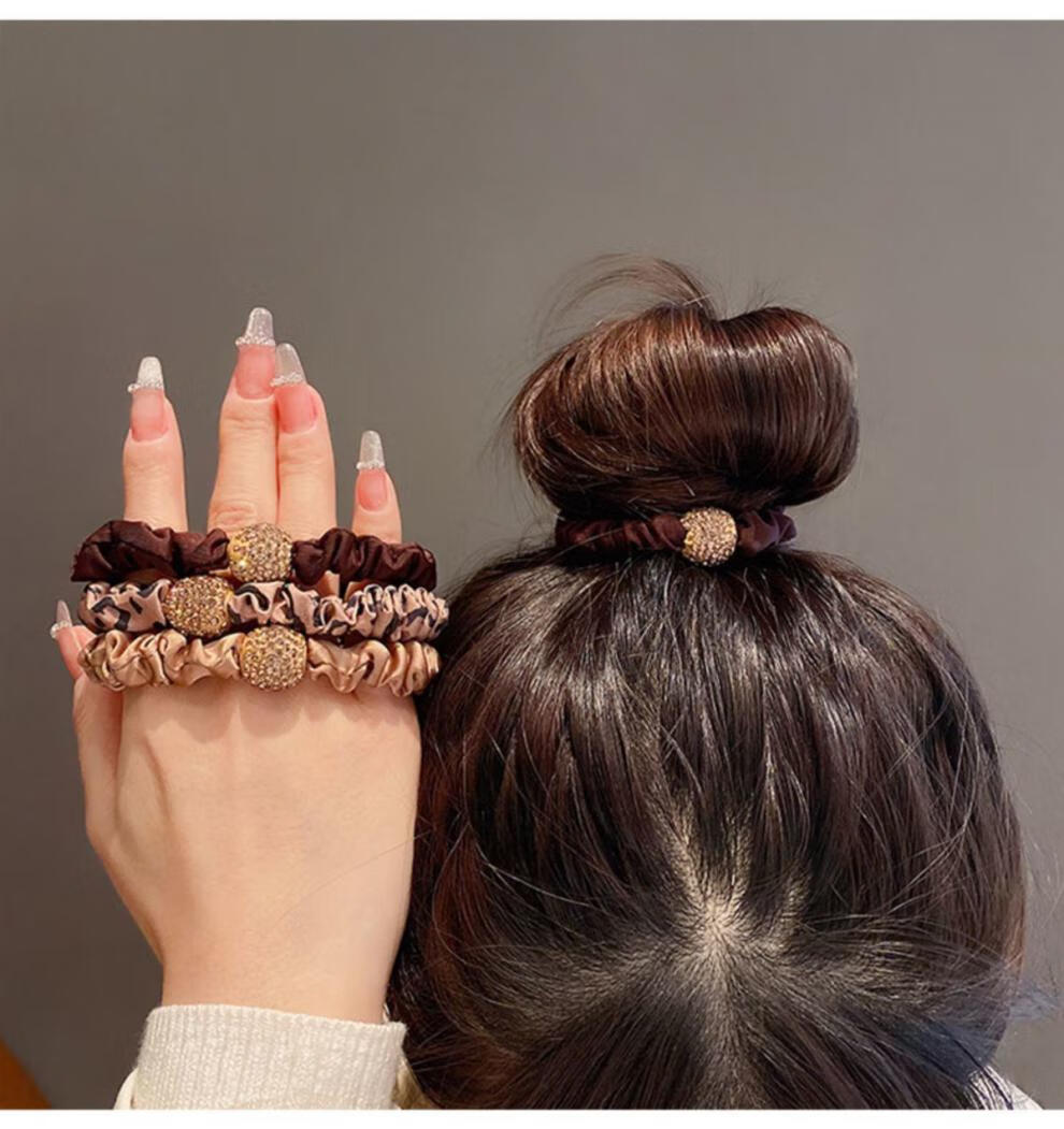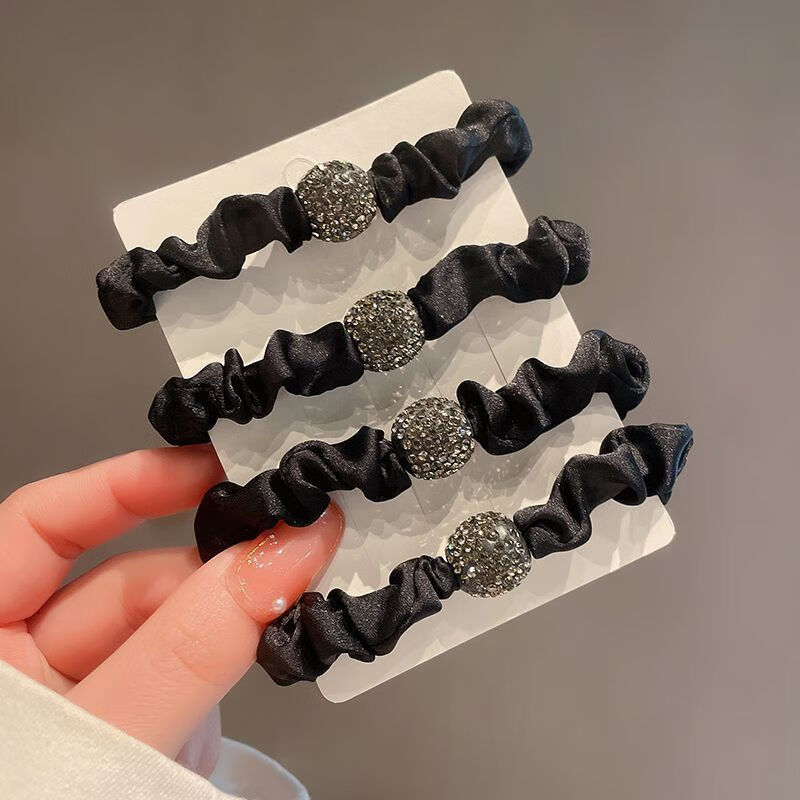 Princess Xiang's hair tie with high ponytail balls, hair band with hair band, women's rubber band headband, fashionable and simple hair rope, large intestine ring, 4 colors, 1 piece each, 4 packs