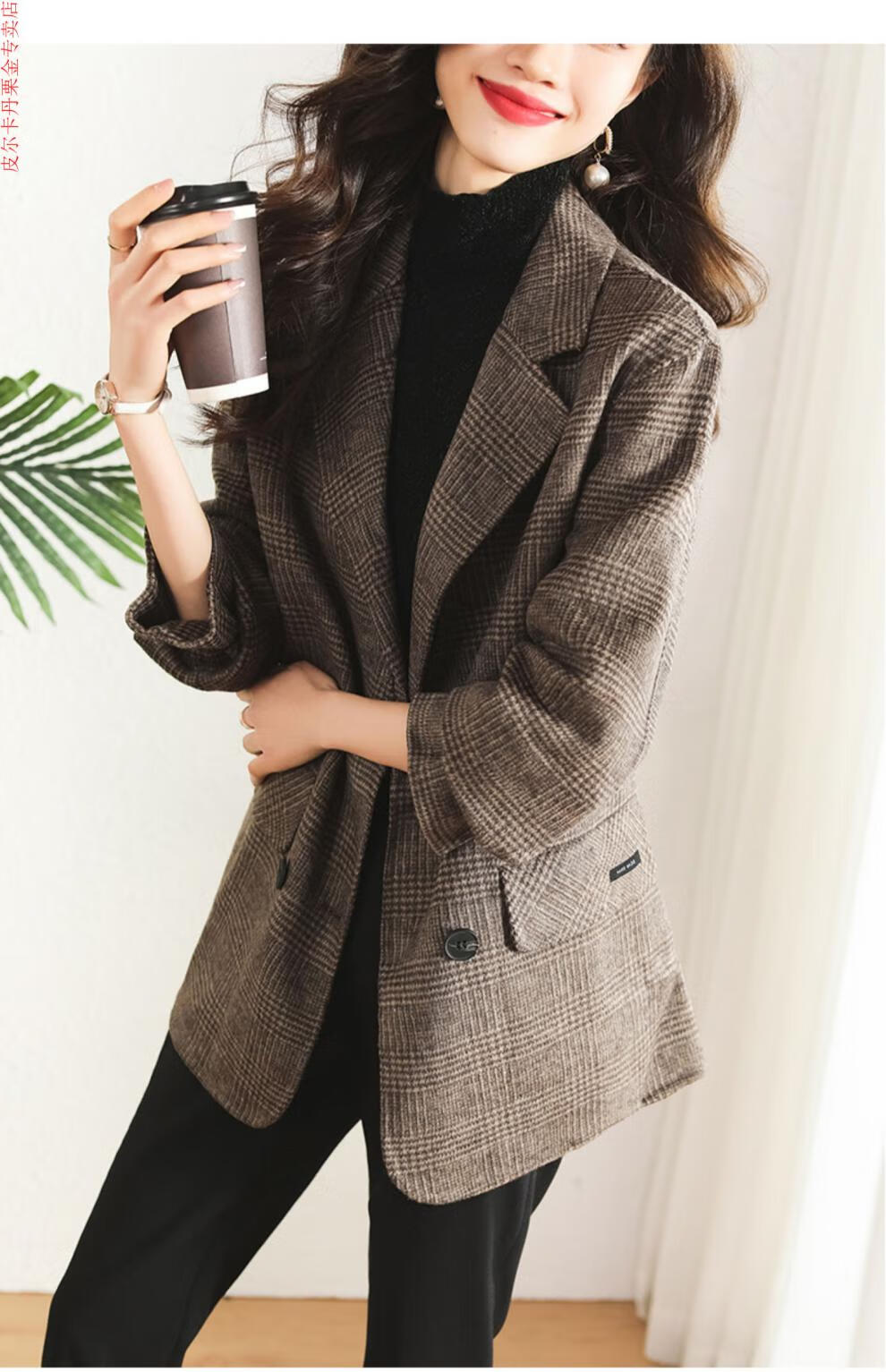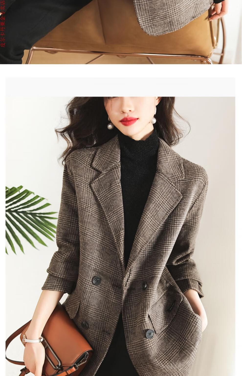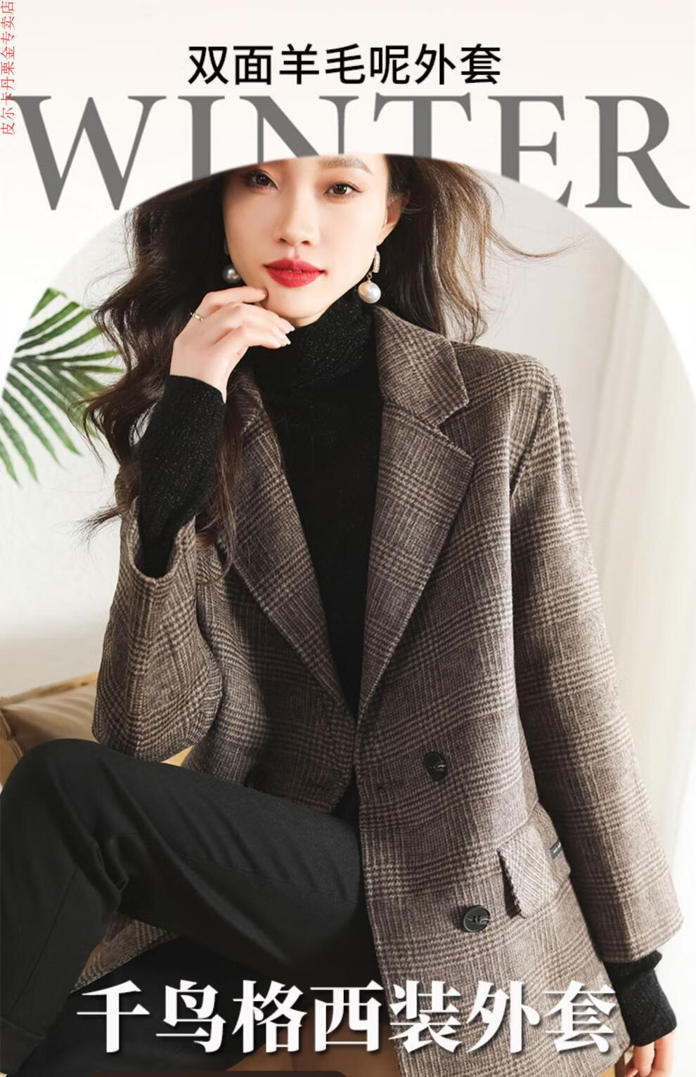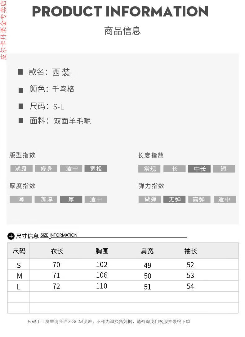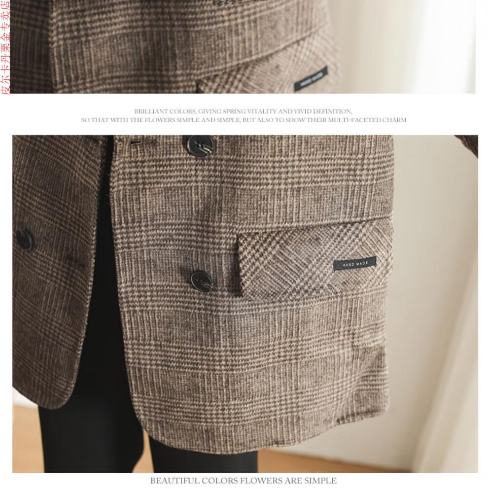 Pierre Cardin Houndstooth Plaid Blazer Women's 2025 New Spring and Autumn Aura Strong Casual Suit Small Fragrance Style Woolen Women's Clothing Houndstooth M Recommendation 100-120 Jin Jin equals about 0.5 kg