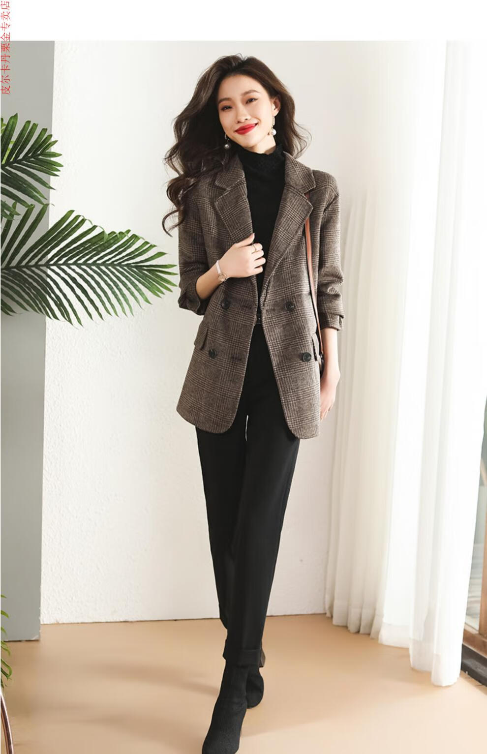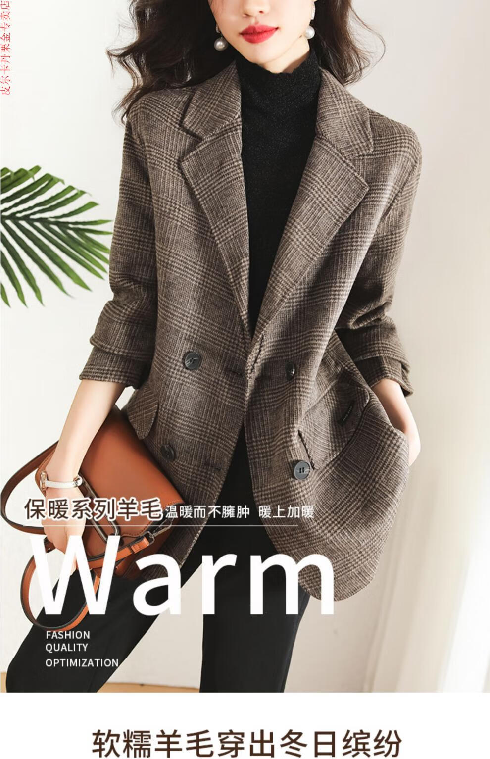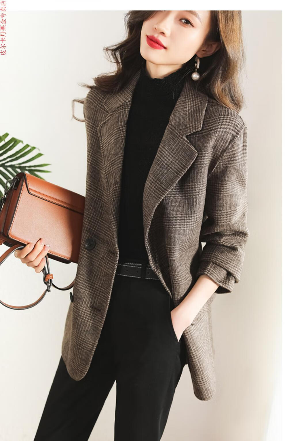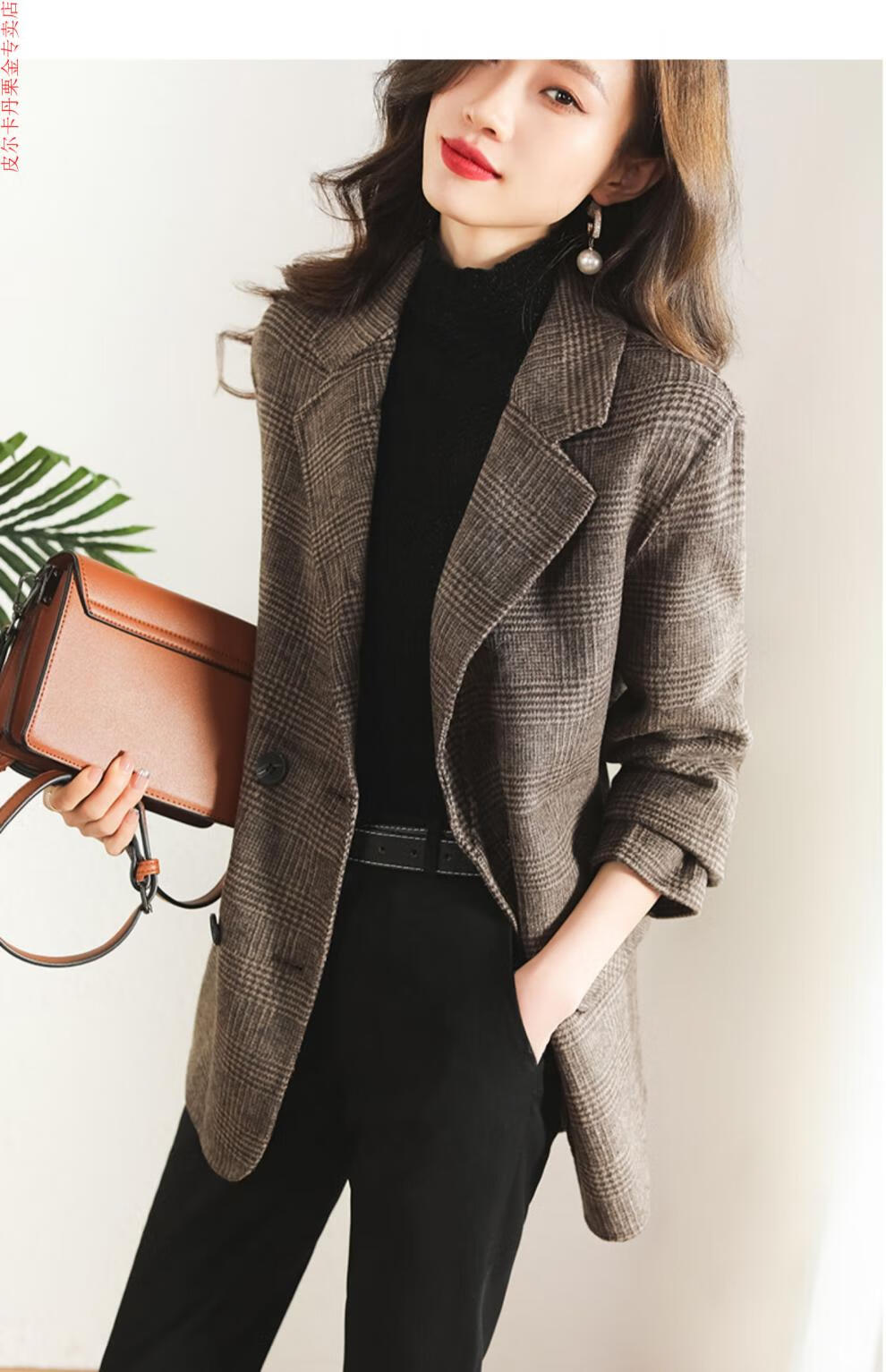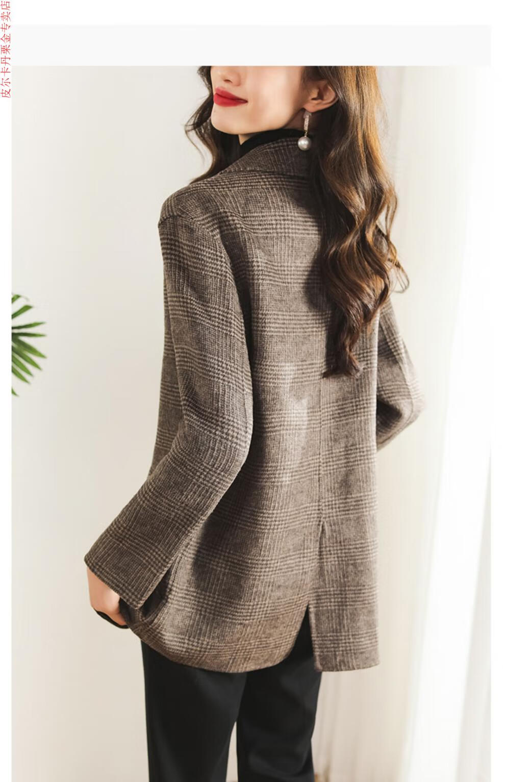 Pierre Cardin Houndstooth Plaid Blazer Women's 2025 New Spring and Autumn Aura Strong Casual Suit Small Fragrance Style Woolen Women's Clothing Houndstooth M Recommendation 100-120 Jin Jin equals about 0.5 kg