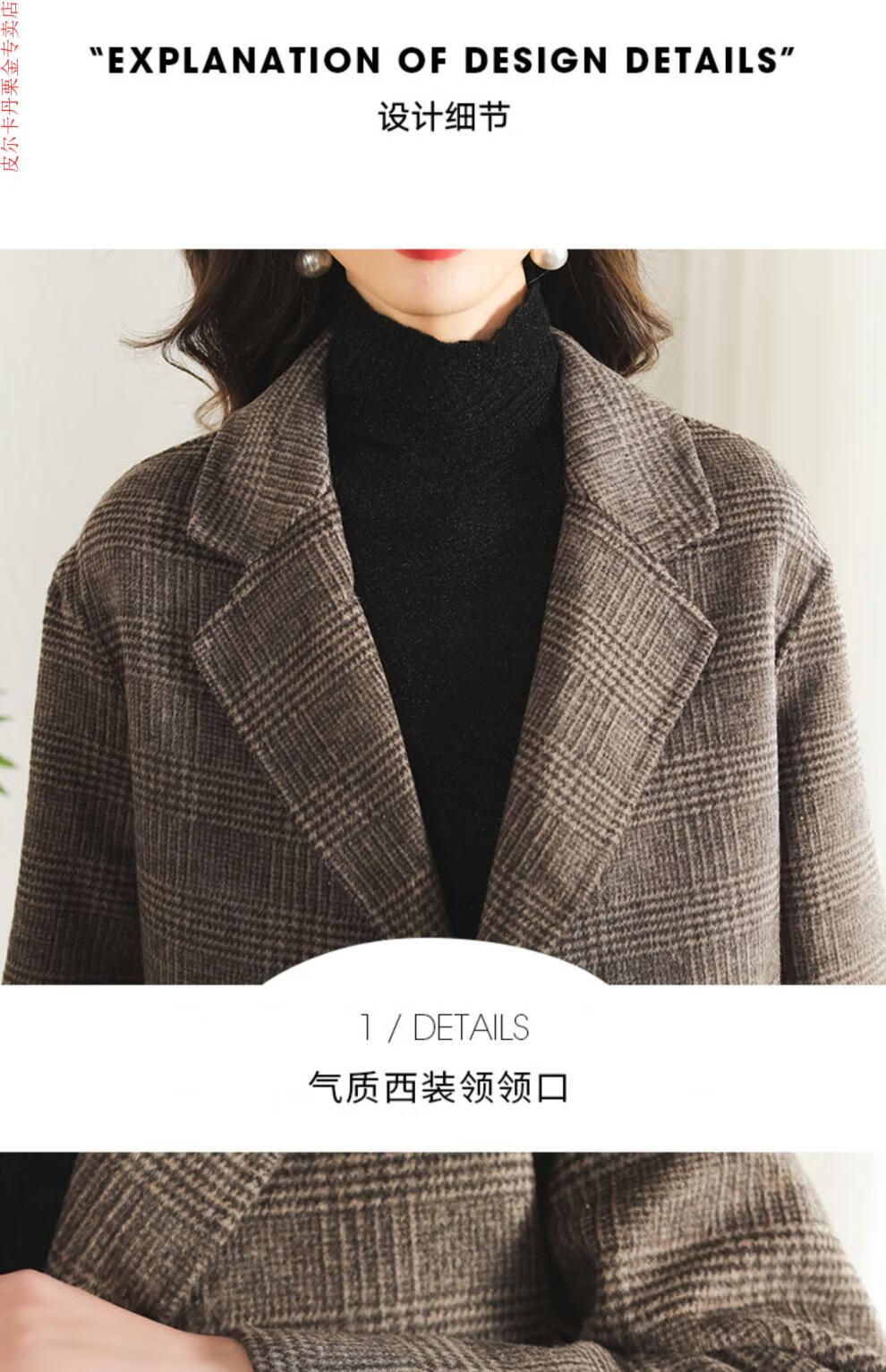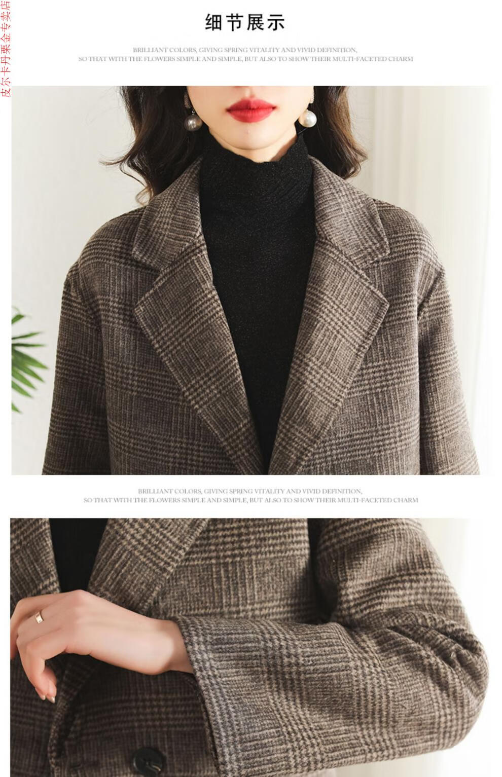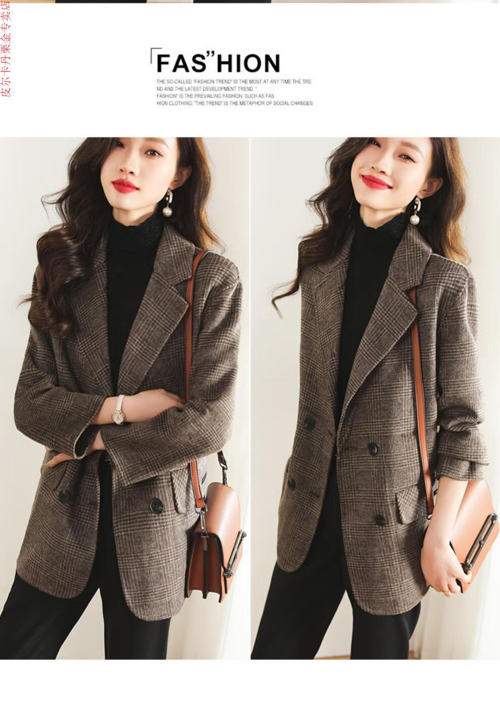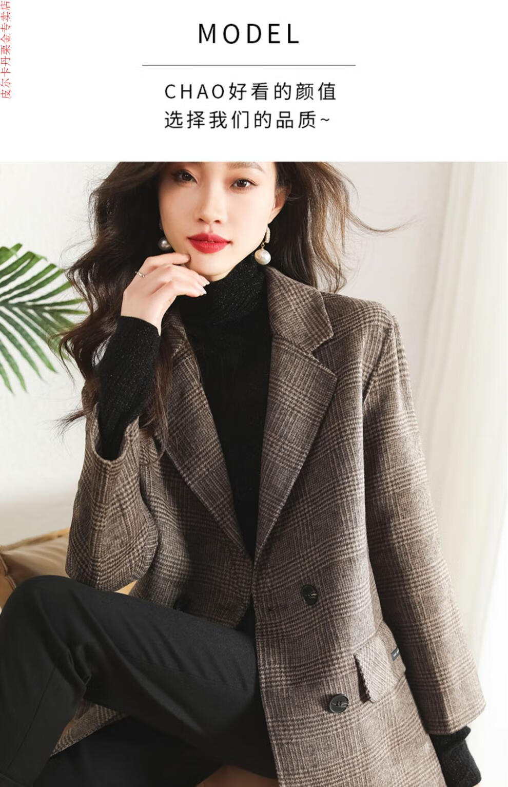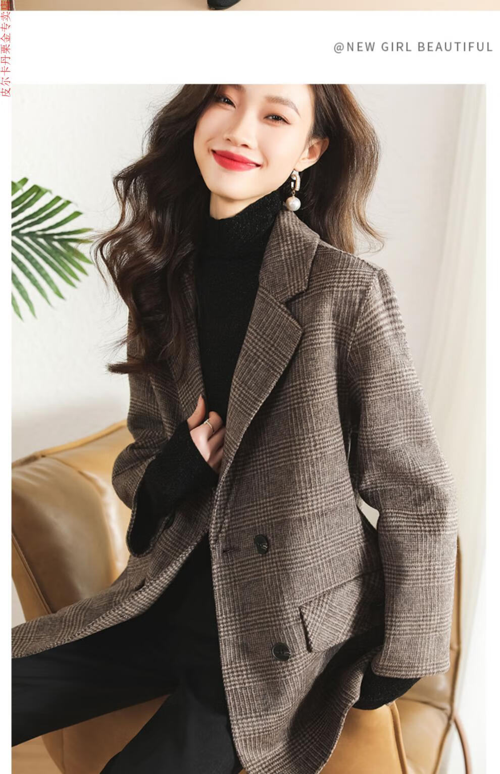 Pierre Cardin Houndstooth Plaid Blazer Women's 2025 New Spring and Autumn Aura Strong Casual Suit Small Fragrance Style Woolen Women's Clothing Houndstooth M Recommendation 100-120 Jin Jin equals about 0.5 kg
