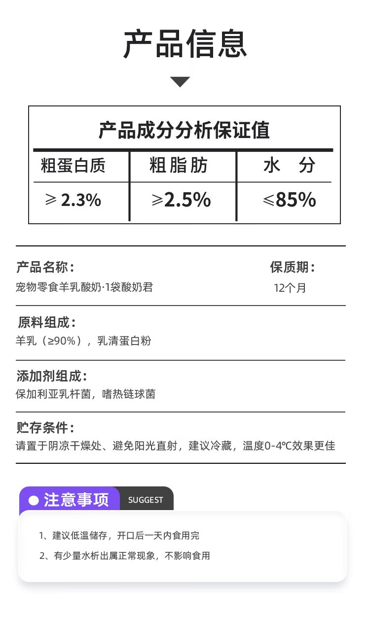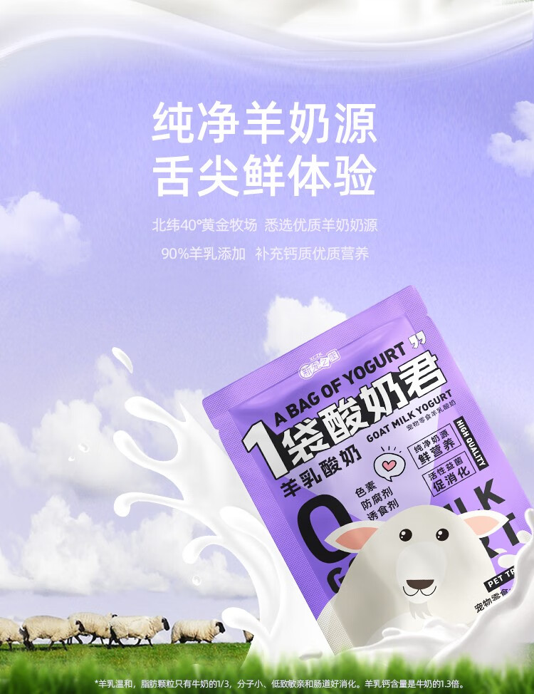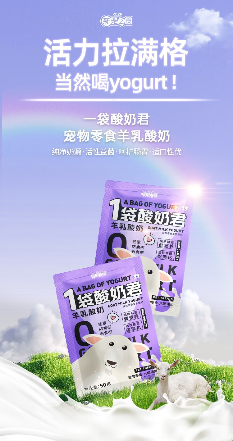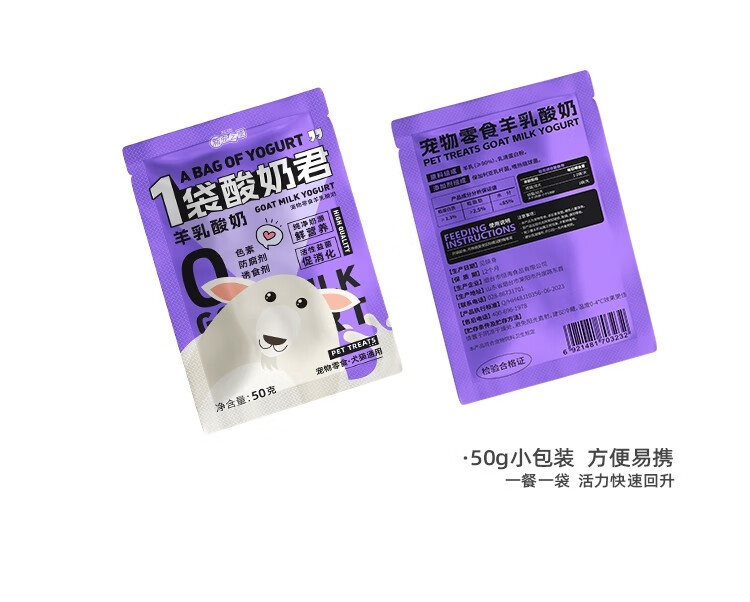 New Chongzhikang Pet Yogurt Dog and Cat Snacks Goat Milk Yogurt 0 Lactose Cats and Dogs Supplement Goat Milk Nutritional Prebiotics 50g*1 Bag
