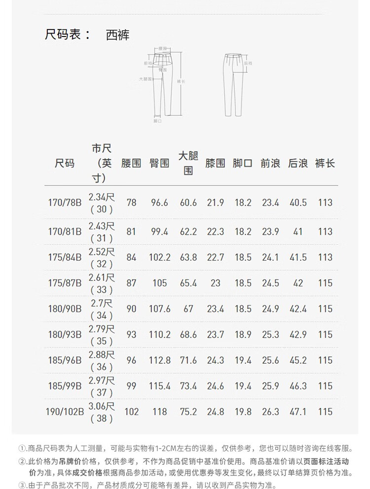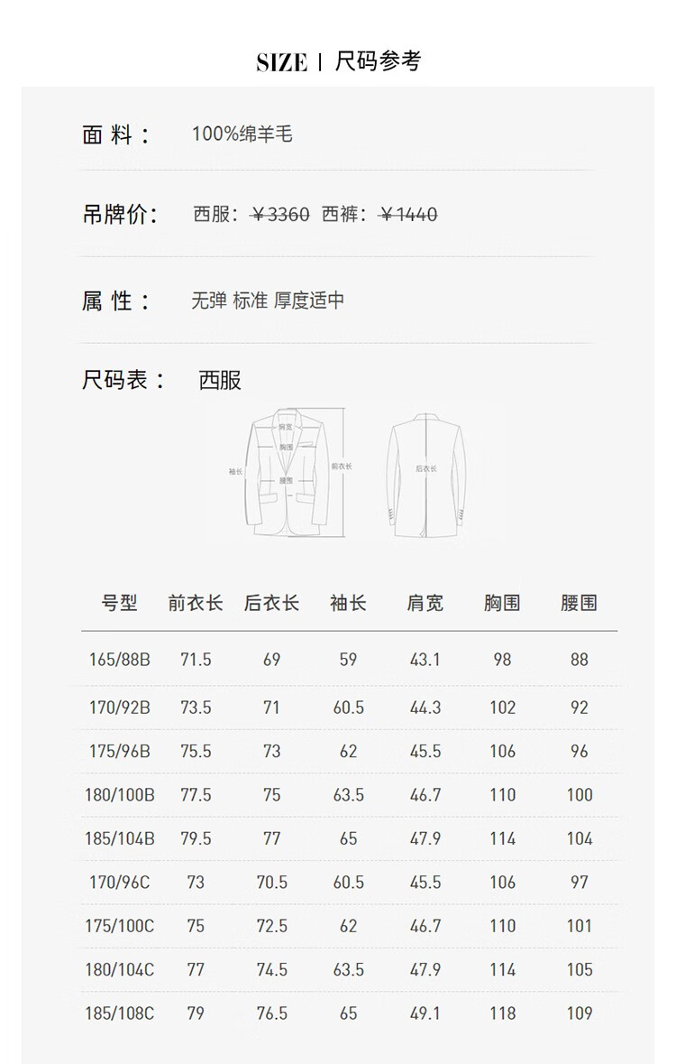 China (cm) 165 / 88-90 170 / 96-98 175 / 108-110 180 / 118-122 185 / 126-130